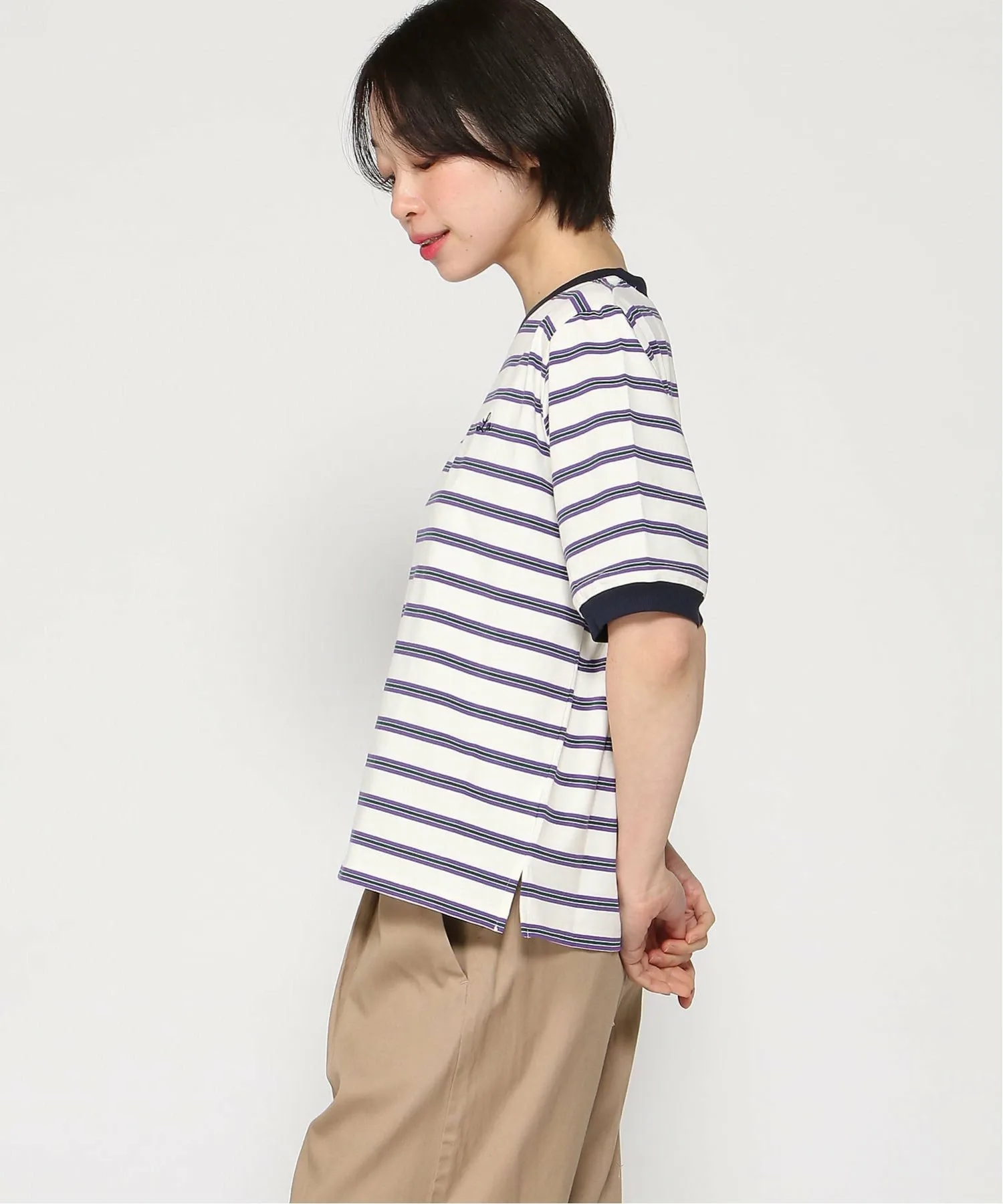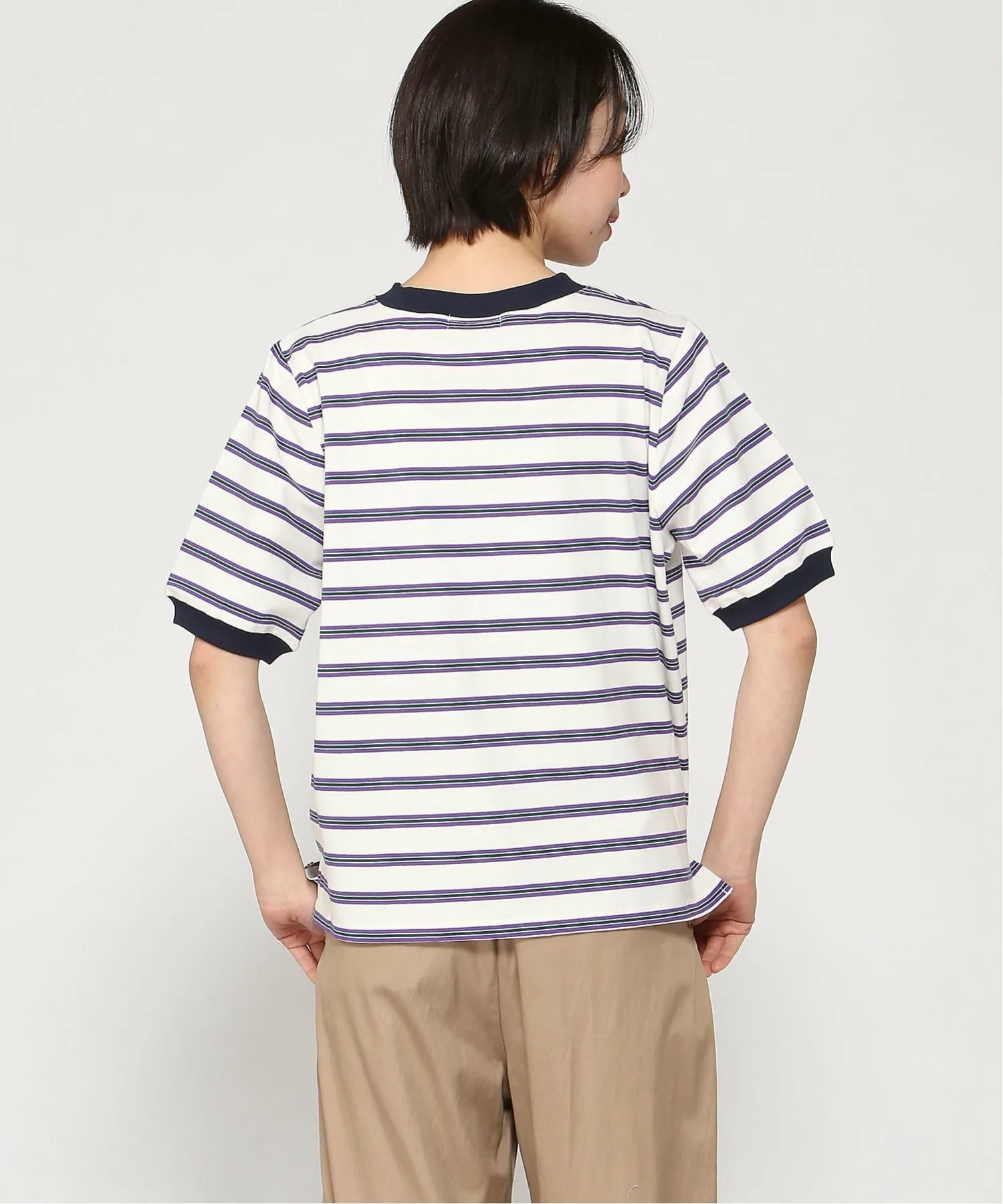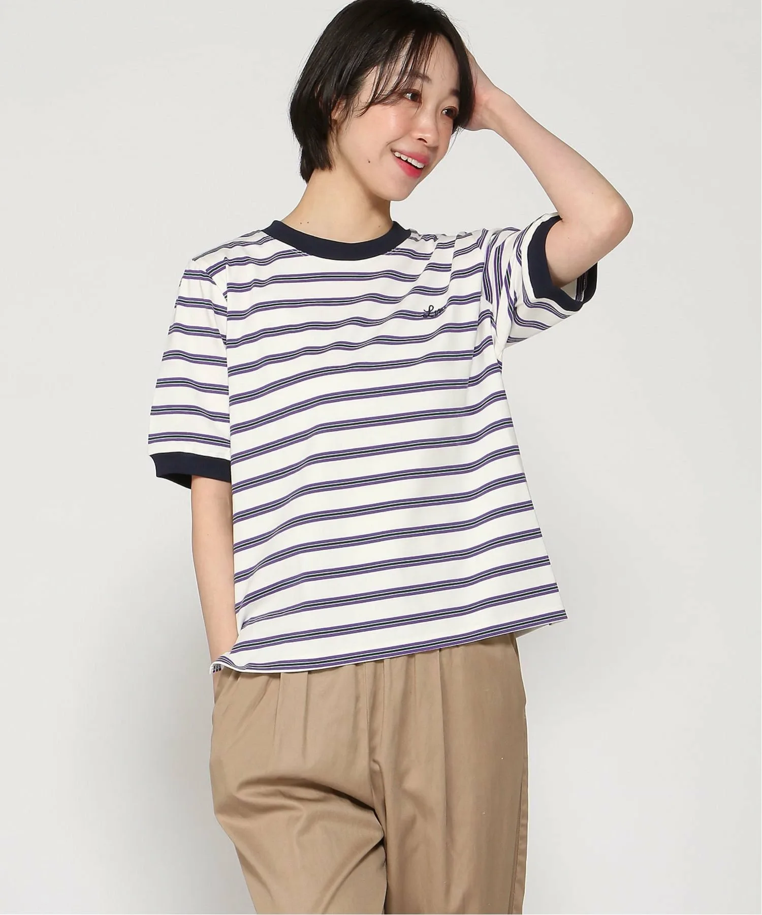 Эта футболка с короткими рукавами имеет круглый вырез, который придает воротнику аккуратный вид, и свободный силуэт с достаточным запасом места, что позволяет легко сочетать ее с любым стилем. Материал из смесовой хлопковой ткани обеспечивает комфортную посадку, а контрастная ребристая отделка на манжетах и воротнике добавляет изысканный акцент. Ее можно носить как самостоятельно, так и в качестве нижнего слоя в многослойных образах. Рост модели: 169 см. Размер: Off, black, blue/FREE