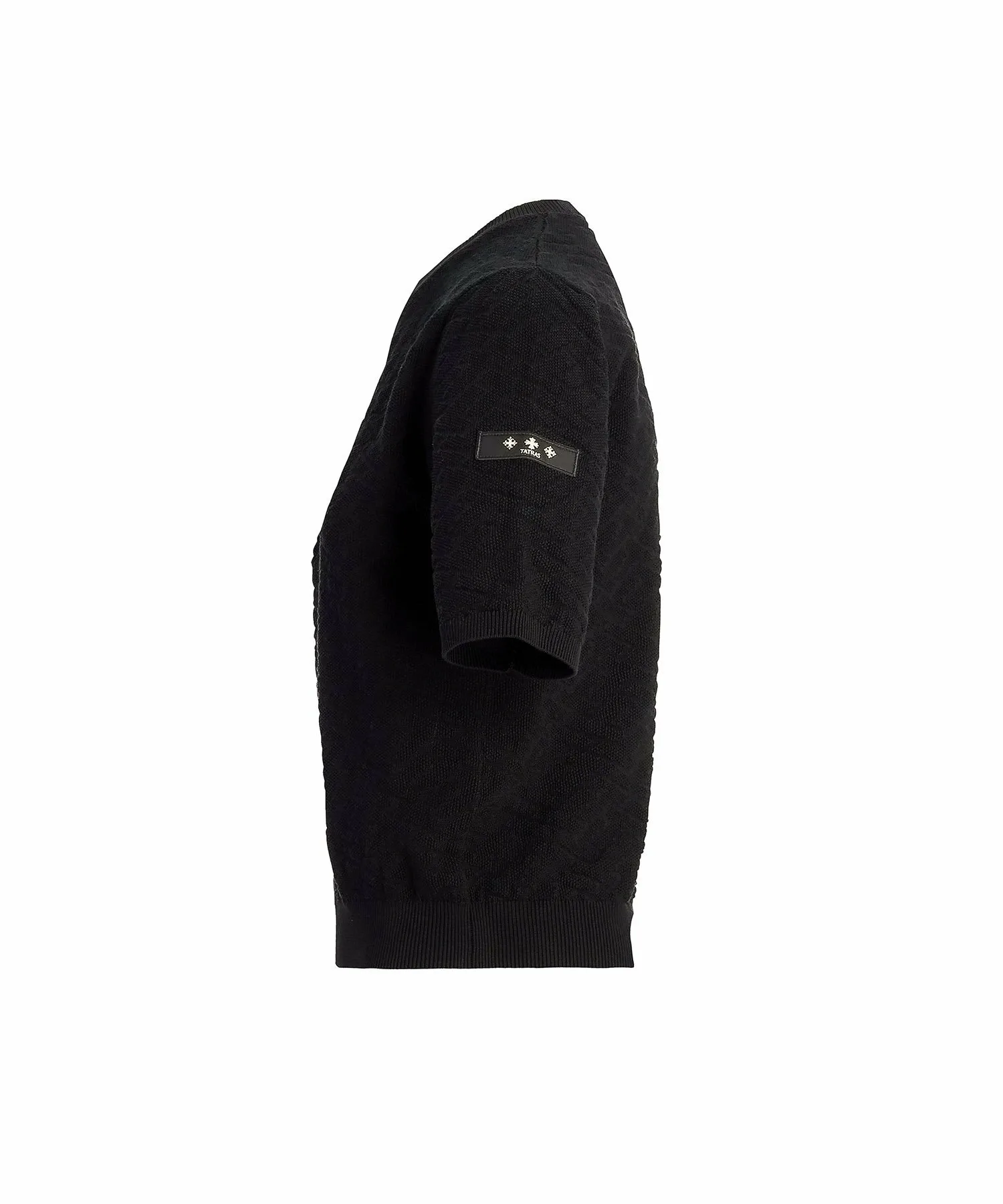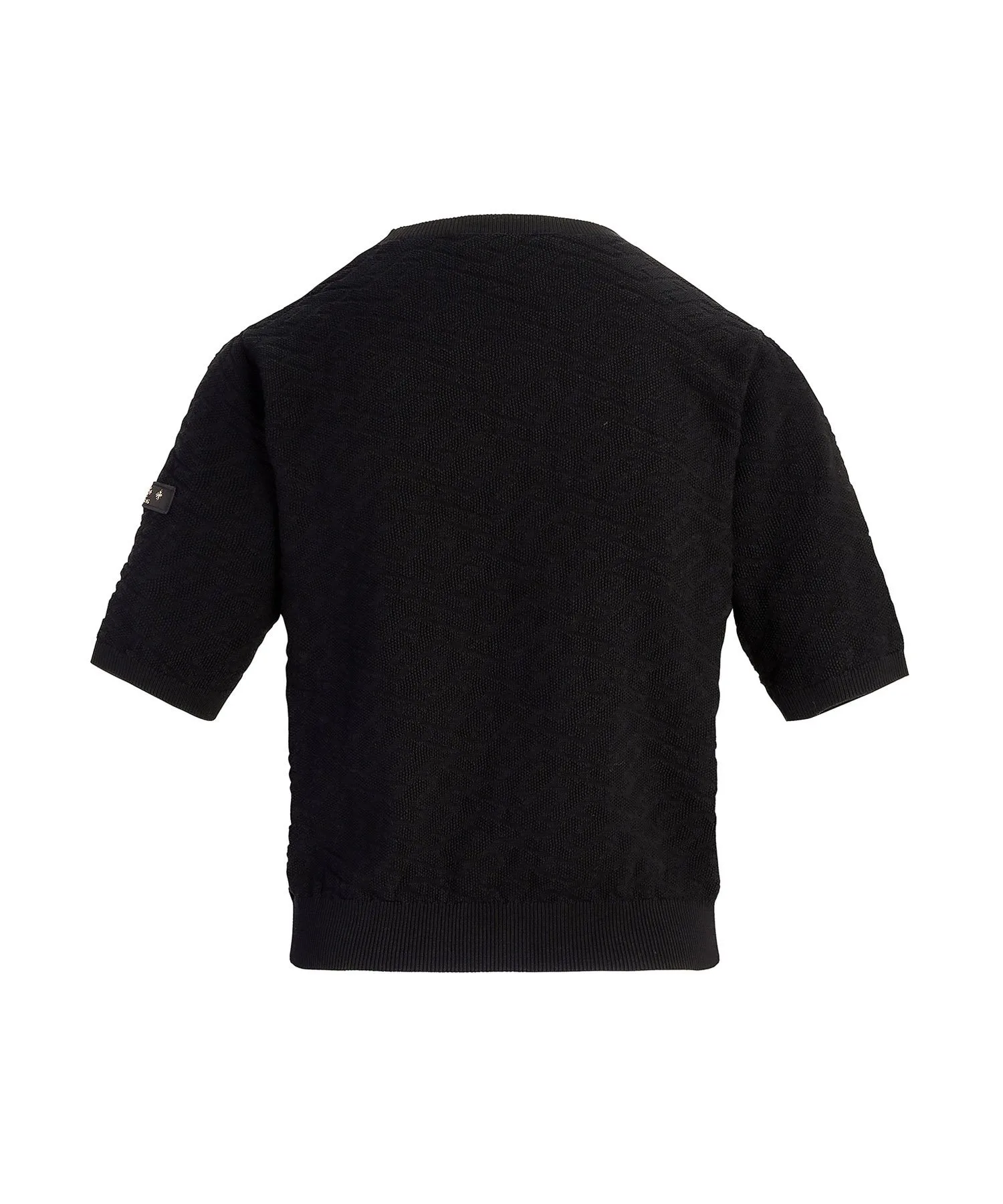 Этот пуловер с короткими рукавами украшен эффектным трехмерным монограммным узором. Угол наклона и текстура монограммы тщательно продуманы для создания впечатляющего образа. Ткань – хлопок-шелк, который можно стирать вручную, он отличается умеренной плотностью и приятной на ощупь текстурой. Ребристые вставки на воротнике, манжетах и подоле придают силуэту выразительность. Еще одна изюминка – культовая нашивка на левом рукаве. Несмотря на изысканный дизайн, однотонная расцветка позволяет легко сочетать его с другой одеждой. [Примечание]