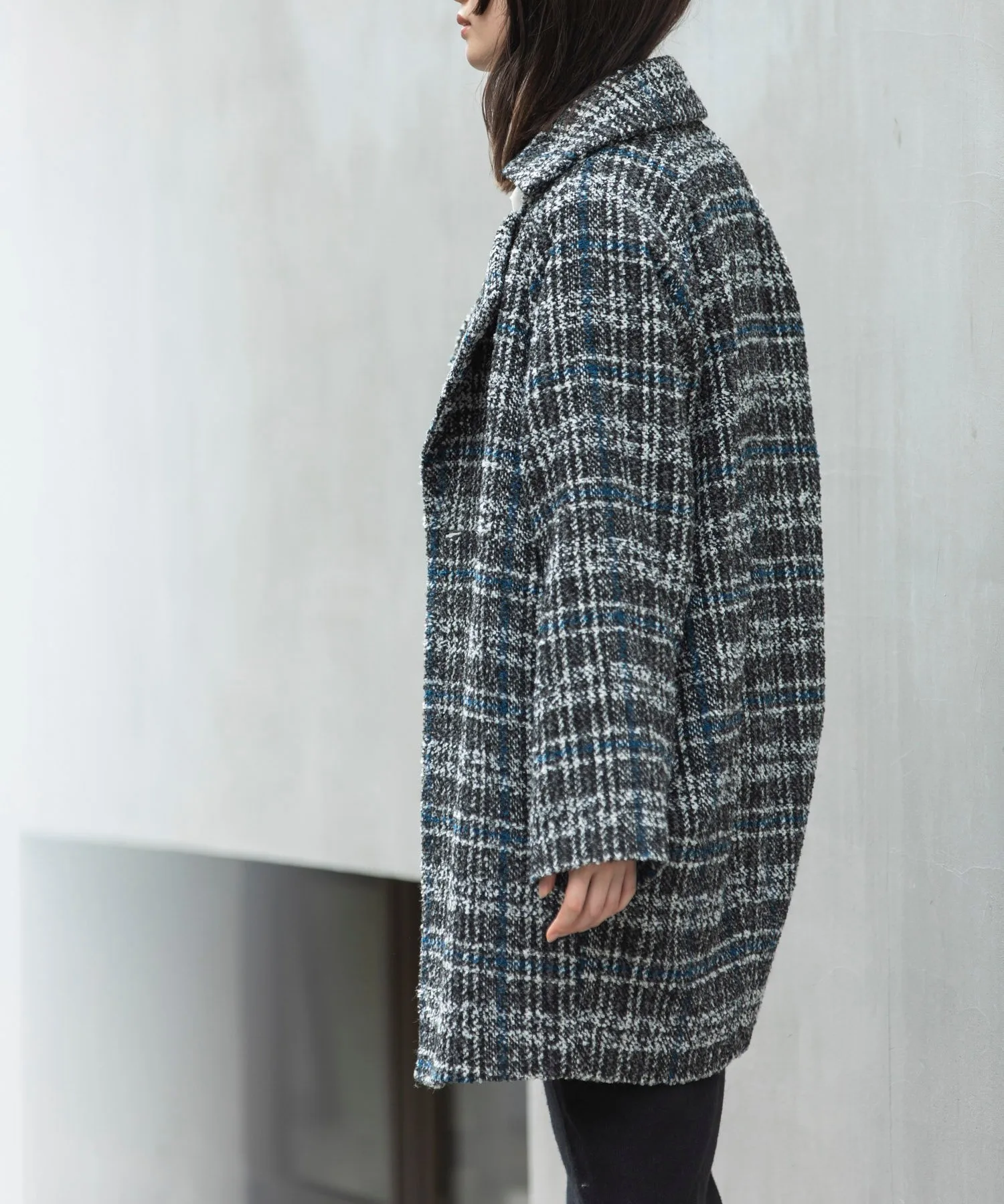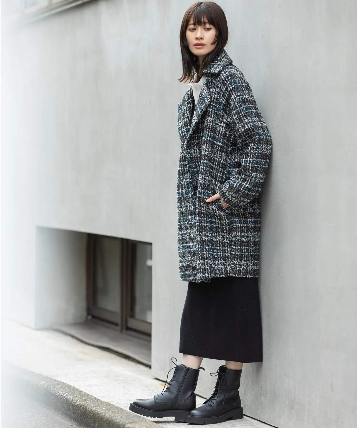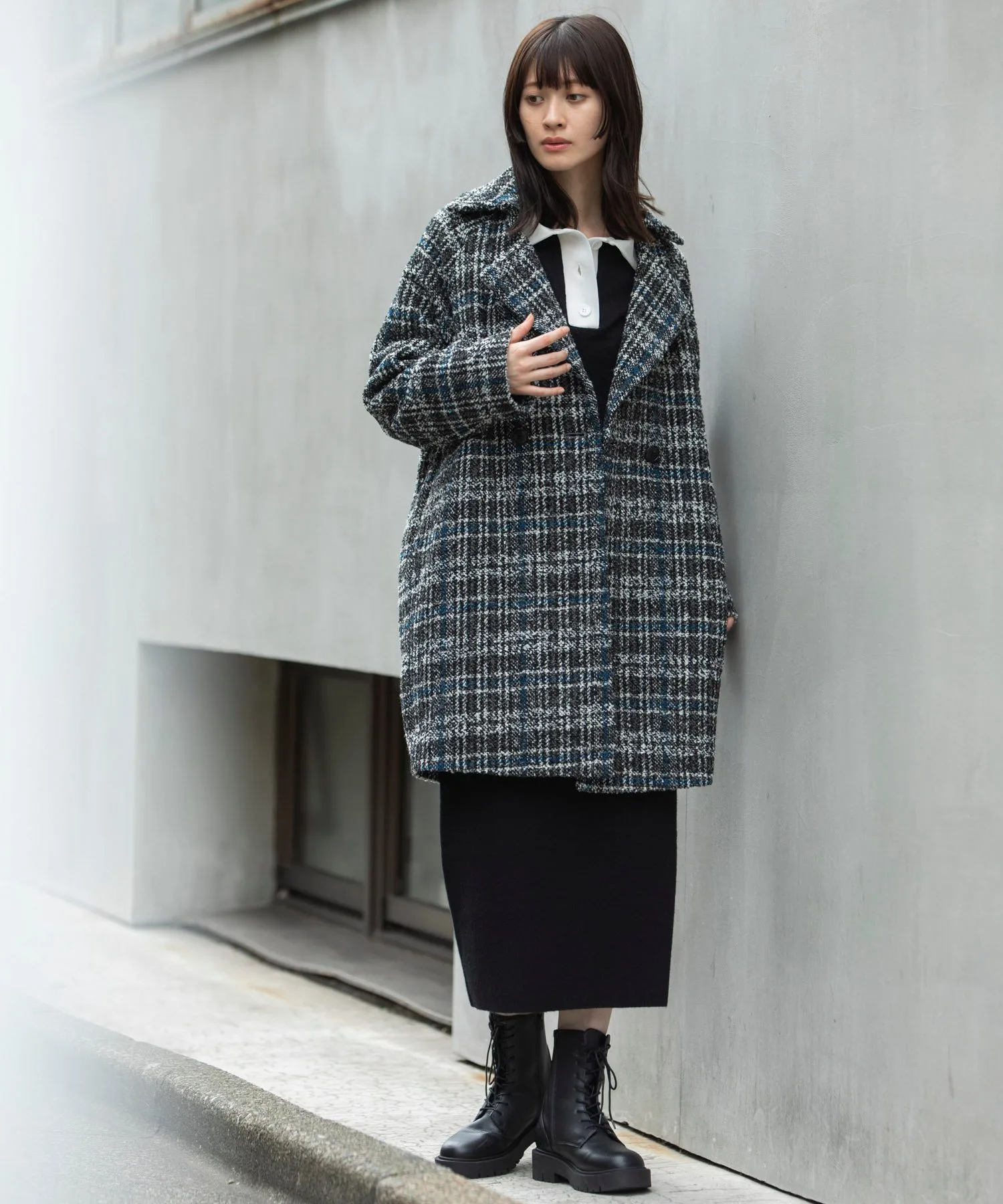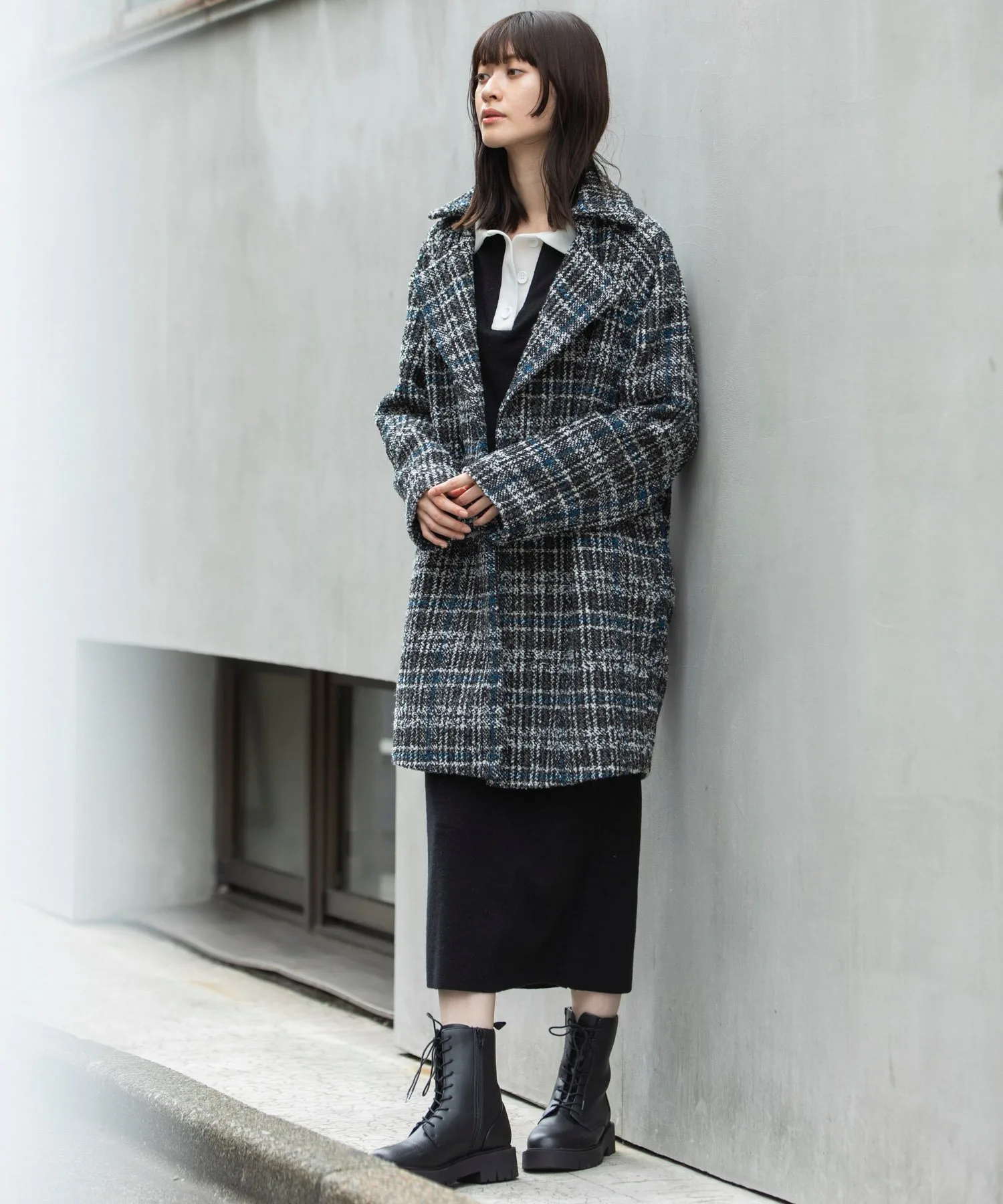 Простой, ненавязчивый силуэт делает это пальто удобным как для работы, так и для повседневной носки, а фактурный твидовый материал придает ему изысканный вид. Открытый воротник обеспечивает сбалансированный образ даже в расстегнутом виде, позволяя носить его с различной одеждой. Оно также хорошо сочетается с зимними аксессуарами, такими как шарфы и палантины. Это вневременное, базовое пальто излучает изысканность. Сдержанный силуэт «бочка», который шире в талии, особенно эффектно смотрится в сочетании с строгими линиями низа, например, с облегающей юбкой.