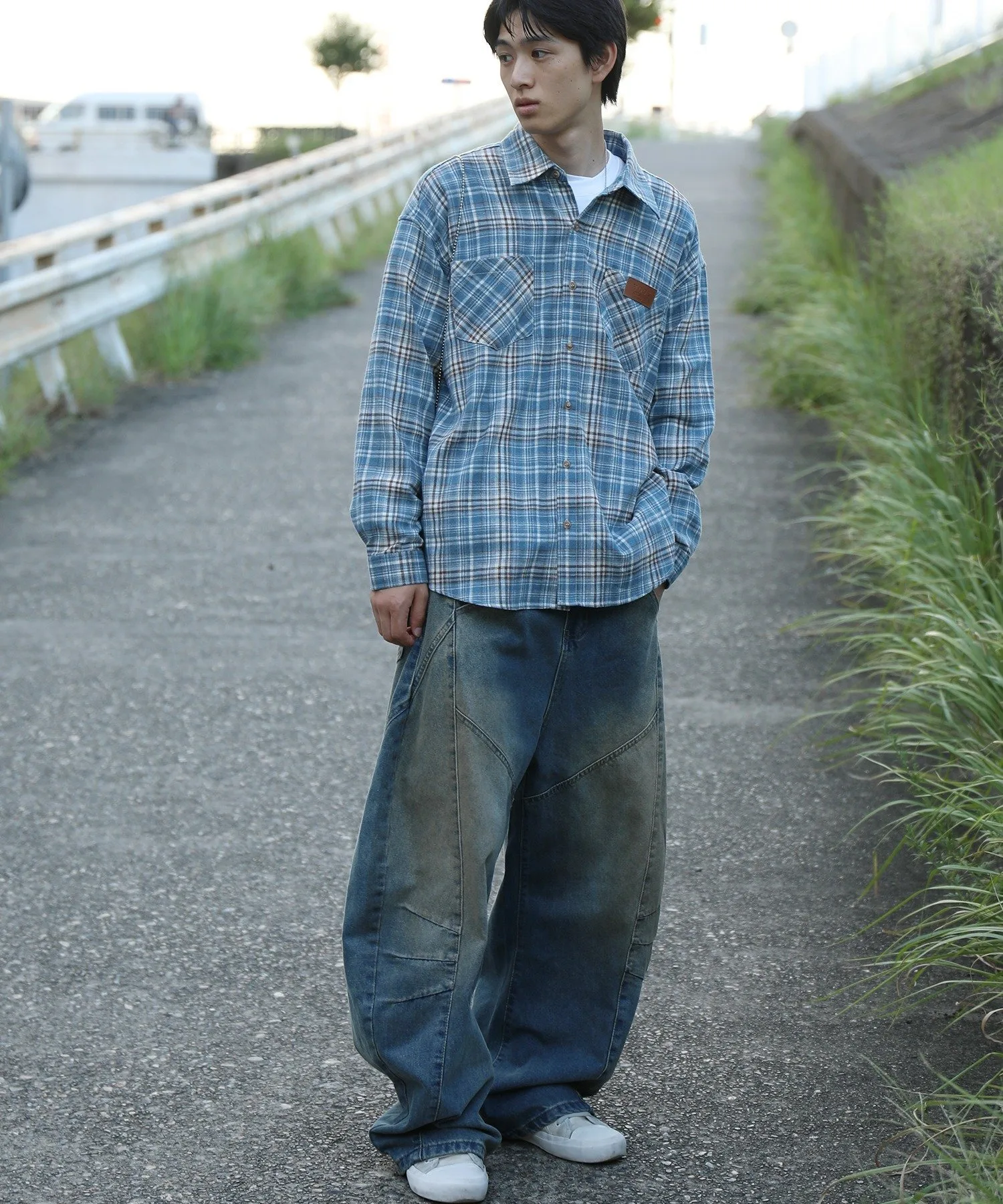 Они имеют силуэт «кокон», плавно расширяющийся к низу, что добавляет им выразительности и непринужденности. Плавные изгибы создают эффект стройности, визуально делая верхнюю часть тела более подтянутой. Лоскутный дизайн спереди и вышивка на задних карманах — это тонкие акценты, придающие им утонченный, но не слишком простой вид.