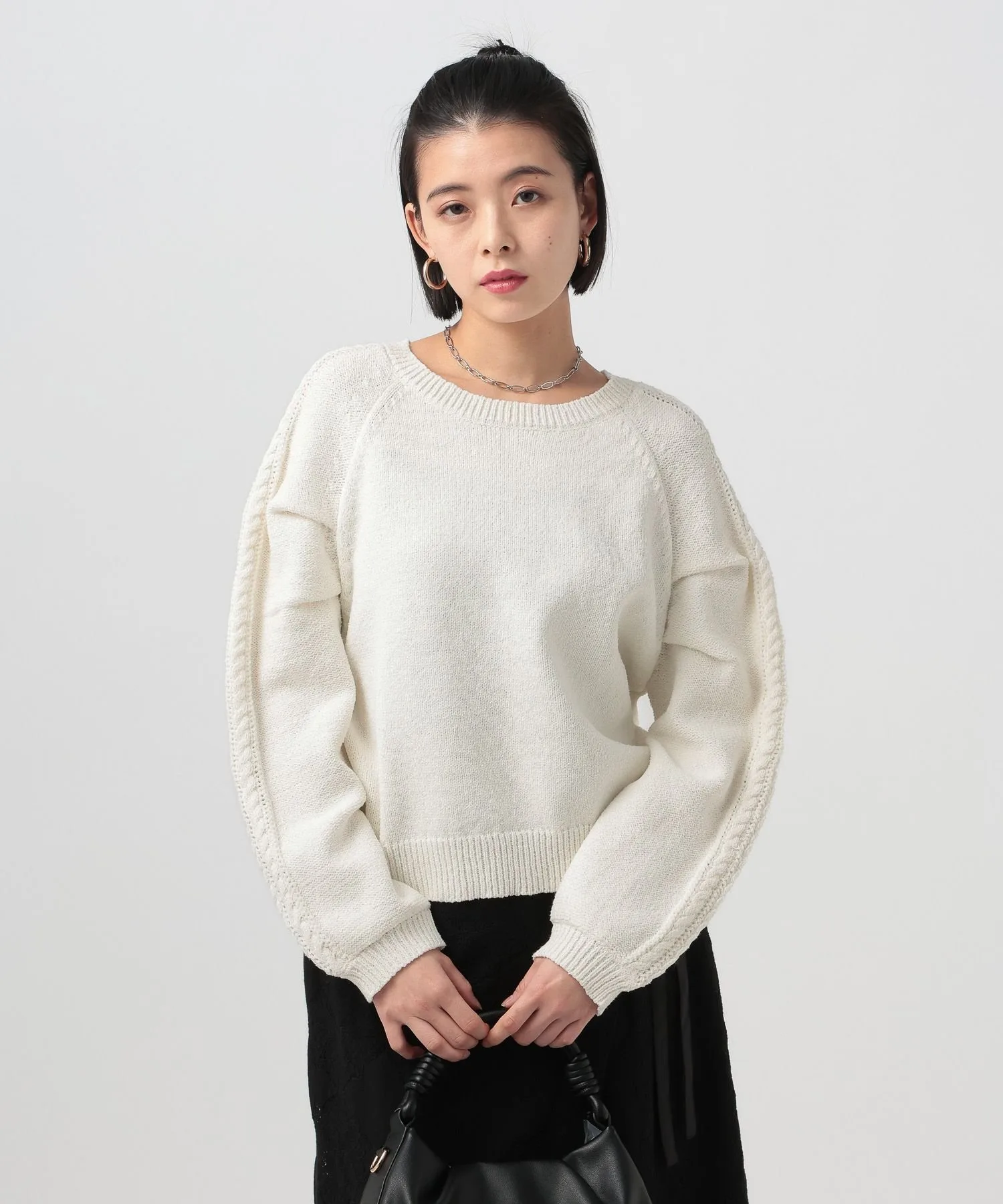 Вязаный топ с необычным узором на рукаве★Рекомендуемые характеристики★