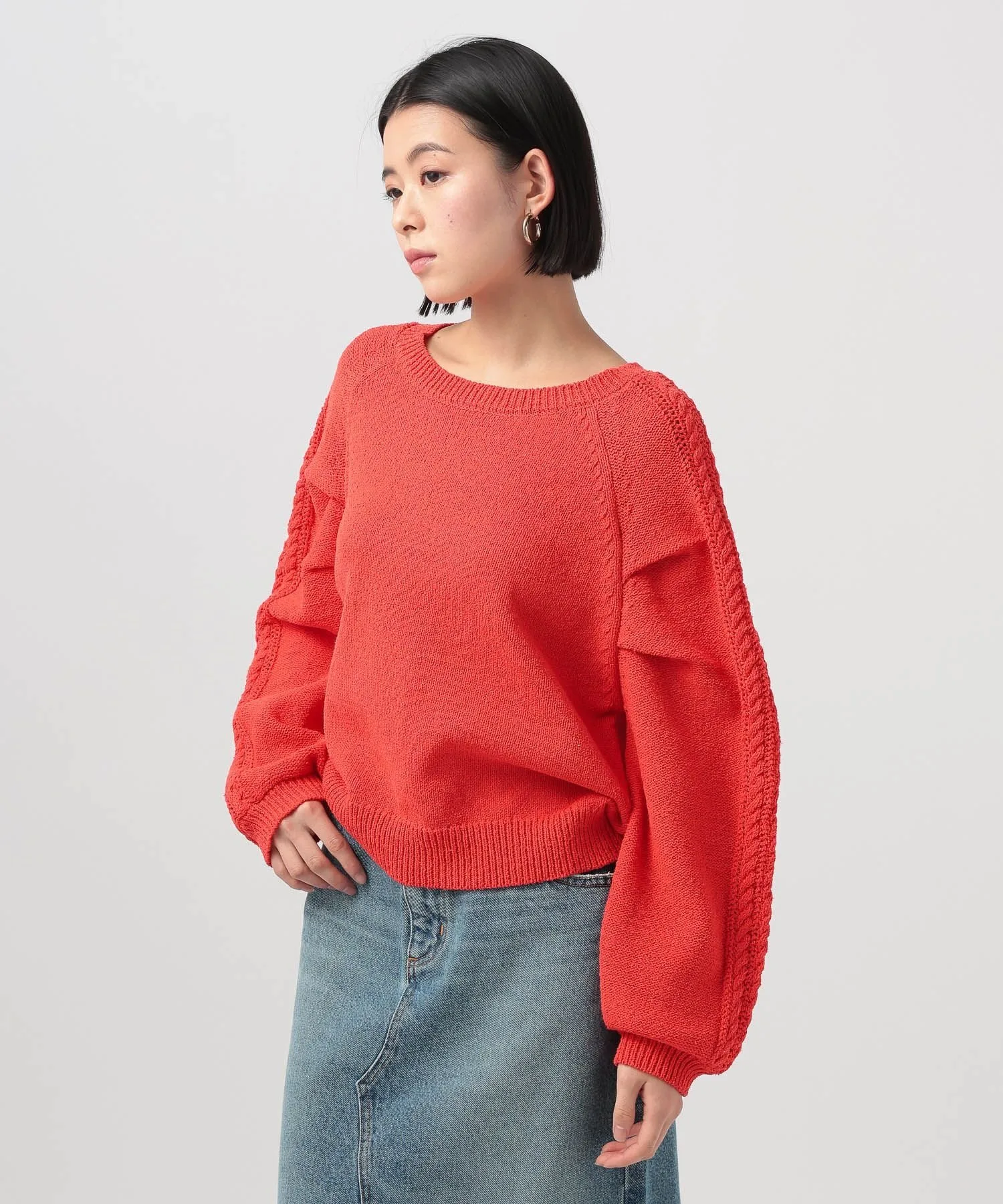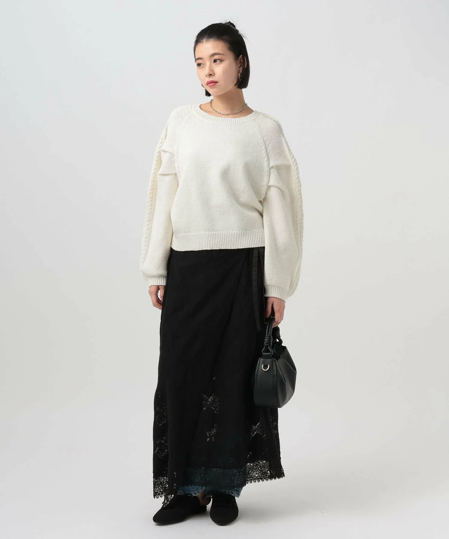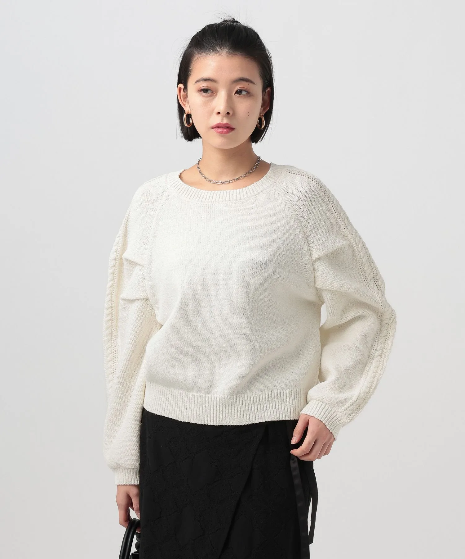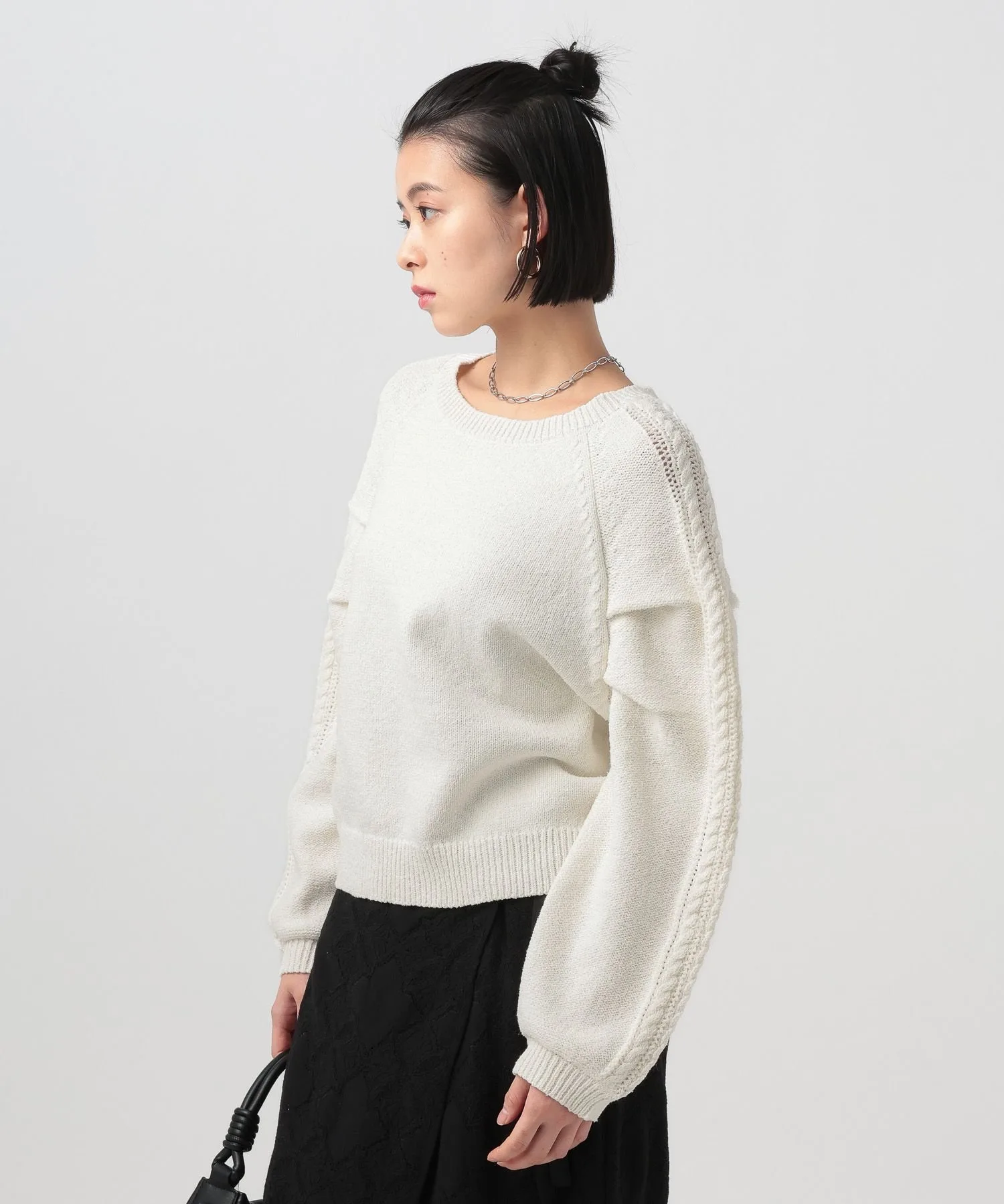 Вязаный топ с необычным узором на рукаве★Рекомендуемые характеристики★