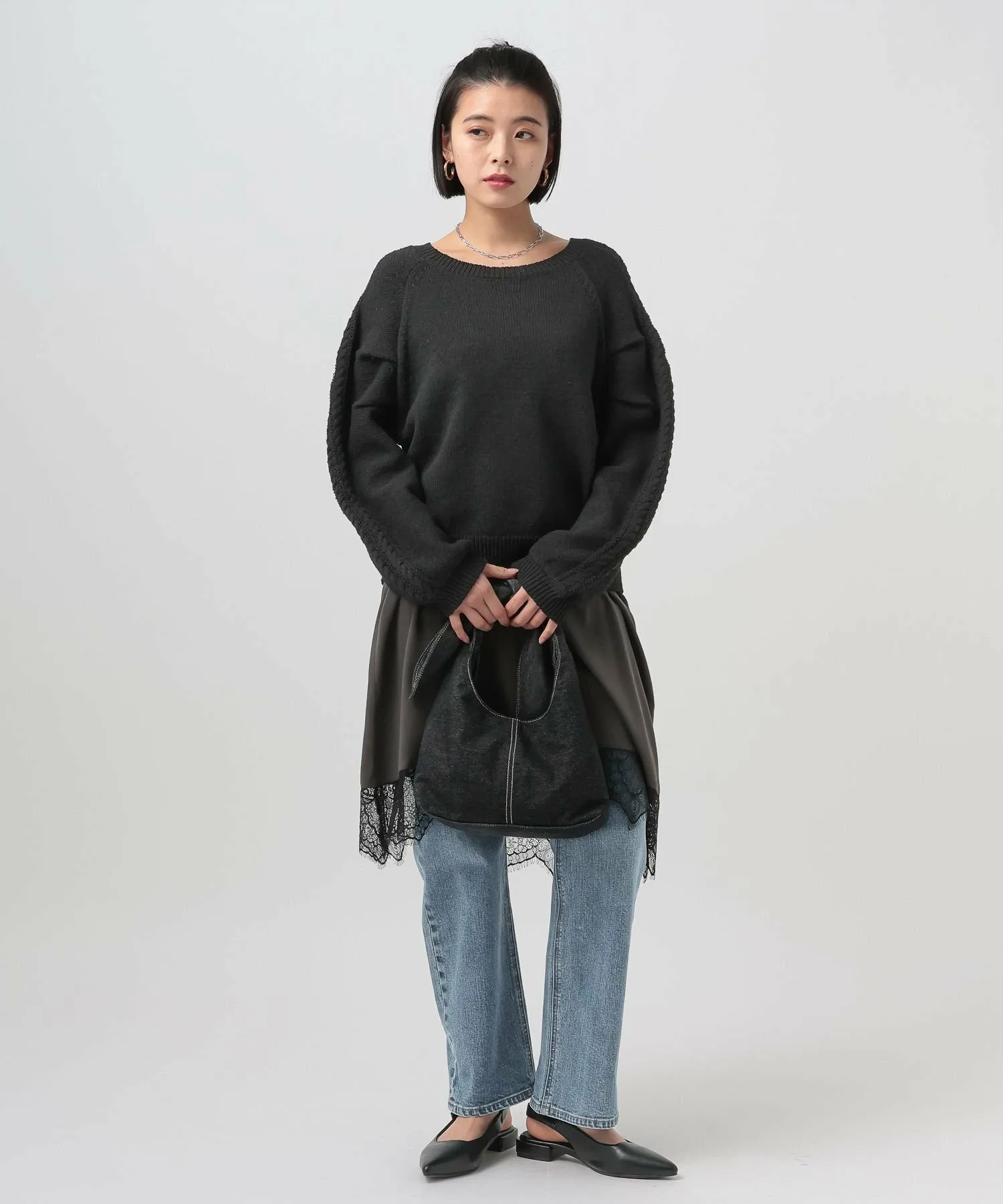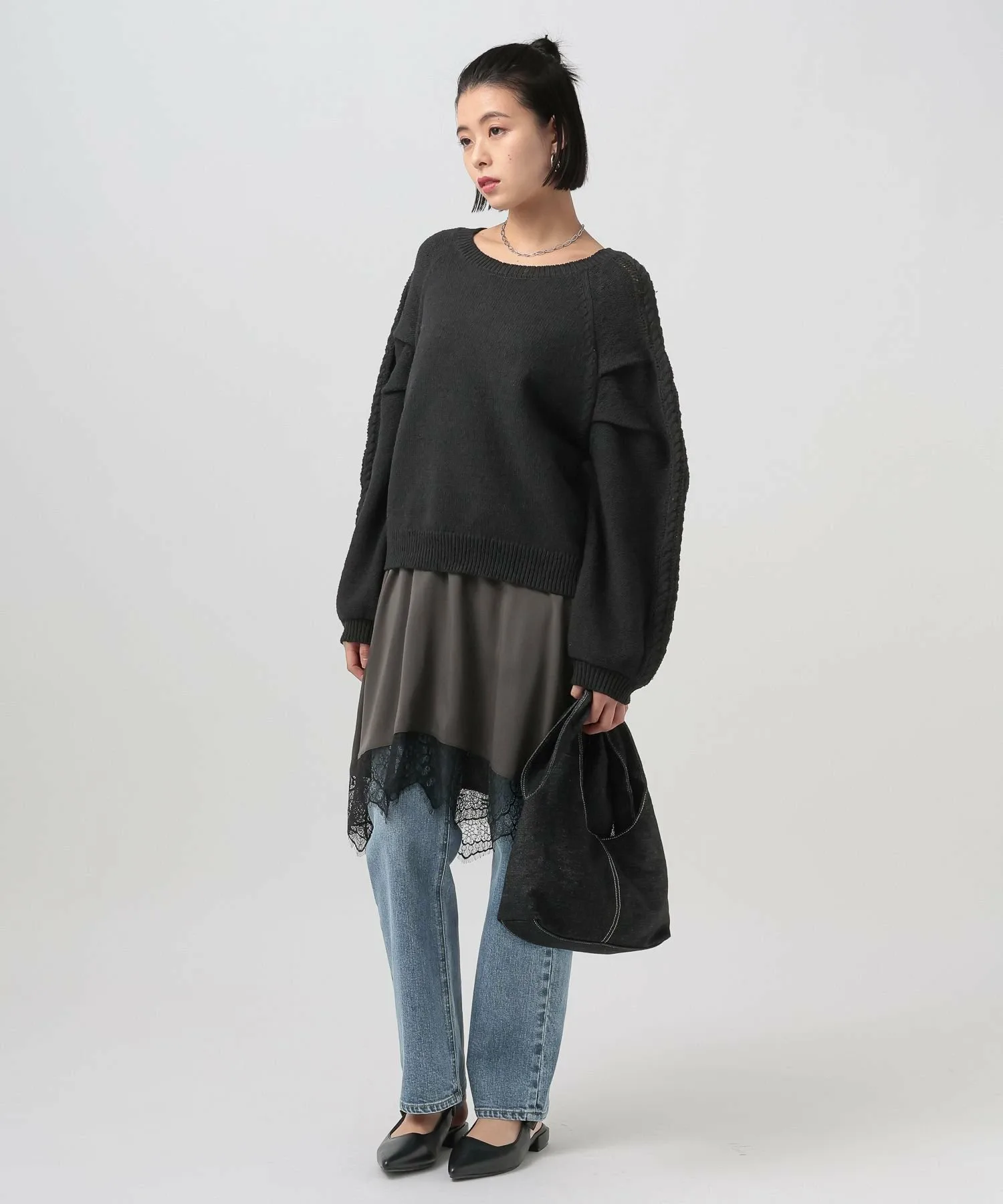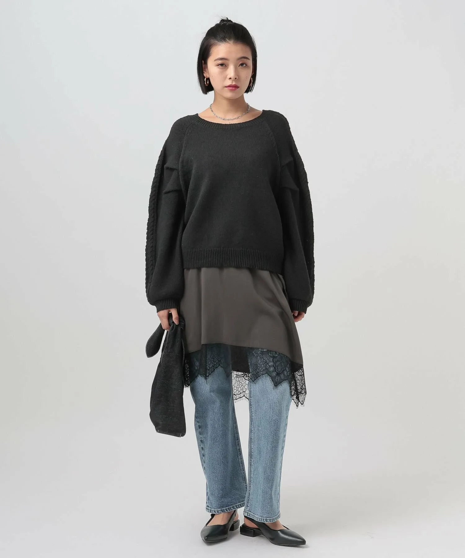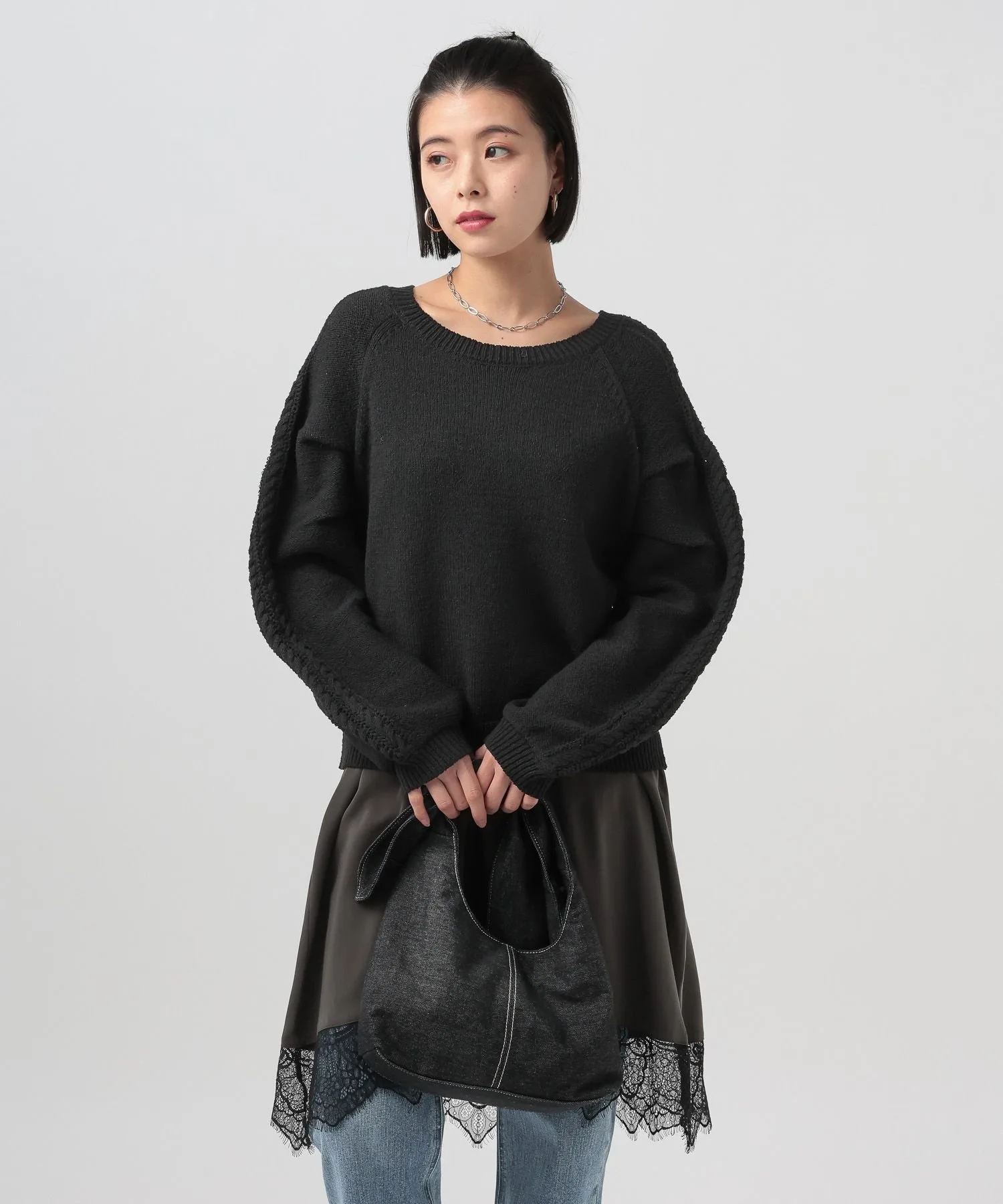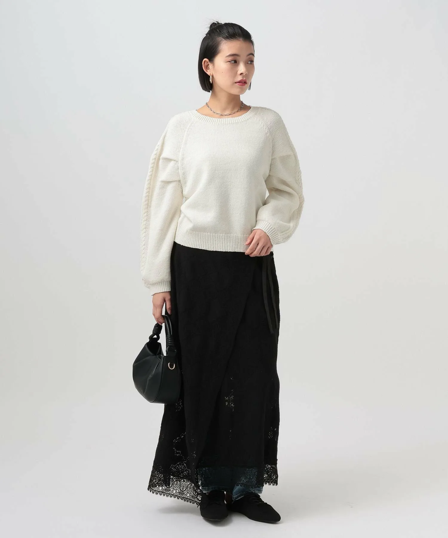 Вязаный топ с необычным узором на рукаве★Рекомендуемые характеристики★