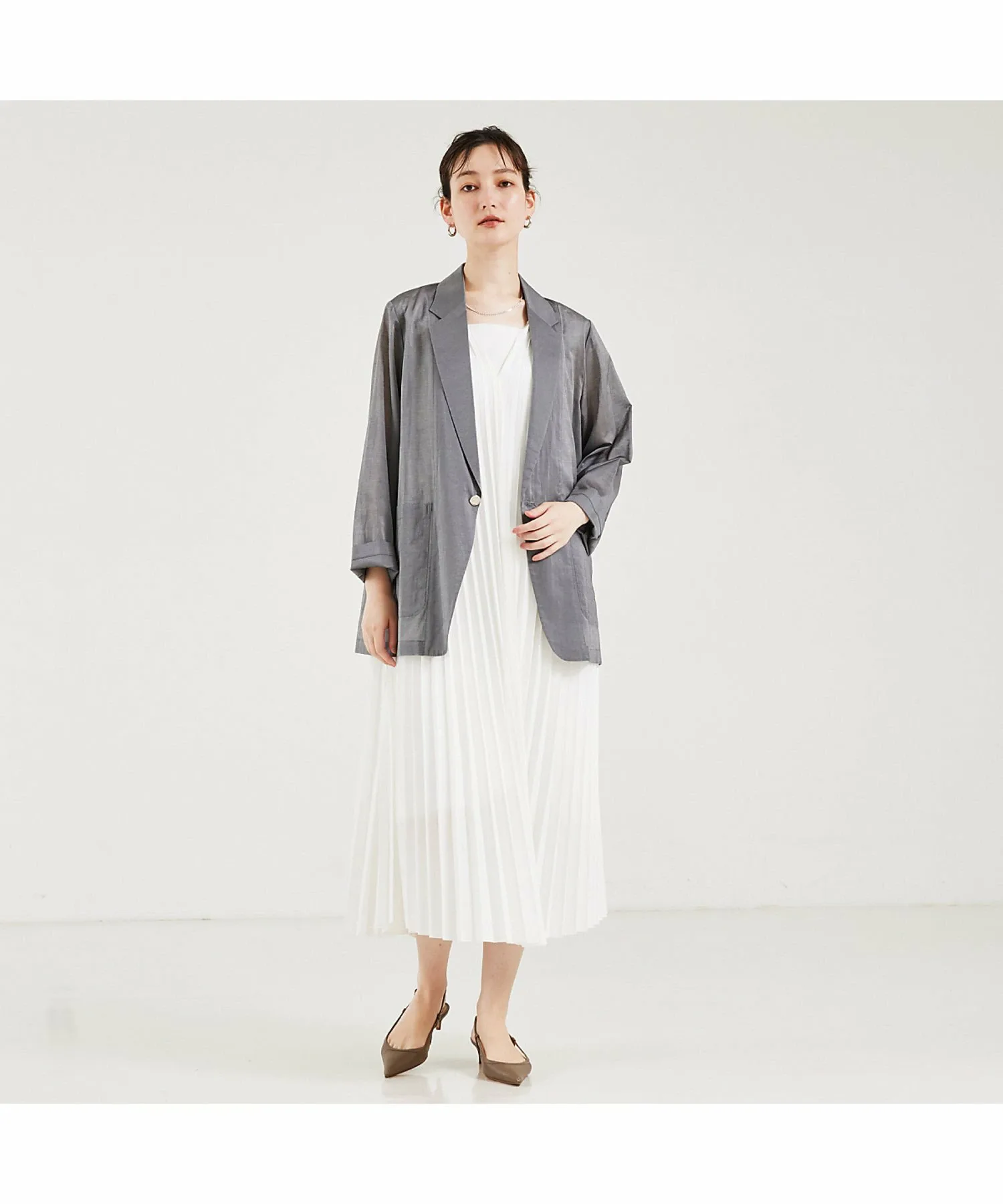 Серая модель: высота 170 см, ширина 77 см, ширина 58 см, высота 85 см, размер 38.