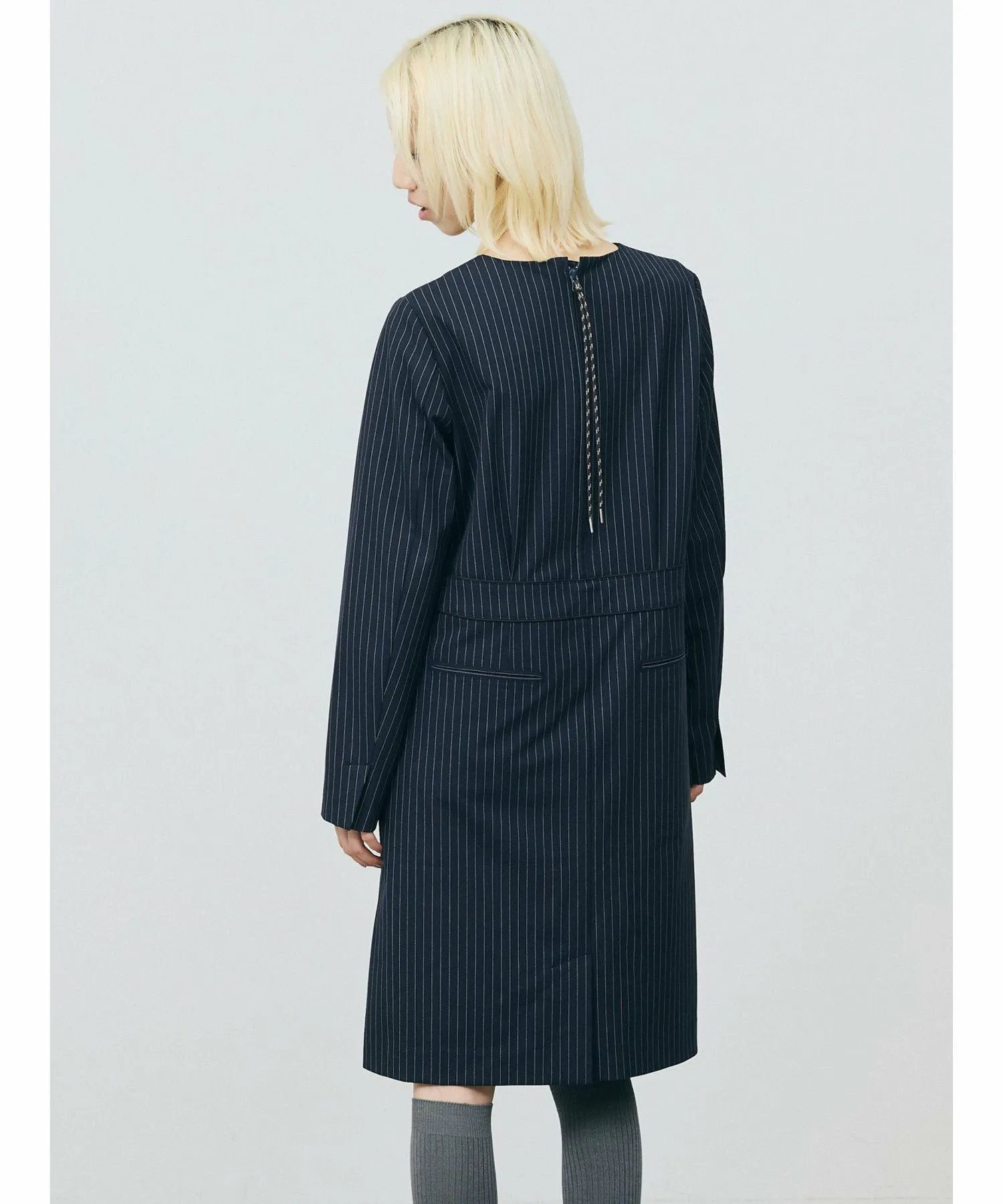 Это платье из саржи T/R сшито из костюмной ткани. Это простое платье, в дизайне которого использованы детали мужских пиджаков и брюк. Несмотря на то, что это платье, оно выглядит стильно. Шнурок в верхней части молнии на спине добавляет изюминку к простому дизайну. Изготовленное из смеси полиэстера, вискозы и полиуретана, оно имеет оптимальную длину, что делает его универсальным изделием, которое можно носить в любое время года, от начала осени до начала весны. Его также можно носить в комплекте с соответствующим изделием,