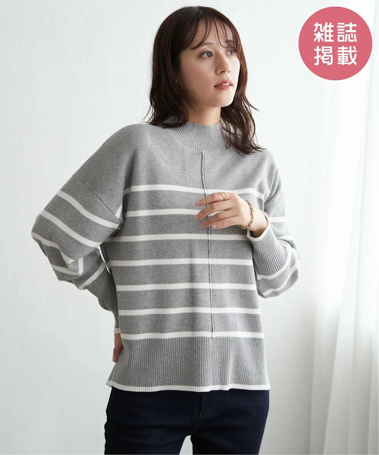 Полностью вязаное изделие из смесовой хлопковой ткани оптимальной толщины для повседневного образа.
