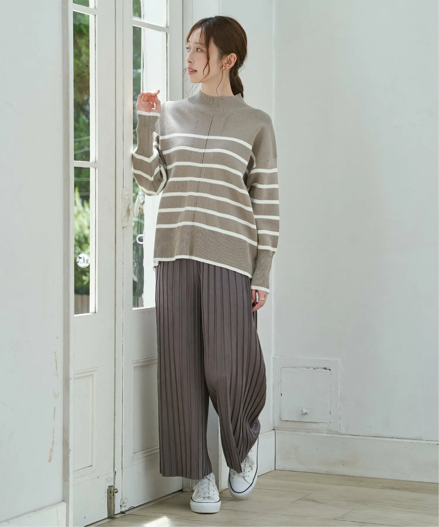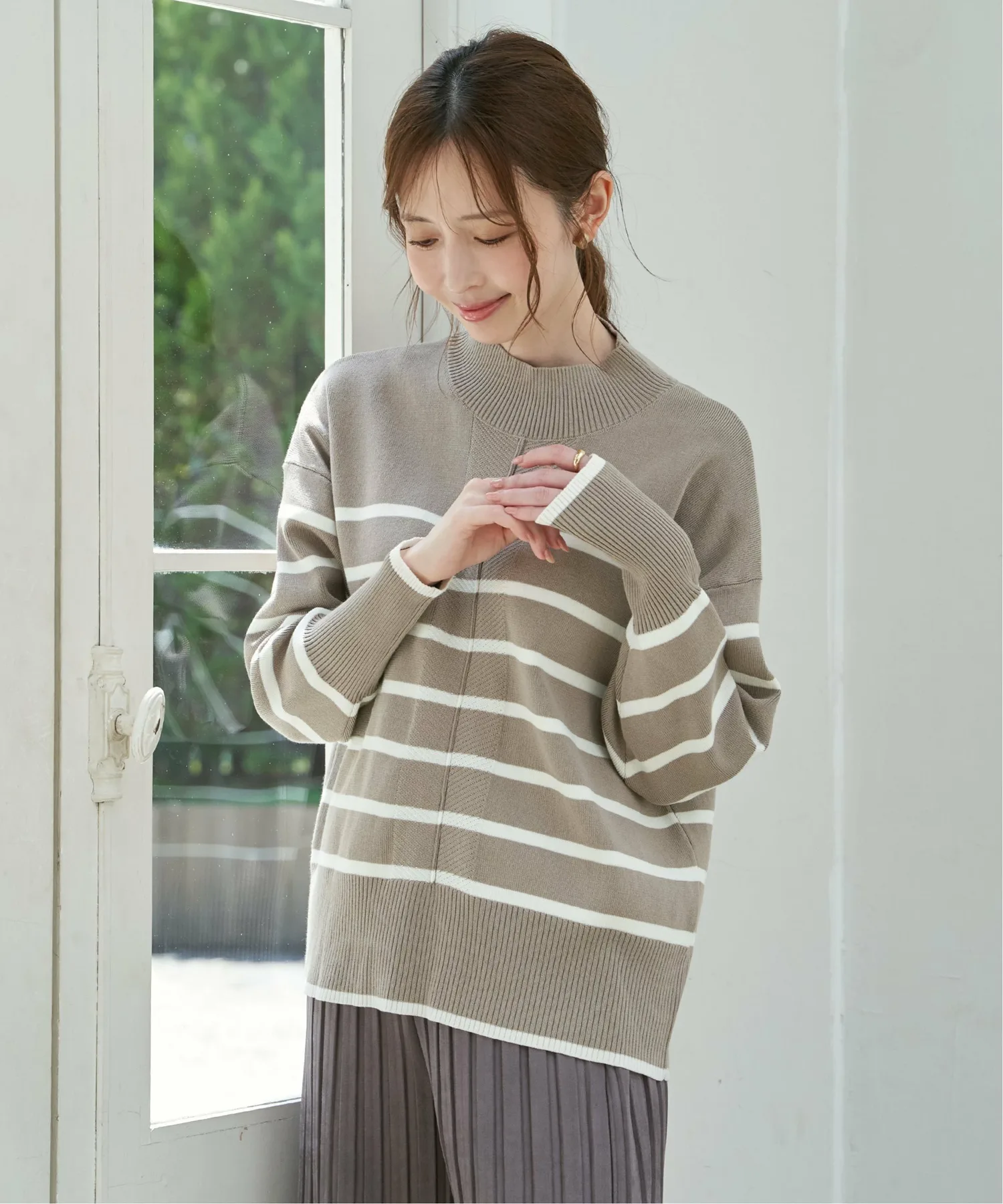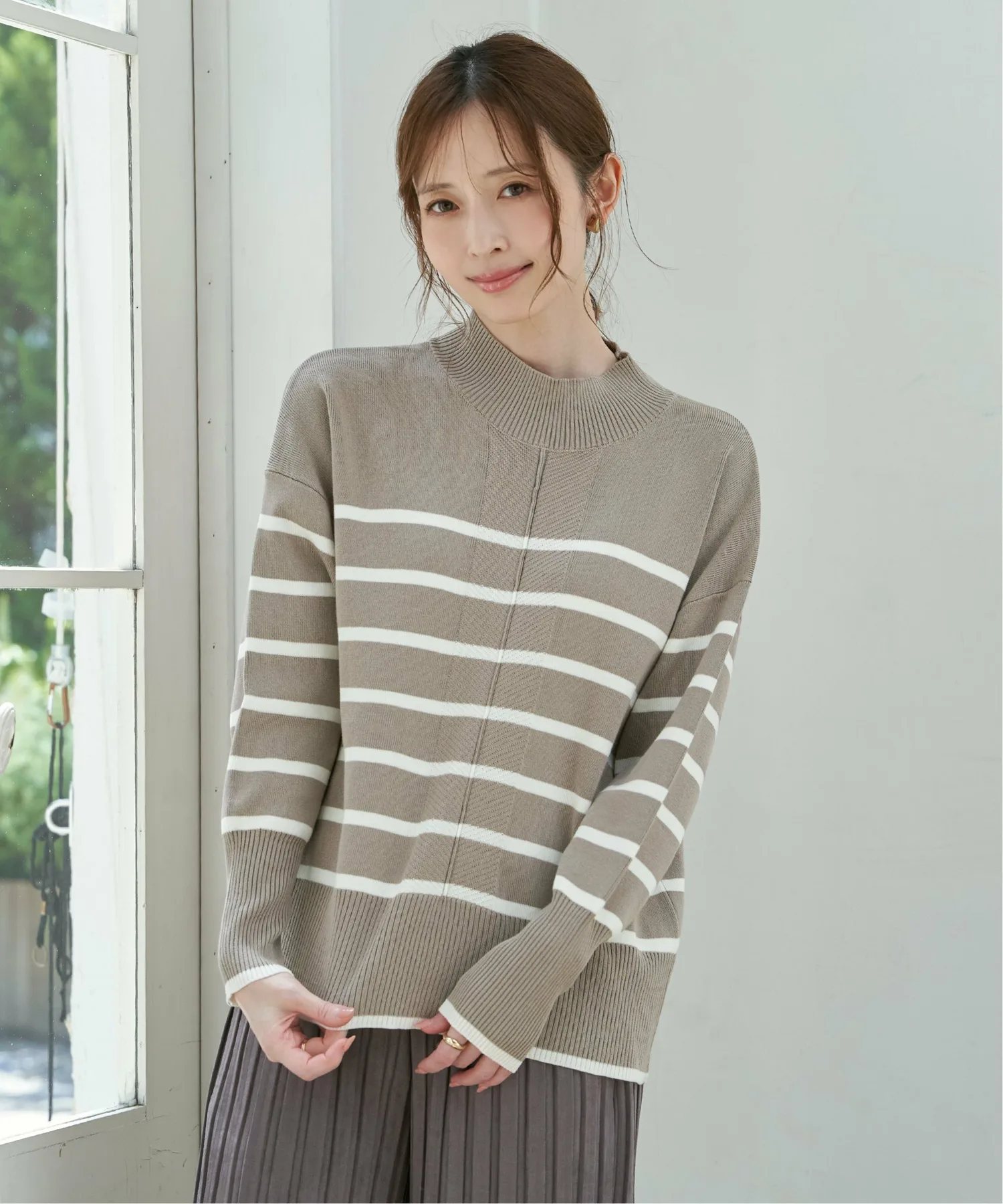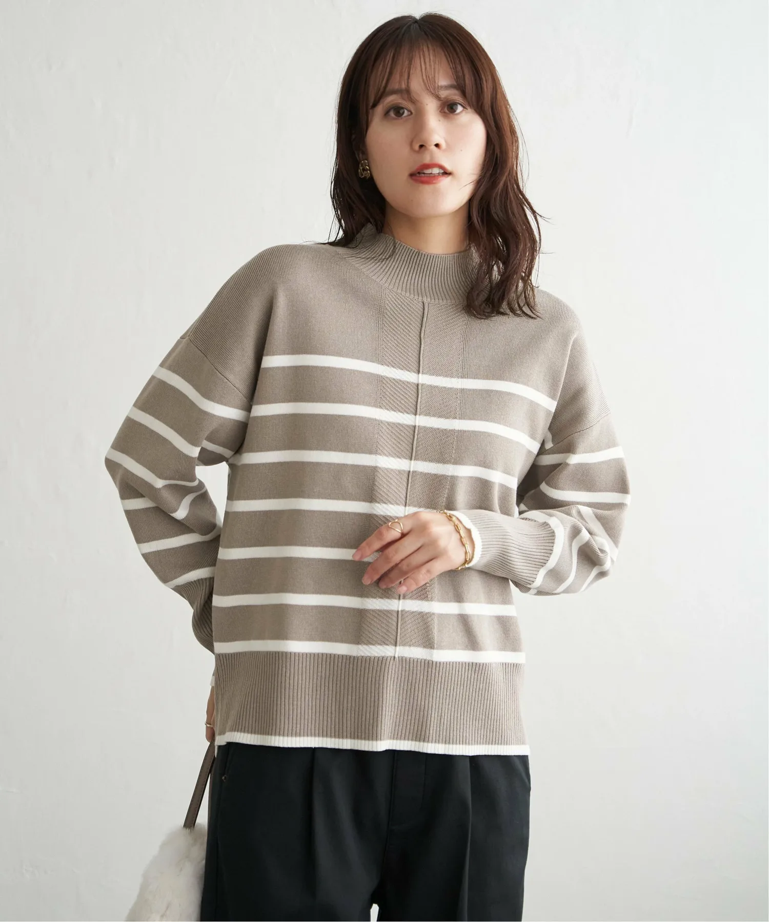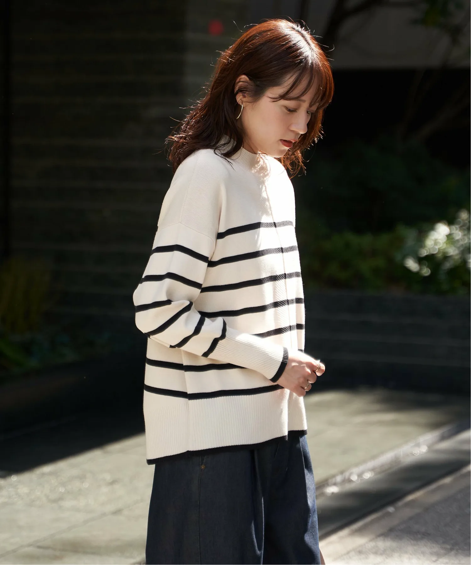 Полностью вязаное изделие из смесовой хлопковой ткани оптимальной толщины для повседневного образа.