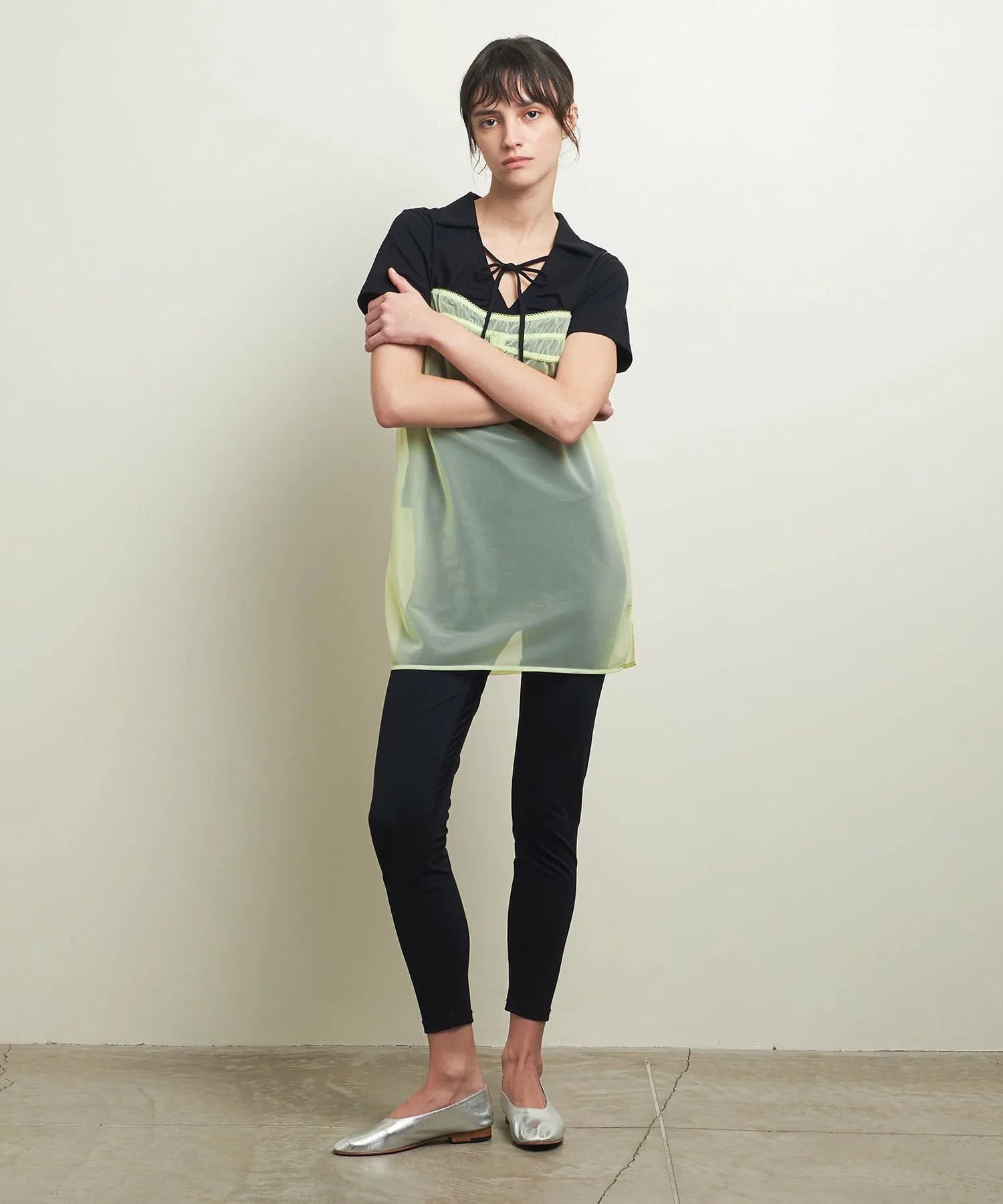 Изготовлено из прозрачного трикотажа, обладающего нежной плотностью, как у тканого полотна, и оптимальной драпировкой.