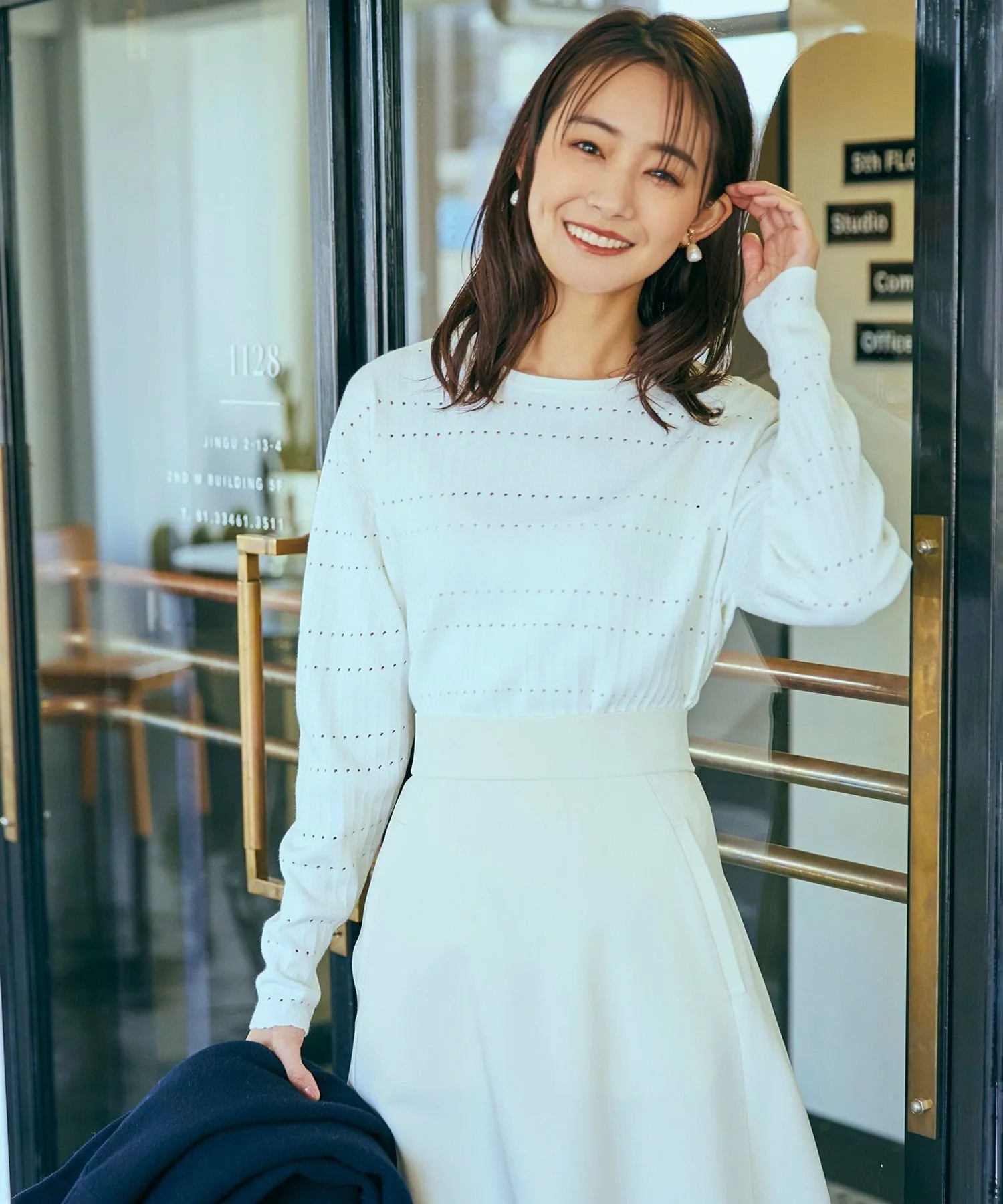 Дизайн Этот вязаный пуловер отличается простым силуэтом и новым узором. Он приятен на ощупь и удобен в носке. Сочетайте его с юбкой из того же материала для создания изысканного образа, даже в более формальной обстановке. Привлекательный вязаный дизайн дополняет простые брюки, даже если носить его отдельно. Доступен в четырех цветах: ярко-розовый (#012), небесно-голубой (#075), простой и универсальный белый (#001) и темно-синий (#075).