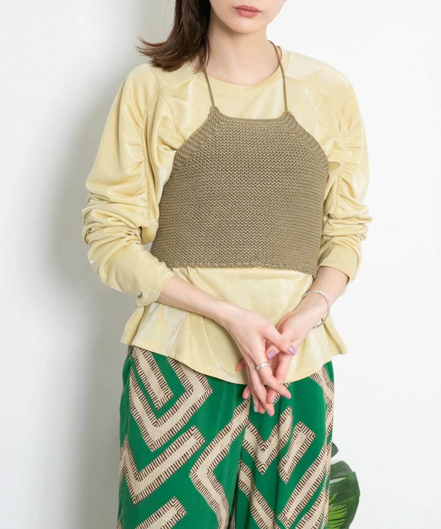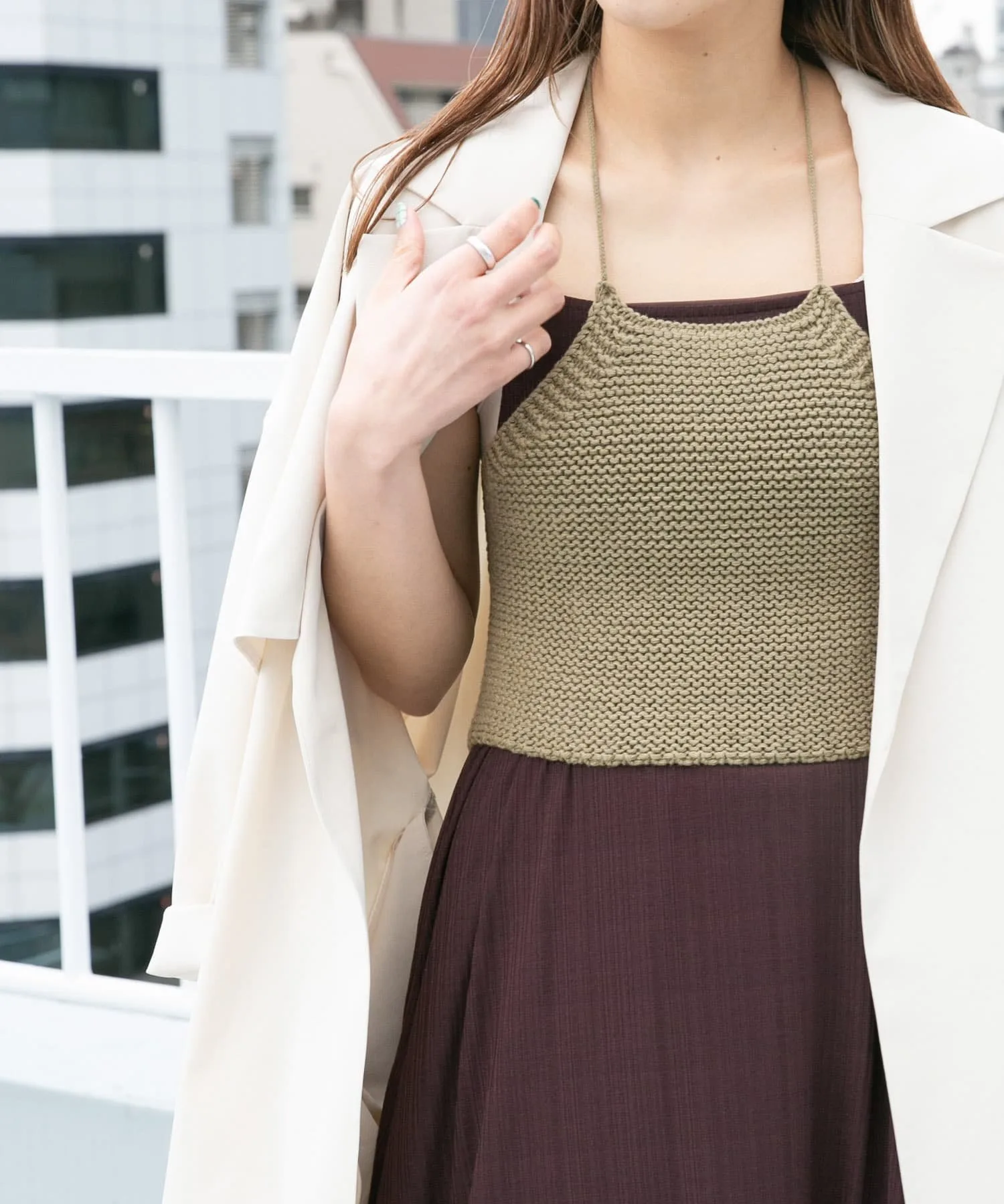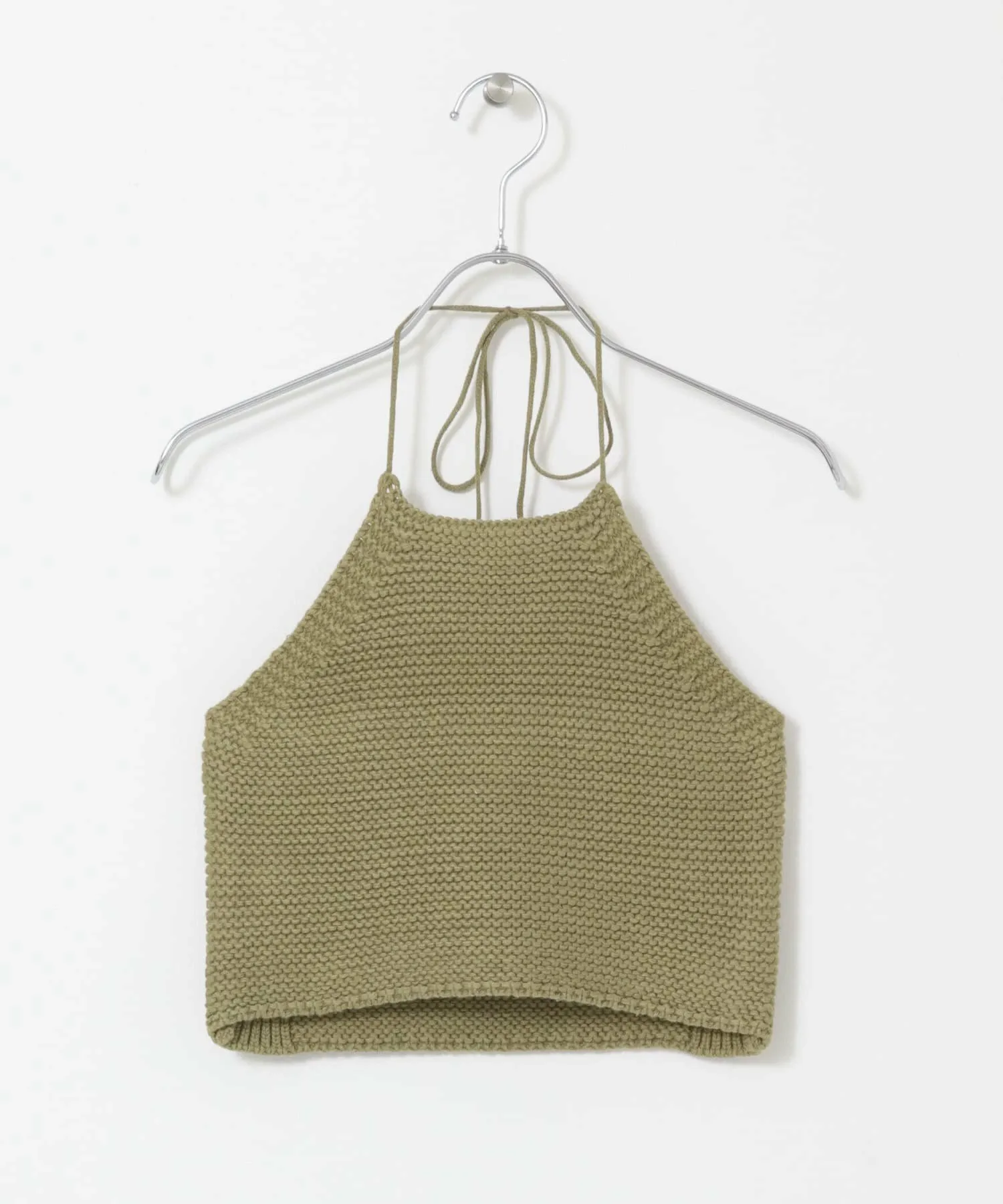 Этот трикотаж с завязками на шее отличается изящными бретелями и смелым дизайном с открытой спинкой, подчеркивающим здоровый и женственный образ. Текстурированная платочная вязка делает его универсальным для широкого спектра стилей, от повседневных до женственных. Доступен в трех цветах, которые хорошо сочетаются с кожей, позволяя создавать разнообразные образы.