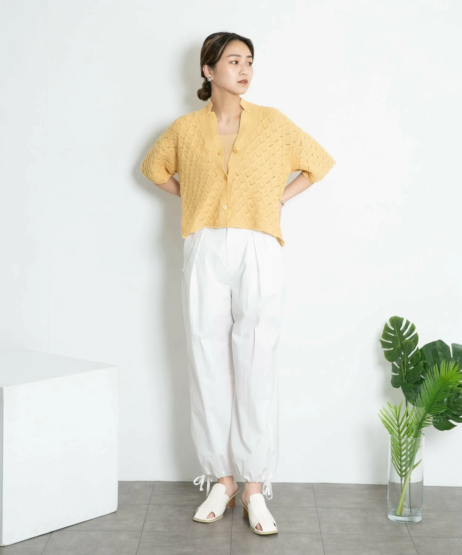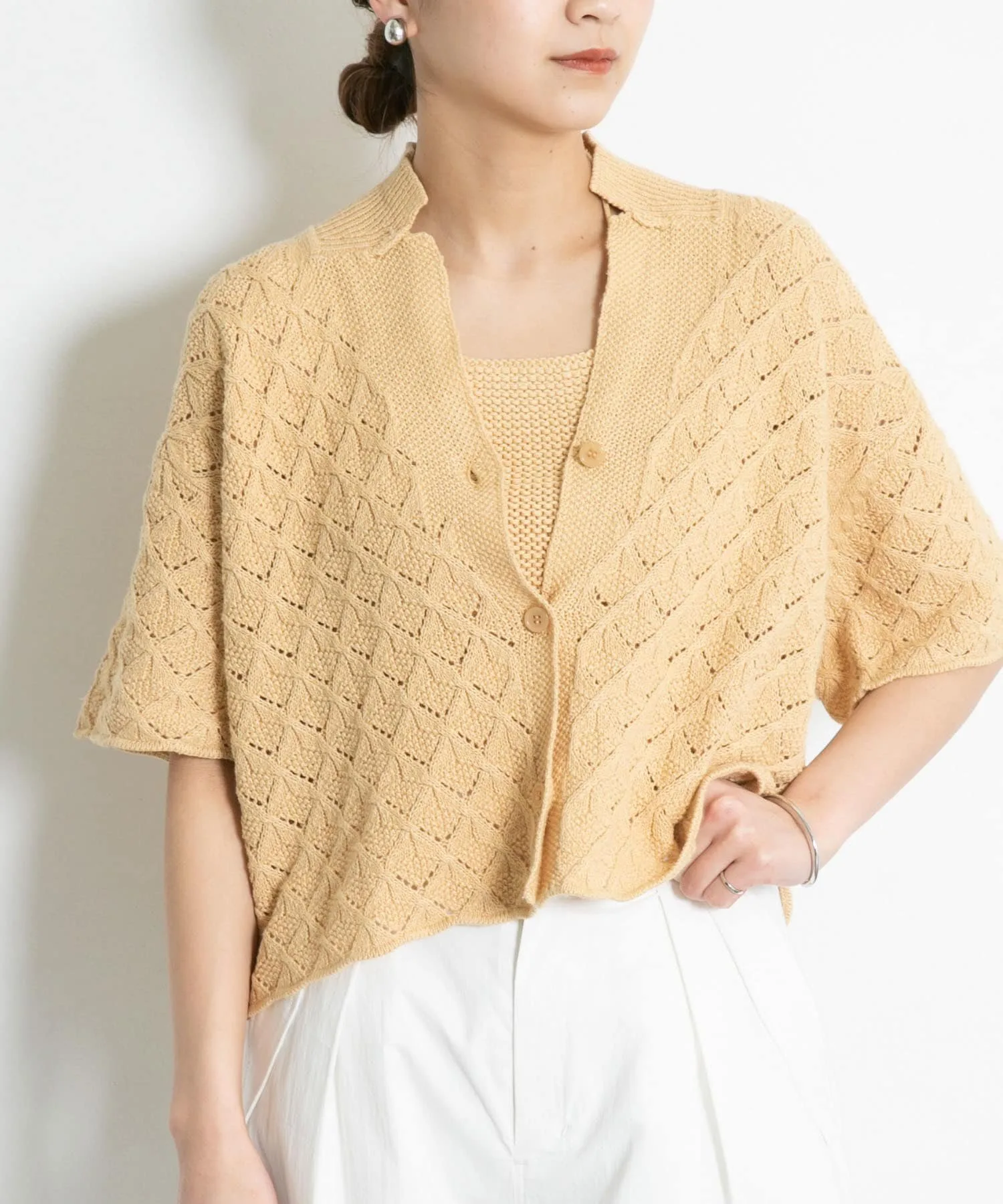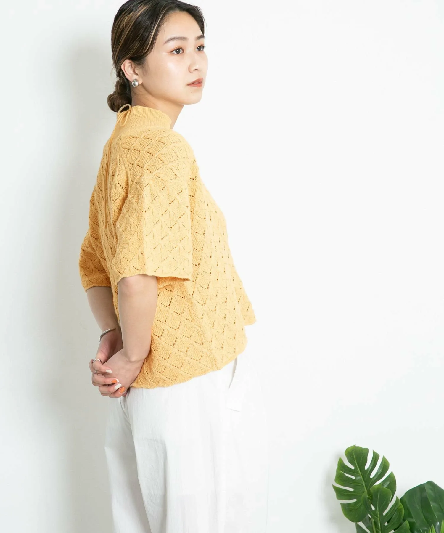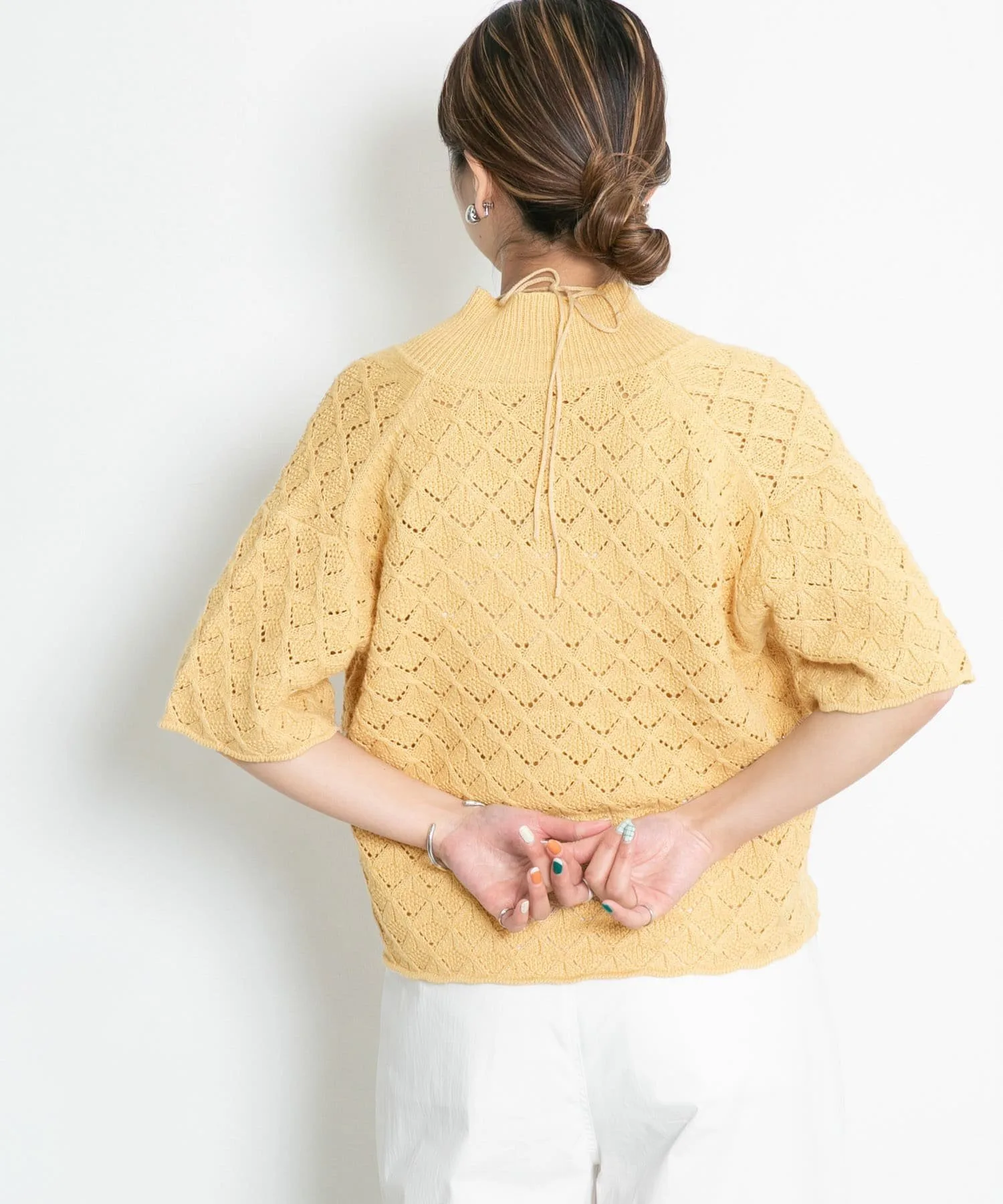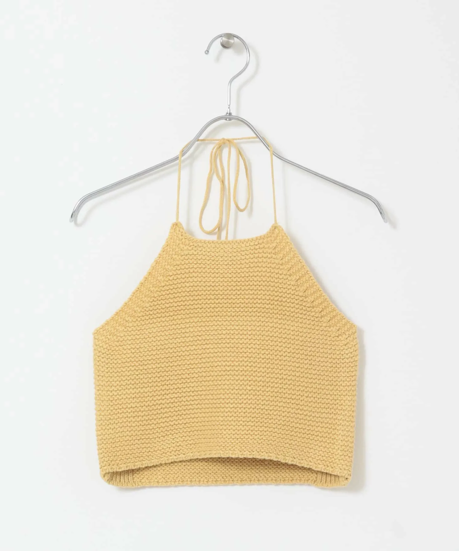 Этот трикотаж с завязками на шее отличается изящными бретелями и смелым дизайном с открытой спинкой, подчеркивающим здоровый и женственный образ. Текстурированная платочная вязка делает его универсальным для широкого спектра стилей, от повседневных до женственных. Доступен в трех цветах, которые хорошо сочетаются с кожей, позволяя создавать разнообразные образы.