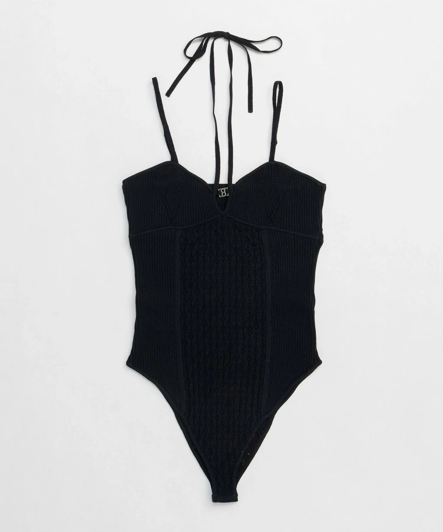 Вязаный боди с акцентированными швами, напоминающими бюстье.
