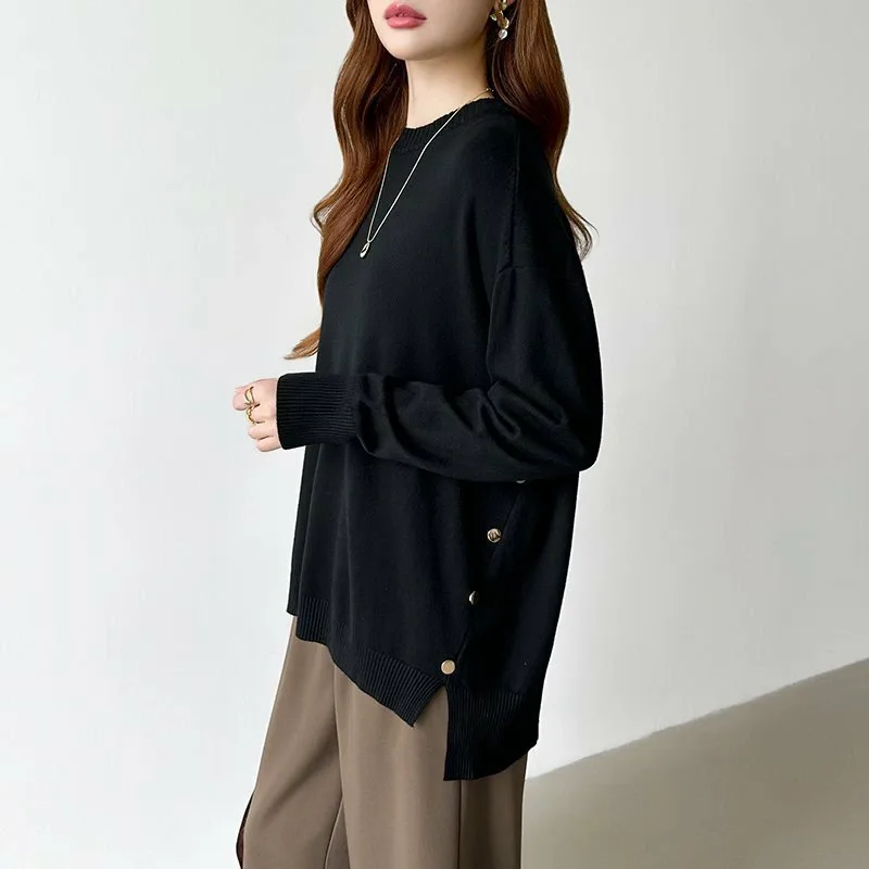Длинный трикотажный свитер свободного силуэта с удлиненной спинкой, которая естественно облегает фигуру.