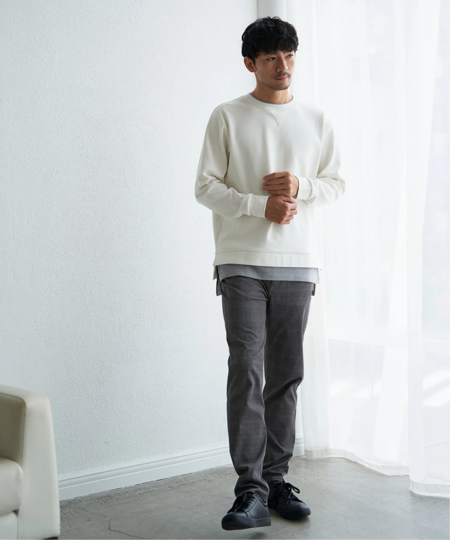 Пуловер из серии "GOKU Raku", обладающий антибактериальными, дезодорирующими и эластичными свойствами.