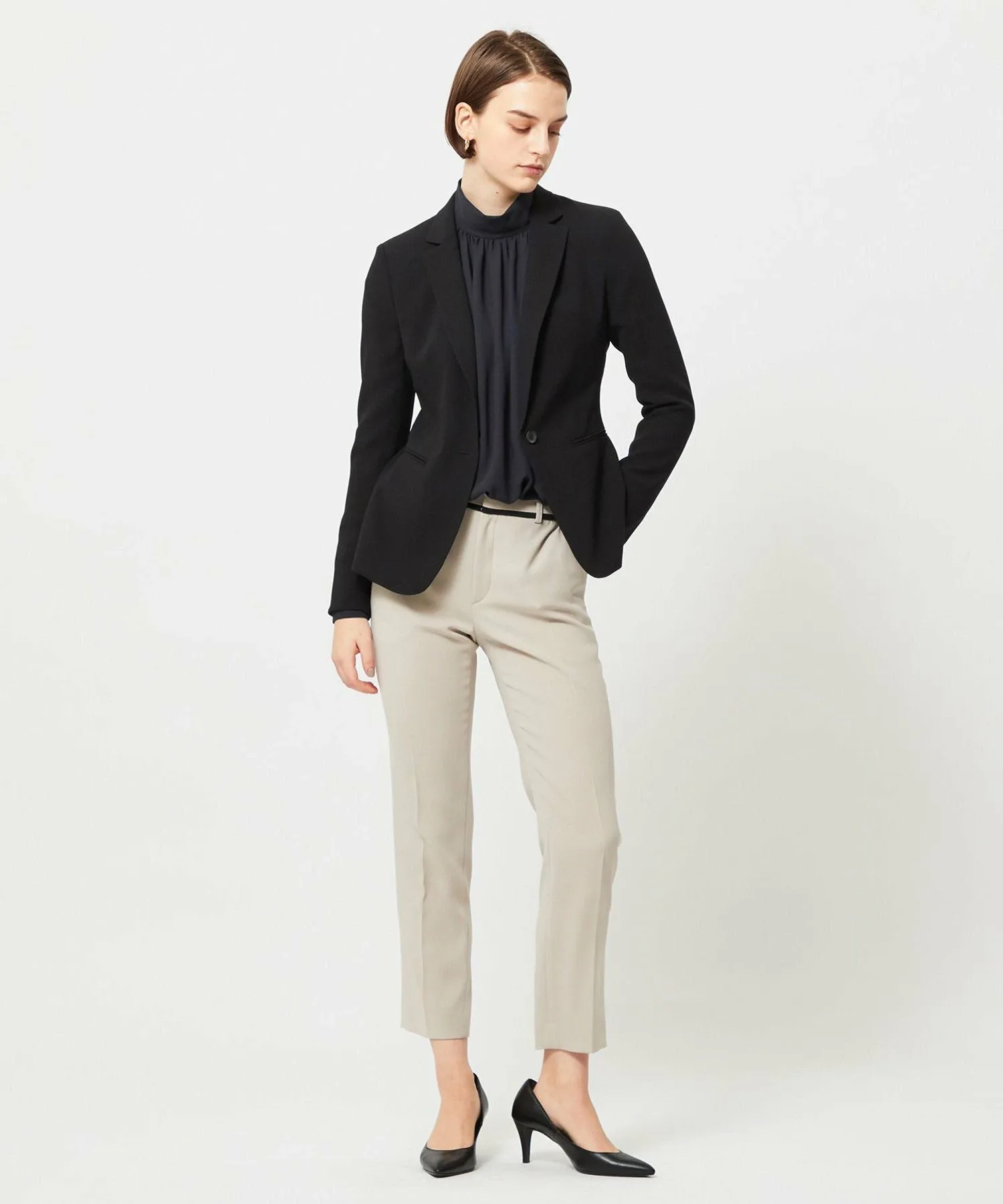 Этот приталенный жакет, ставший визитной карточкой CINDY, выполнен в бежевом цвете. Главная изюминка – узкий воротник, а как и жакет без воротника из того же материала, этот однобортный жакет имеет стильный силуэт спинки, который выгодно подчеркивает фигуру даже в расстегнутом виде. Исключительная эластичность делает его удобным и легким, а узкие рукава-бочонки можно слегка закатать для мягкого и элегантного образа. Сочетайте его с брюками из того же материала для создания костюма, что делает этот жакет универсальным для работы, особых случаев и повседневной носки.