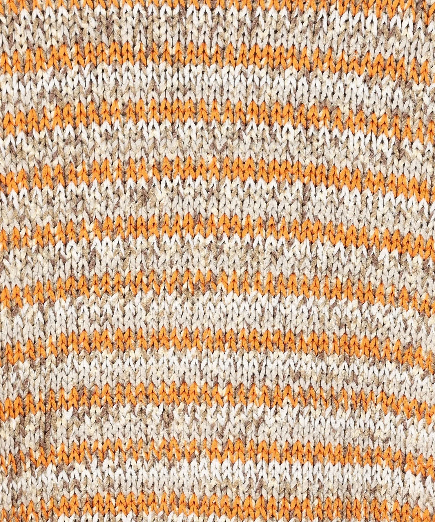 Узор по краю создан из итальянской пряжи, полученной путем разрыва многоцветного полосатого трикотажа на тонкие полоски и обработки их в ленты.