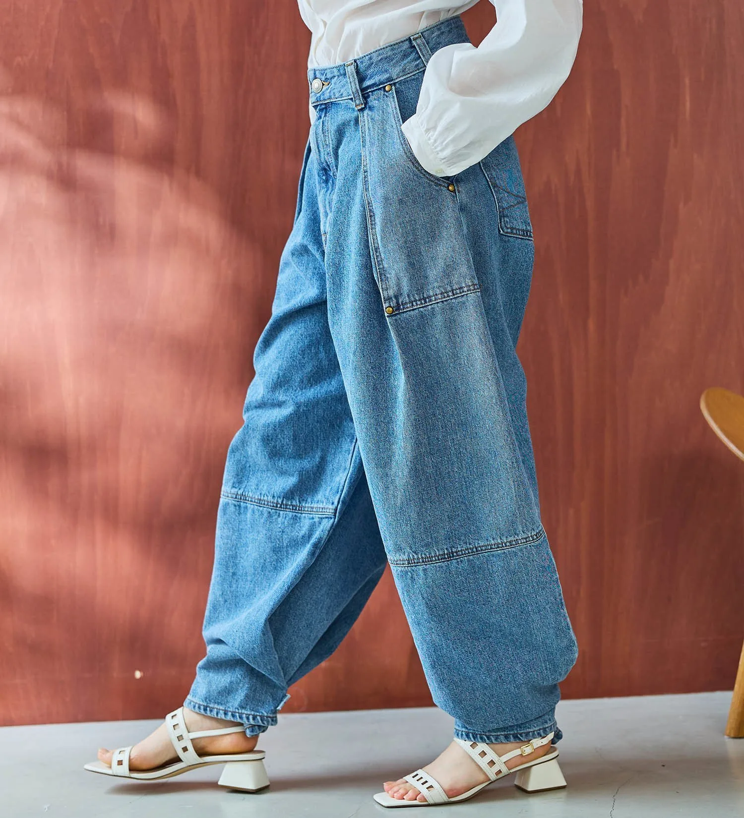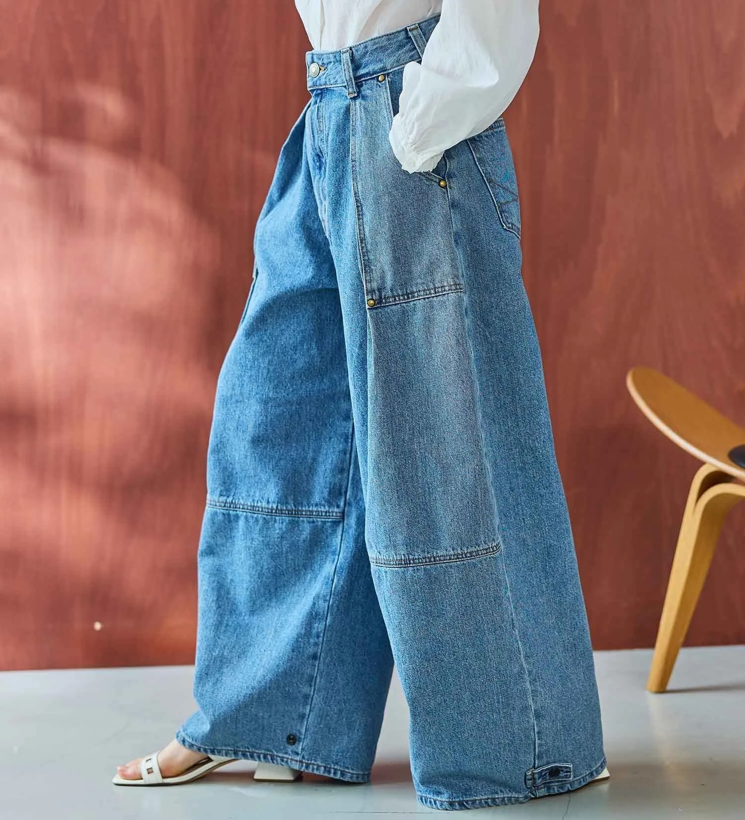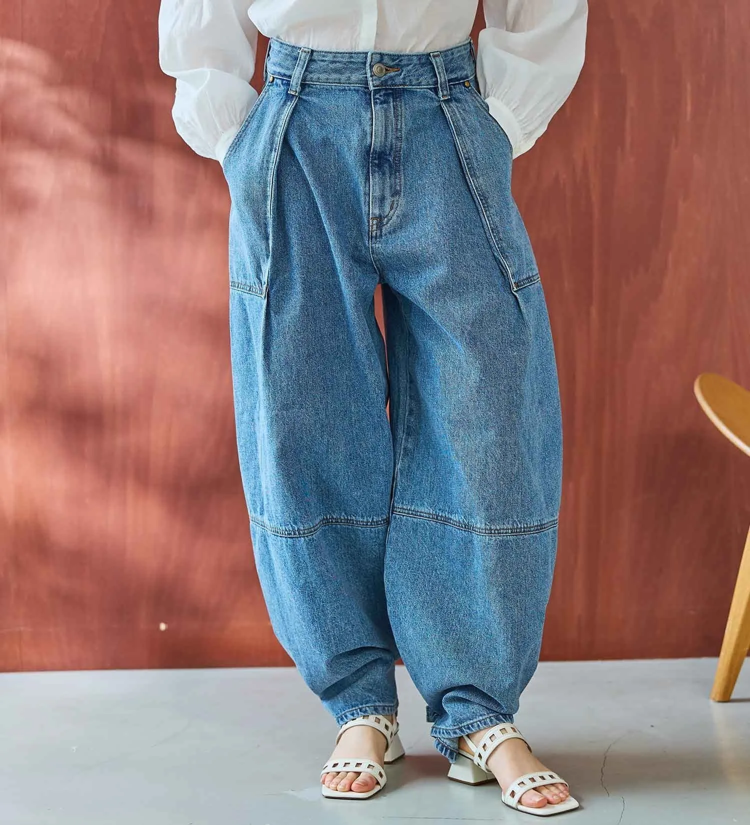 Главная особенность этих брюк — их универсальность. Заужая подол, вы можете создать совершенно разные силуэты. Свободный силуэт «баллон» подчеркивает непринужденность, а заужив подол, вы можете создать более выразительный силуэт для более утонченного образа. Эта универсальная вещь может носиться двумя разными способами.
