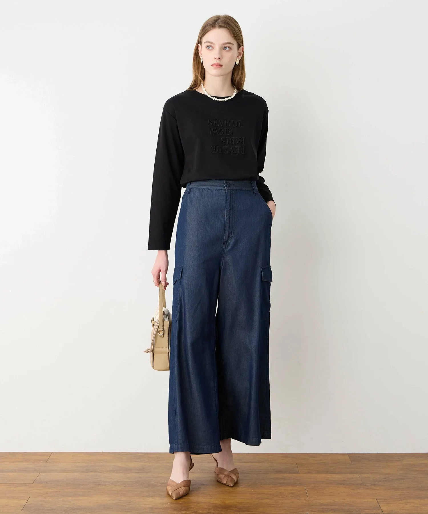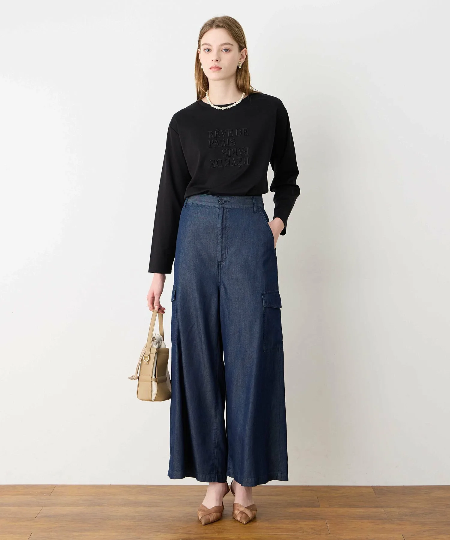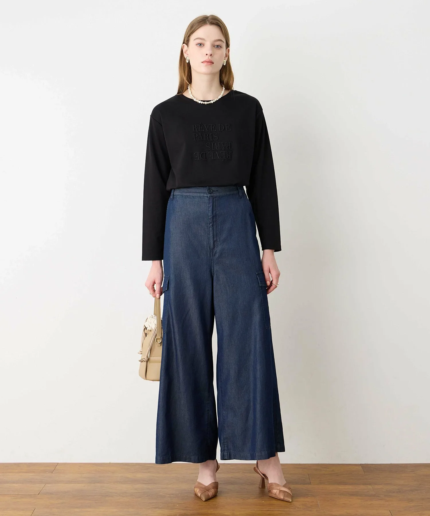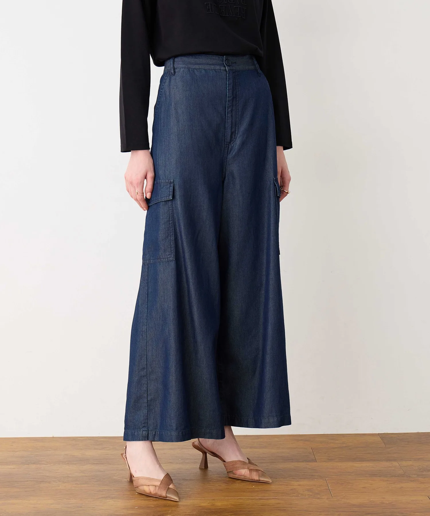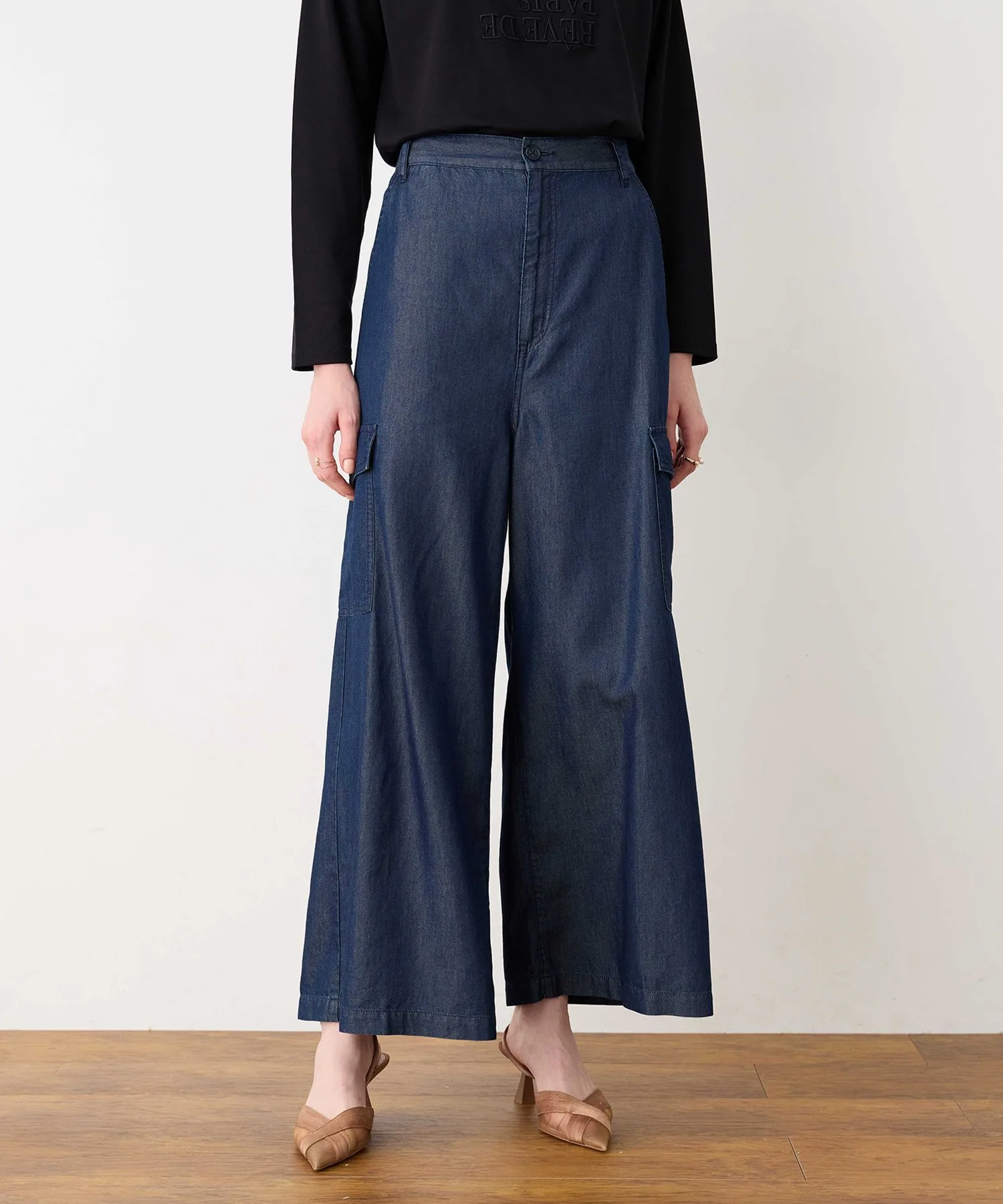 Главная особенность – широкий силуэт со струящимся низом, который не подчеркивает линии ног.