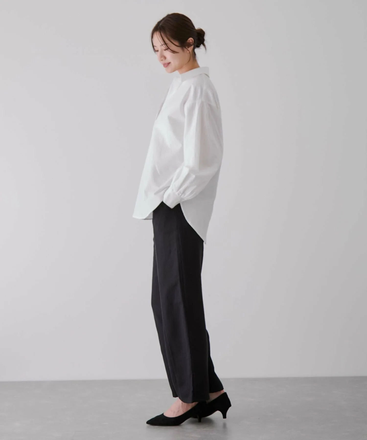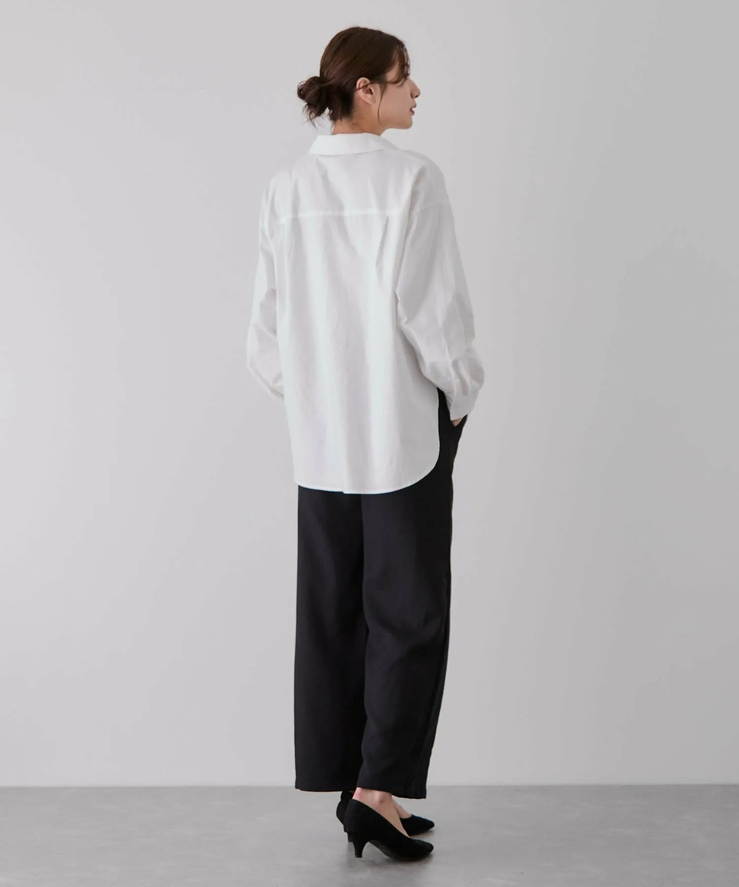 - Заправив только переднюю часть в зауженные брюки, вы создадите элегантный образ для поездок на работу.