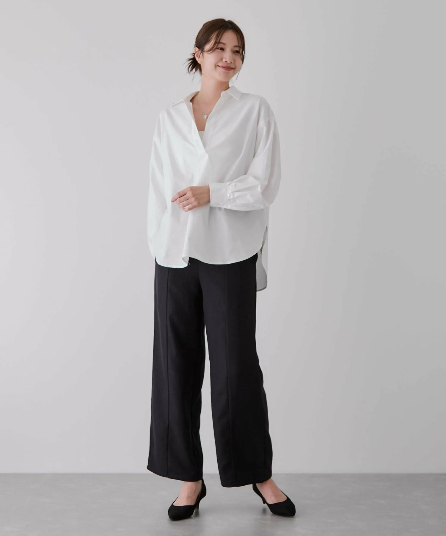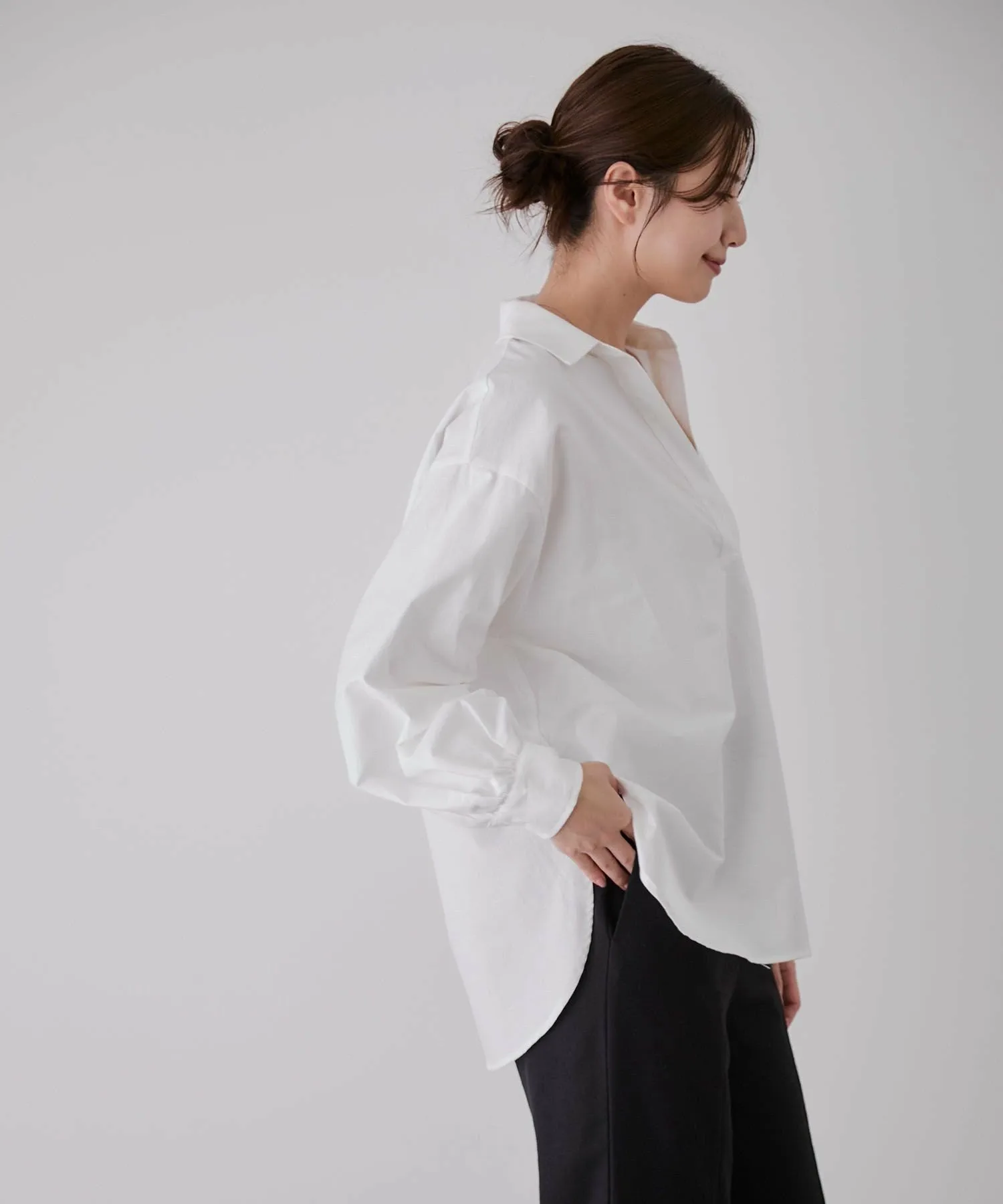 - Закругленный нижний край с разницей между передней и задней частью добавляет легкости и воздушности, не создавая ощущения тяжести при ношении навыпуск.