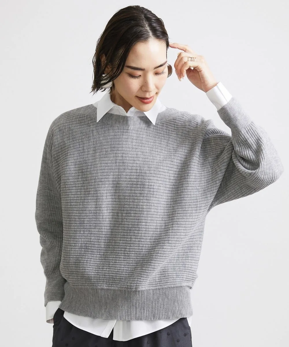 Пуловер с рукавами «летучая мышь» и горизонтальной ребристой отделкой. Эта популярная модель была переработана в шерстяном варианте. Ребристая отделка на манжетах и подоле создает привлекательный силуэт. Умеренный вырез «лодочка» создает аккуратный, обтекаемый вид вокруг шеи. Горизонтальная ребристая отделка сохраняет свою текстуру и обеспечивает удобную, нескользящую посадку. Рукава «летучая мышь» сбалансированы таким образом, чтобы их было легко заправить под пальто, даже если носить с длинными рукавами.