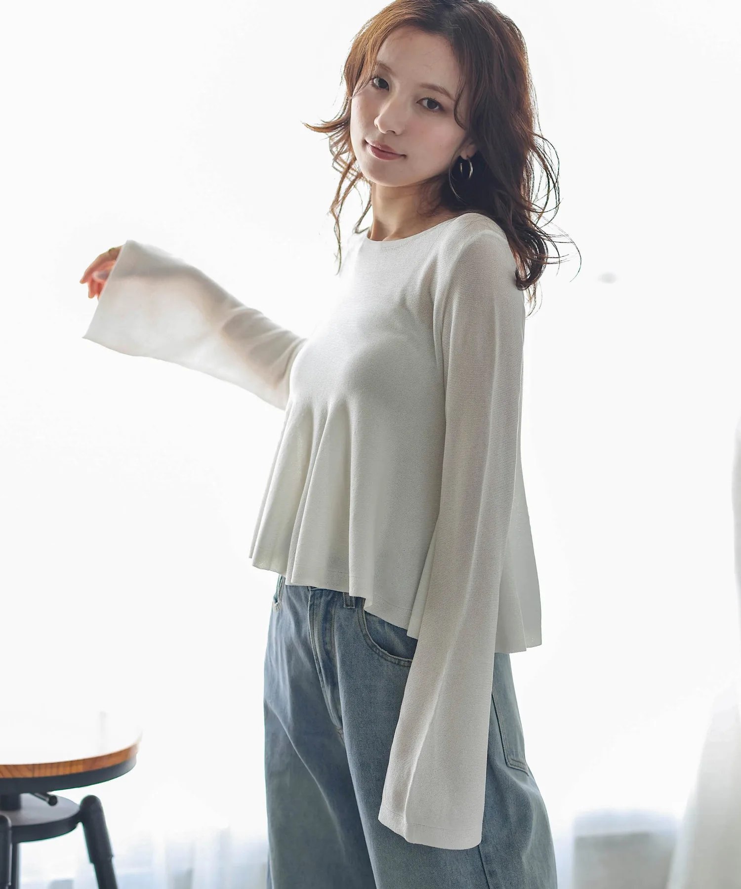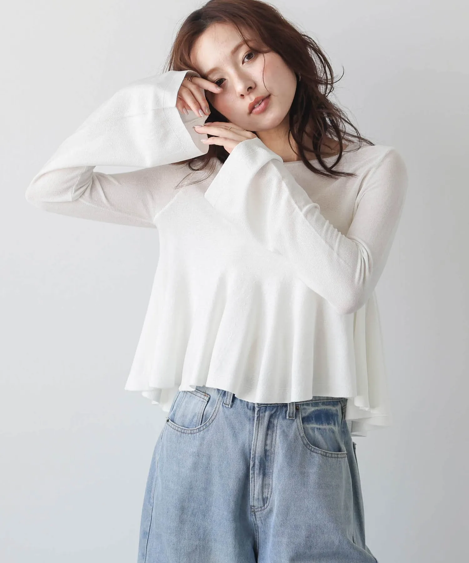 Прозрачный трикотаж с расклешенной юбкой, подчеркивающий женственность