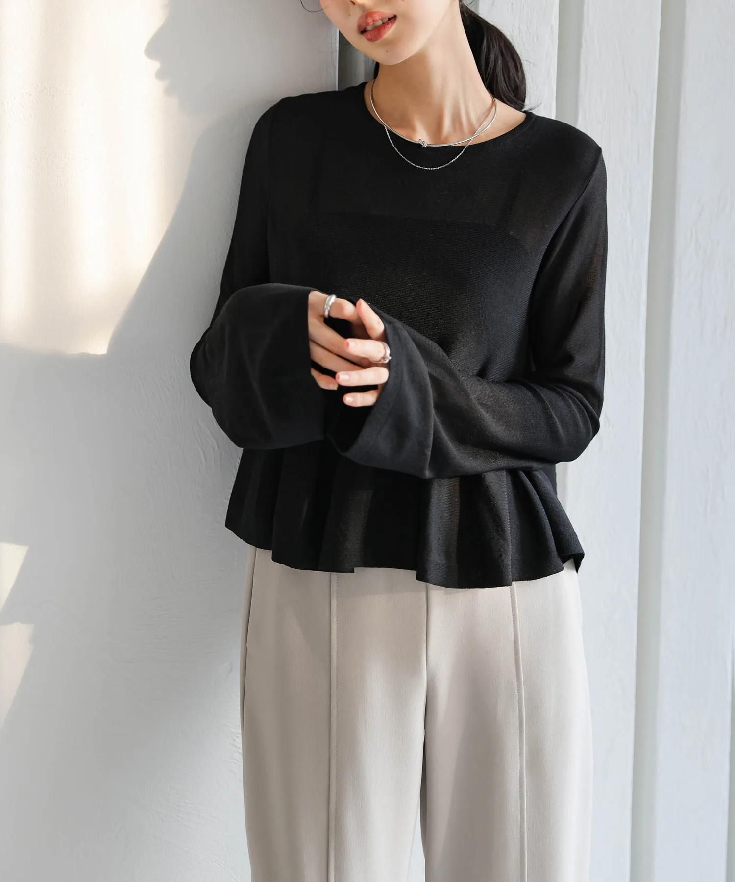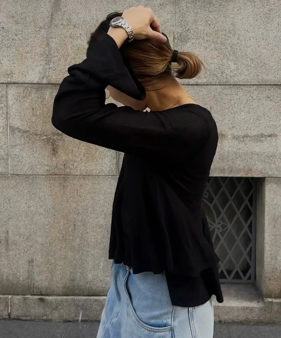 Благодаря оптимальной степени прозрачности и воздушности, этот трикотажный топ можно носить как повседневную футболку.
