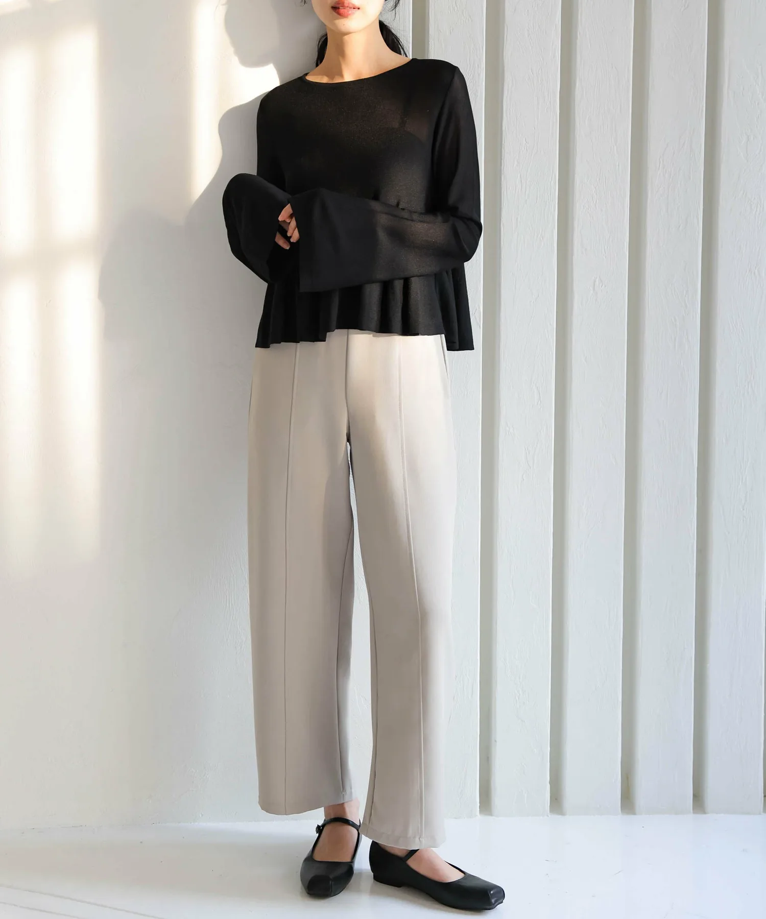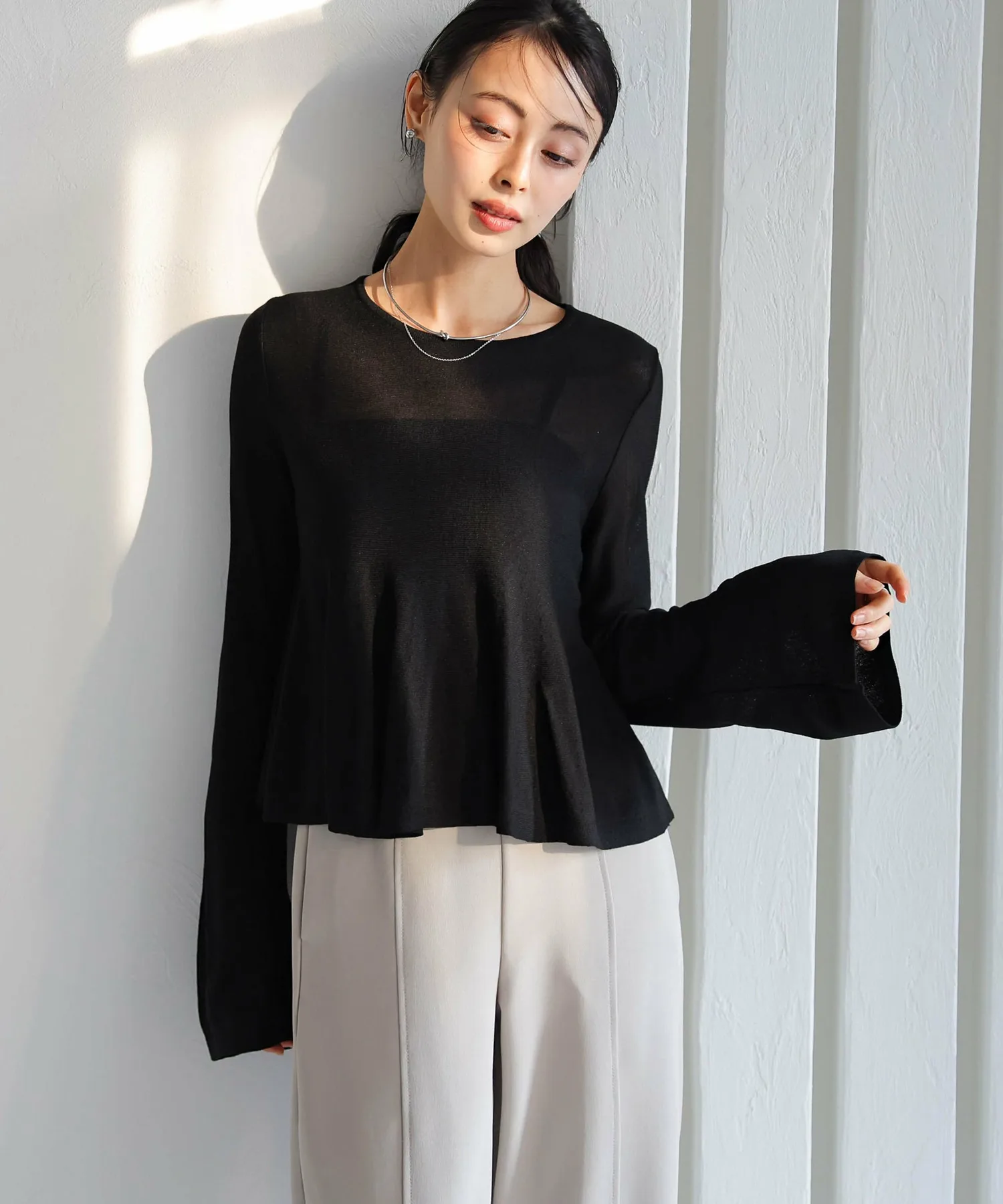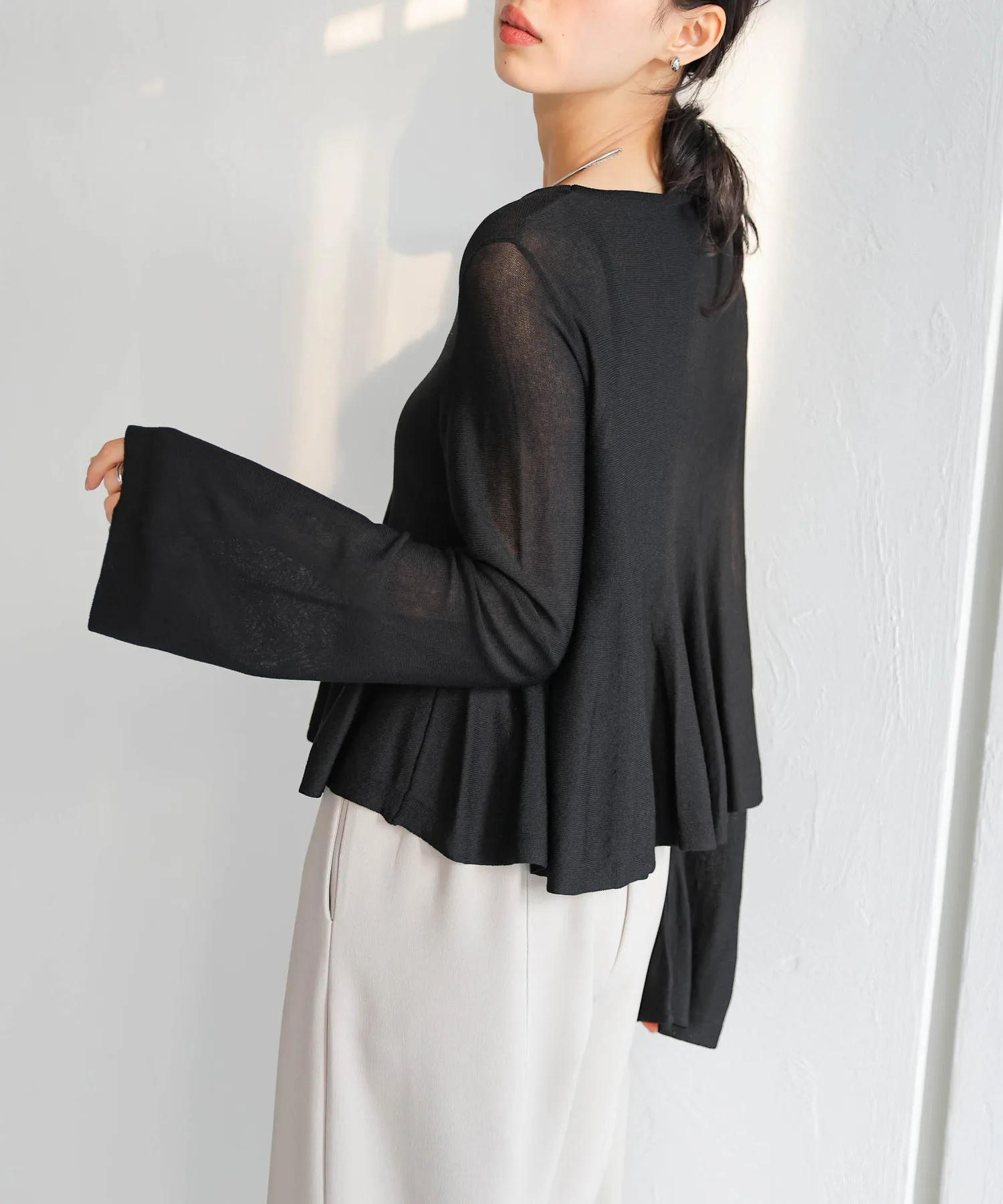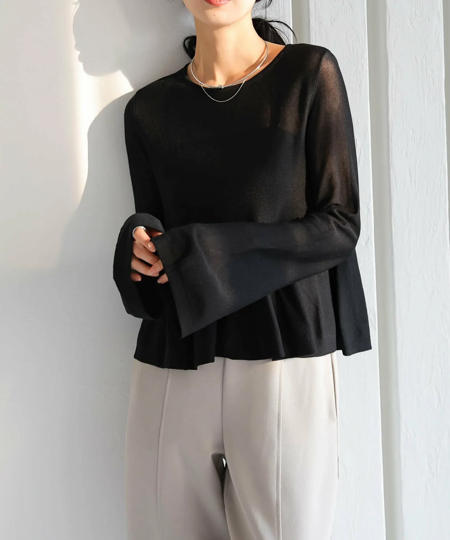 Прозрачный трикотаж с расклешенной юбкой, подчеркивающий женственность