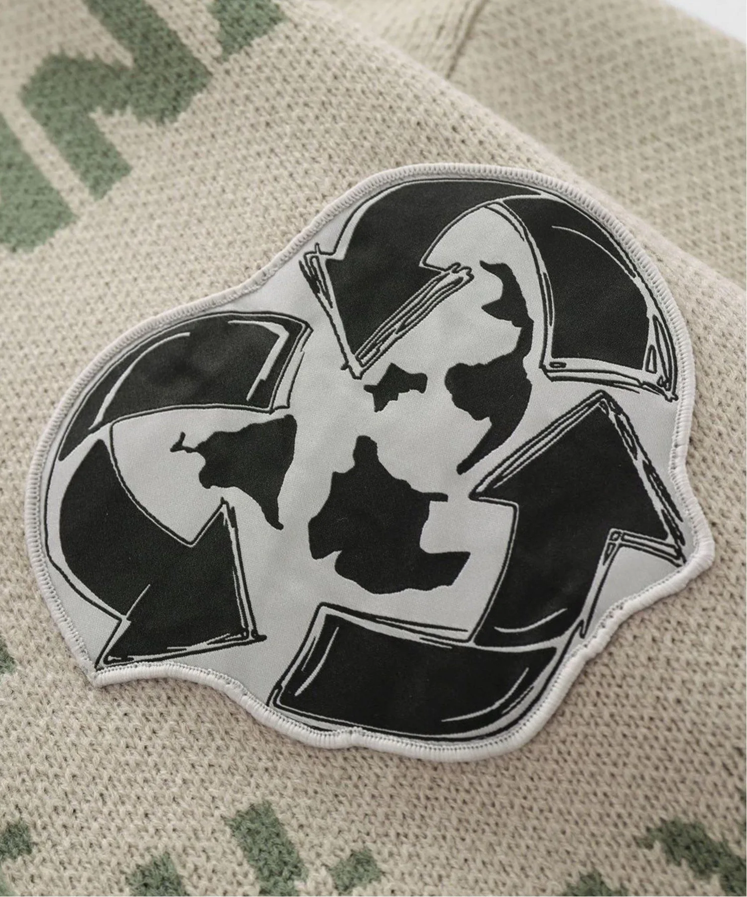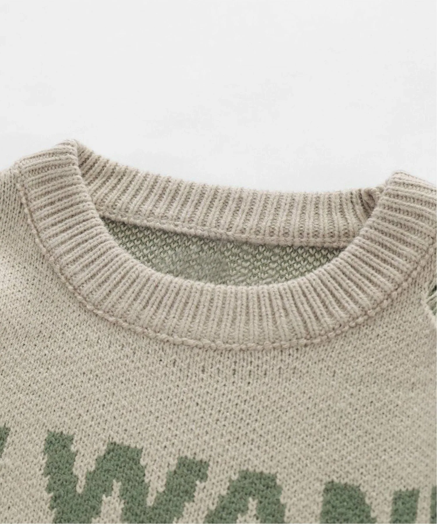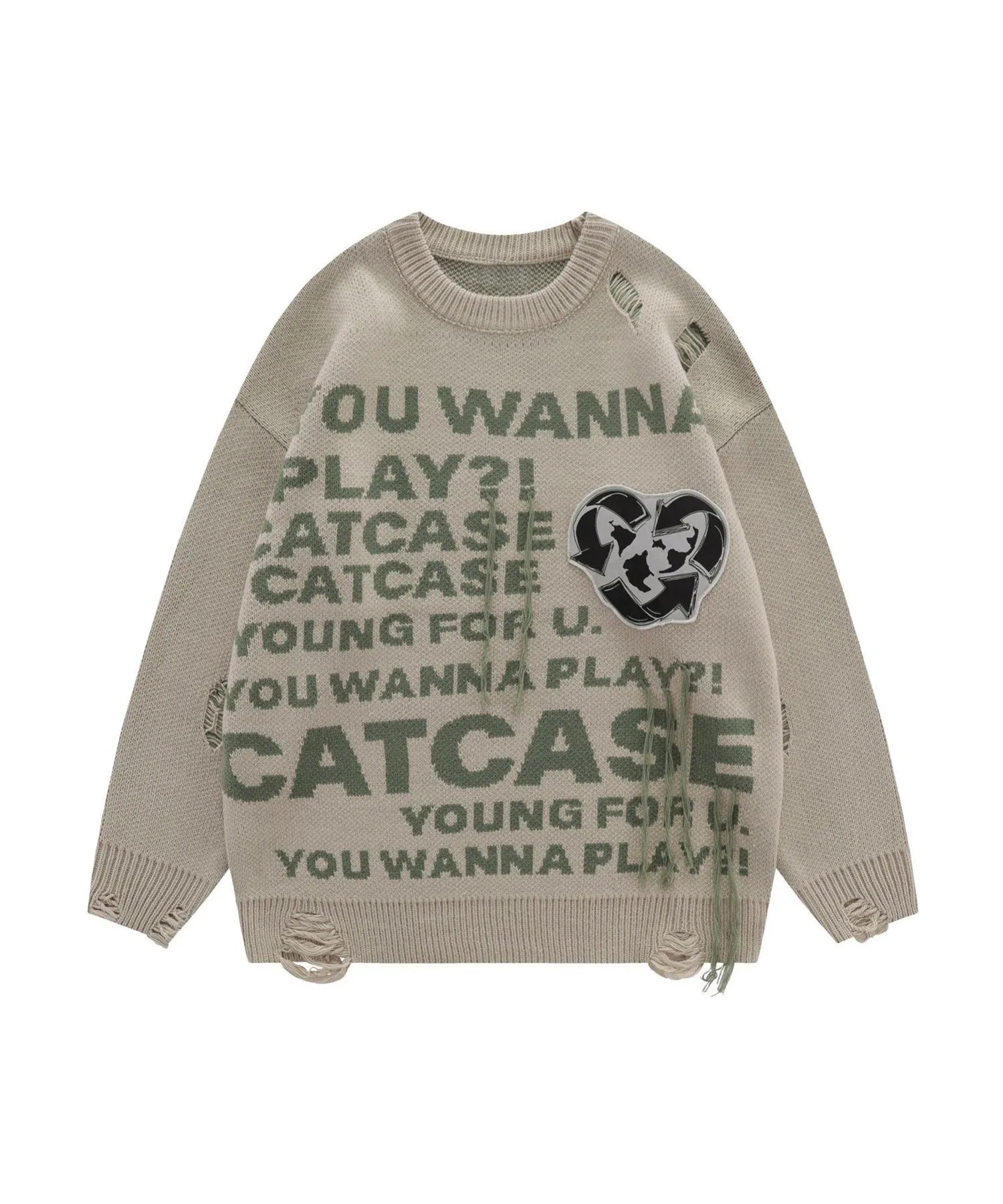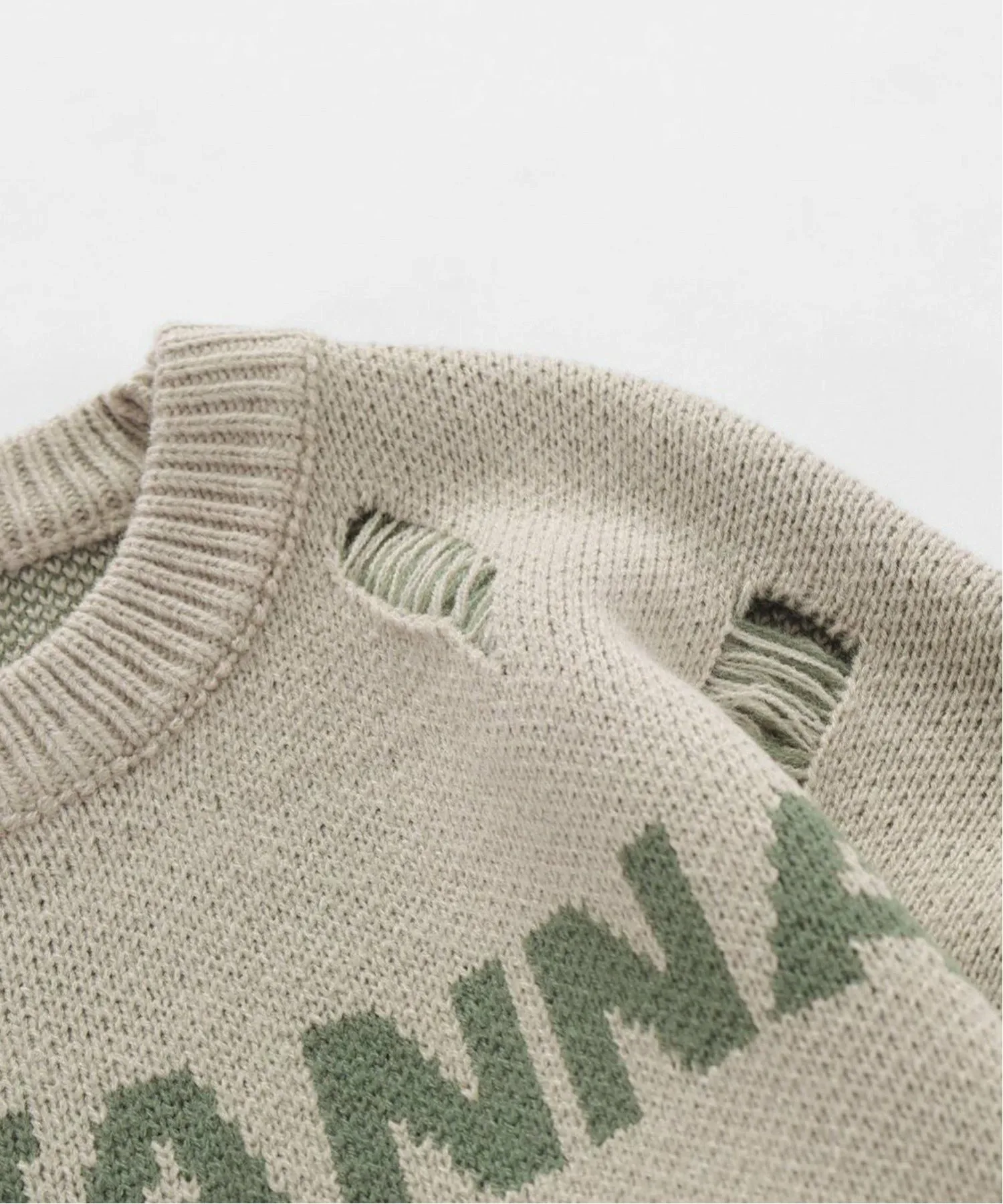 Вязаный пуловер с английским рисунком на передней части, нашивкой на груди и эффектом потертости по всей поверхности.