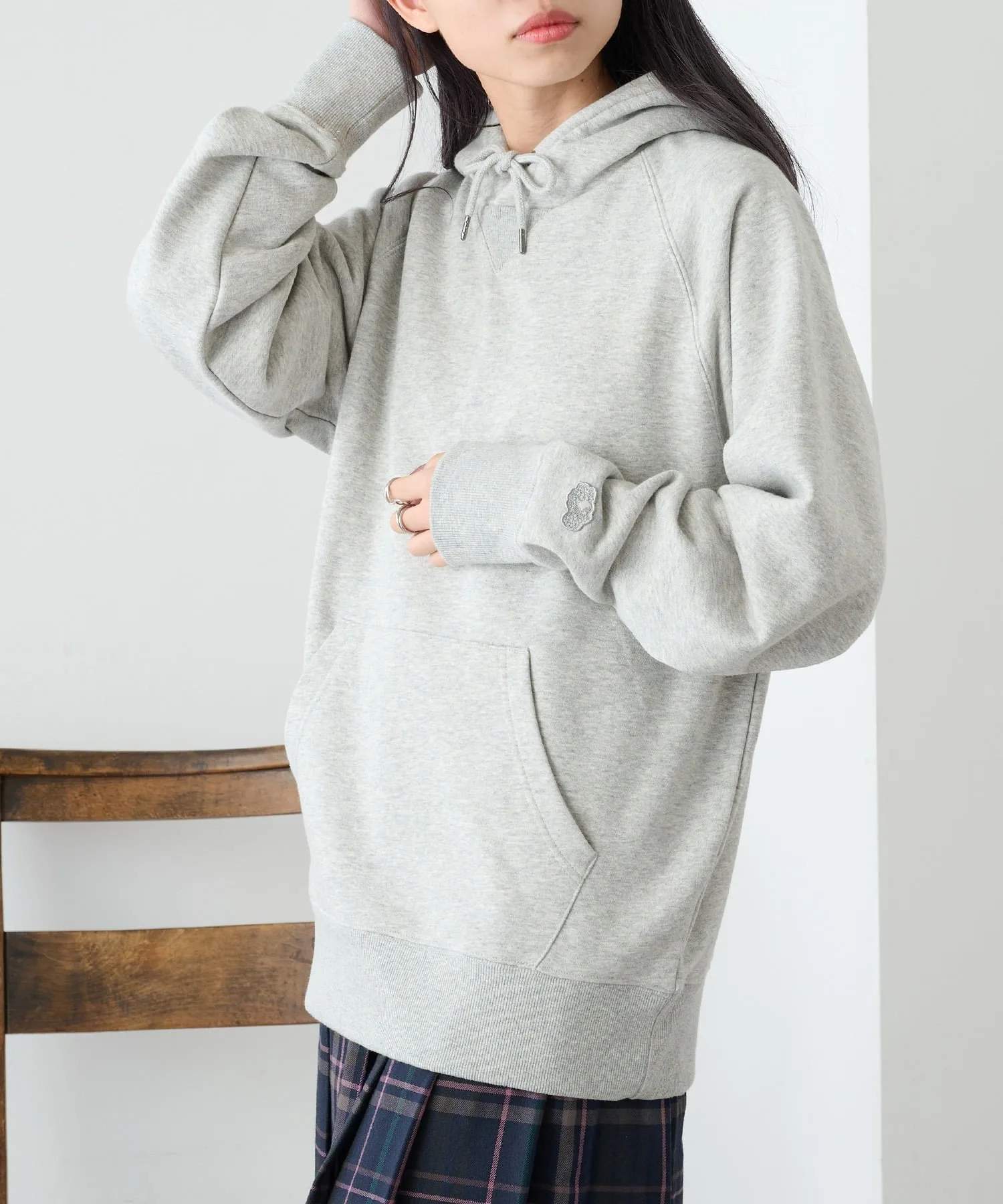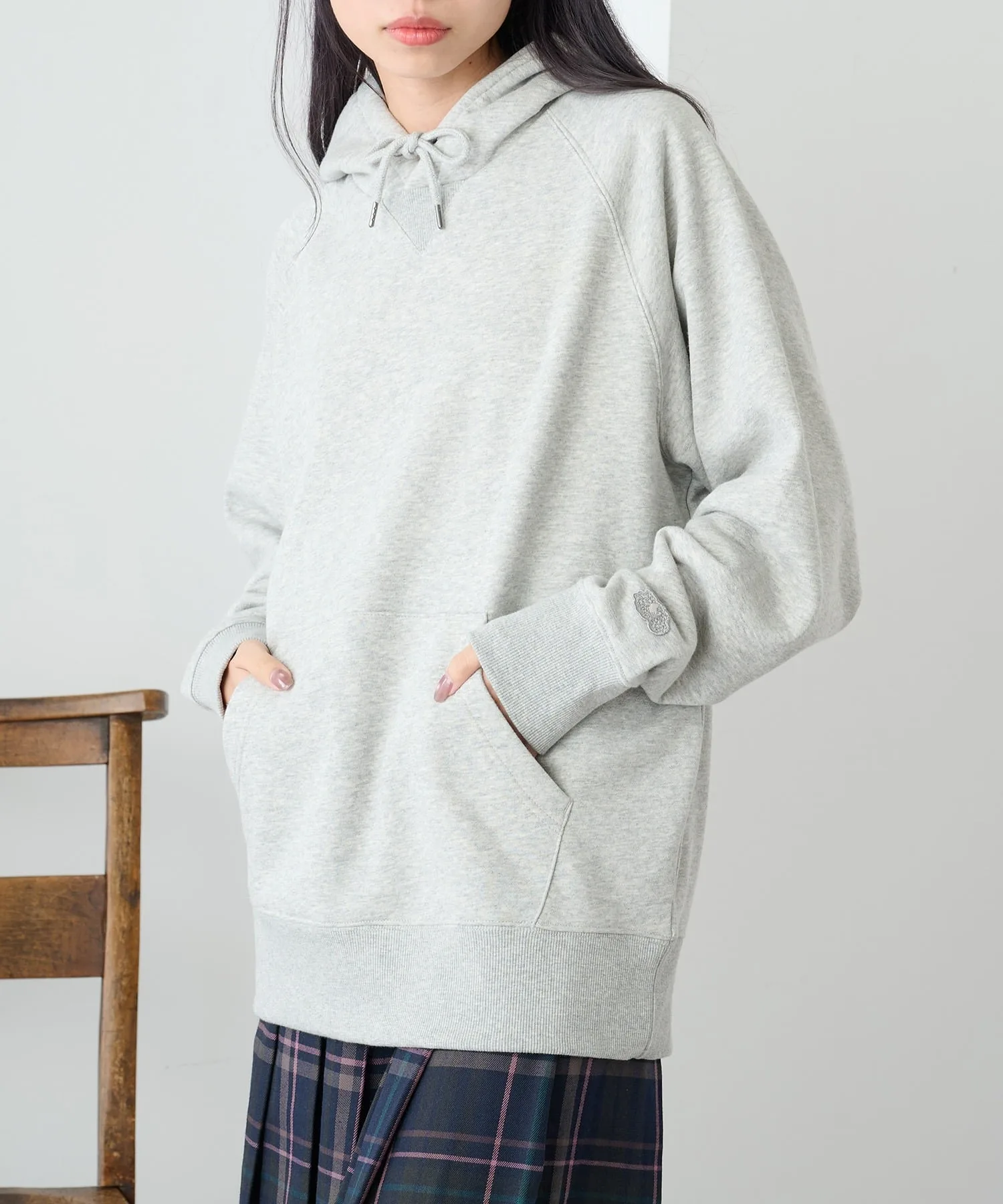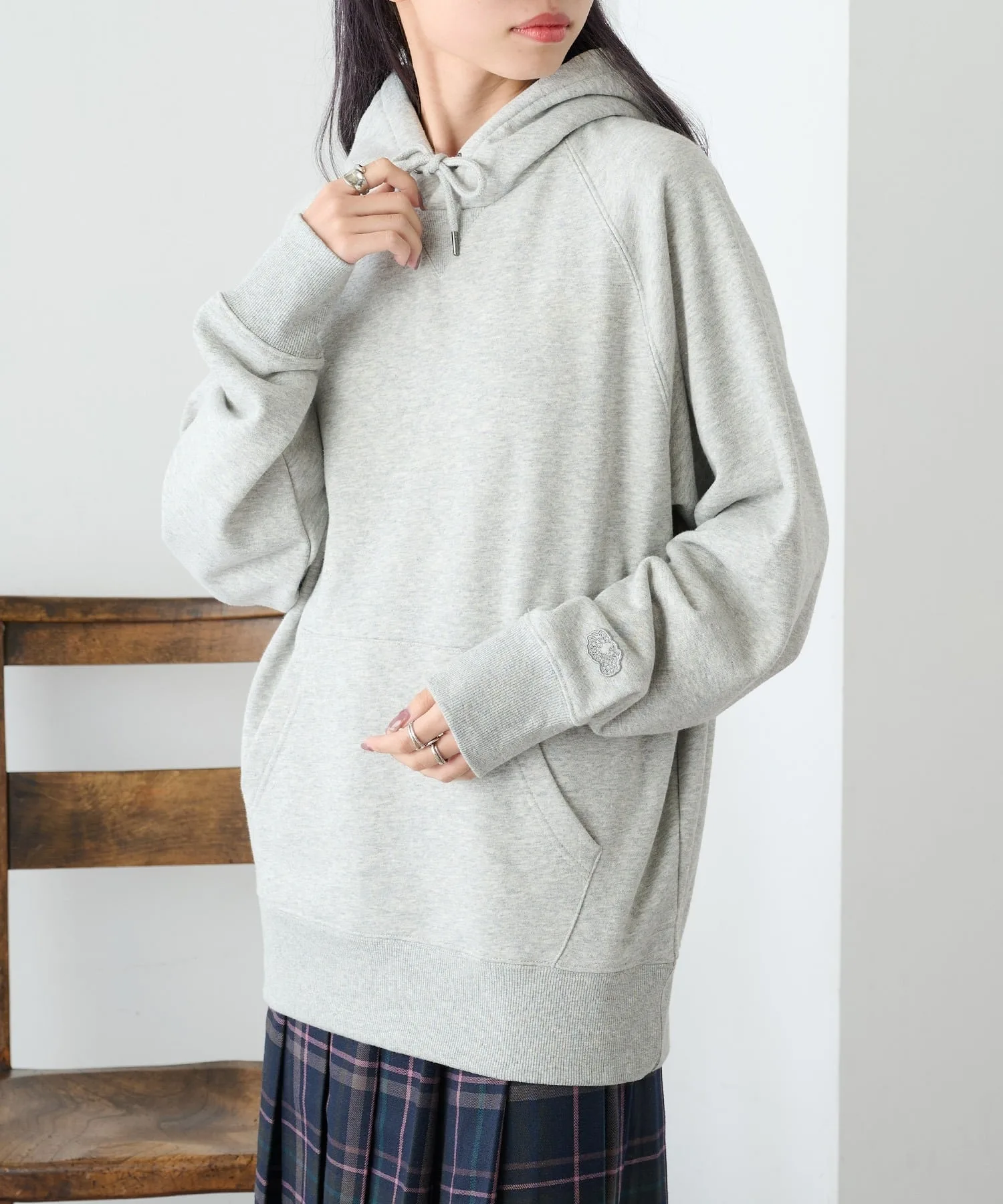 Сочетание・Сочетайте ее с простыми джинсами и белыми кроссовками для непринужденного повседневного образа. ・Сочетайте его с брюками на флисовой подкладке для создания расслабленного, непринужденного образа. ・Легко создайте спортивный образ для выхода в свет, добавив кепку и спортивные брюки. ・В дни, когда вы хотите добавить немного цвета, сочетайте его с брюками приглушенного цвета для создания изысканного образа, где худи является центральным элементом.