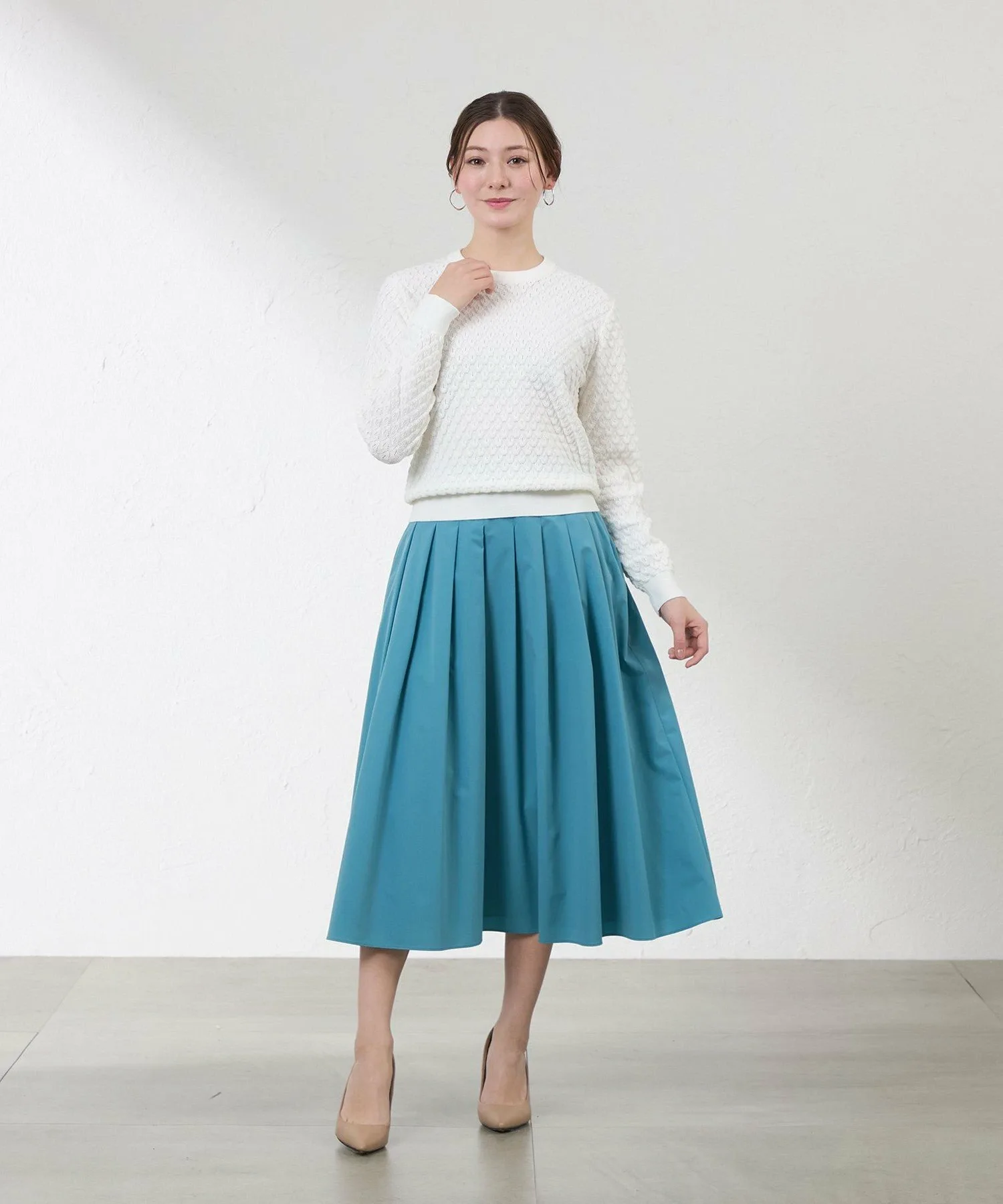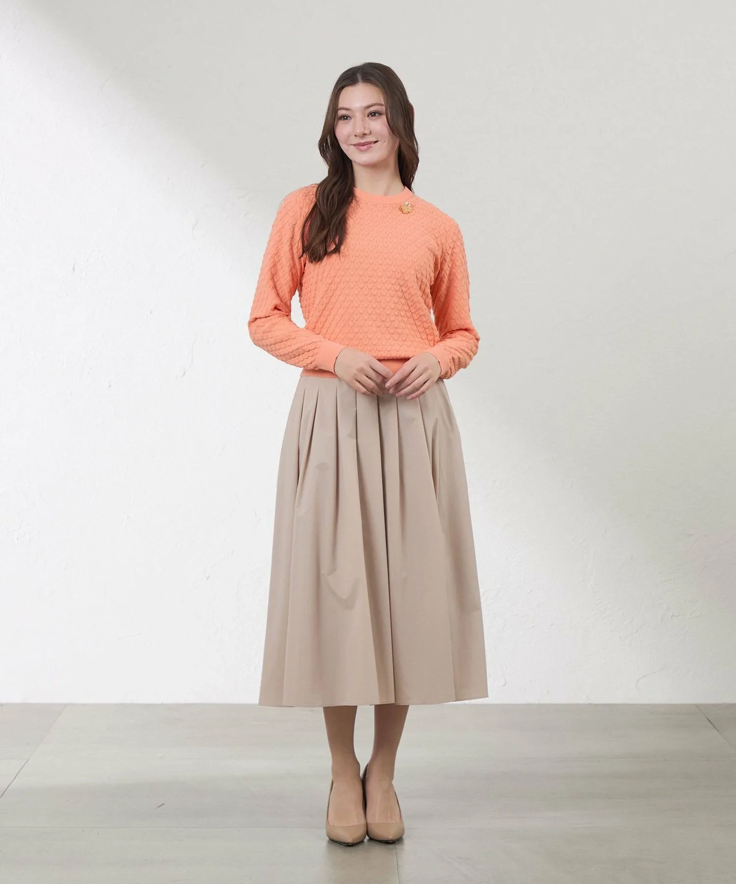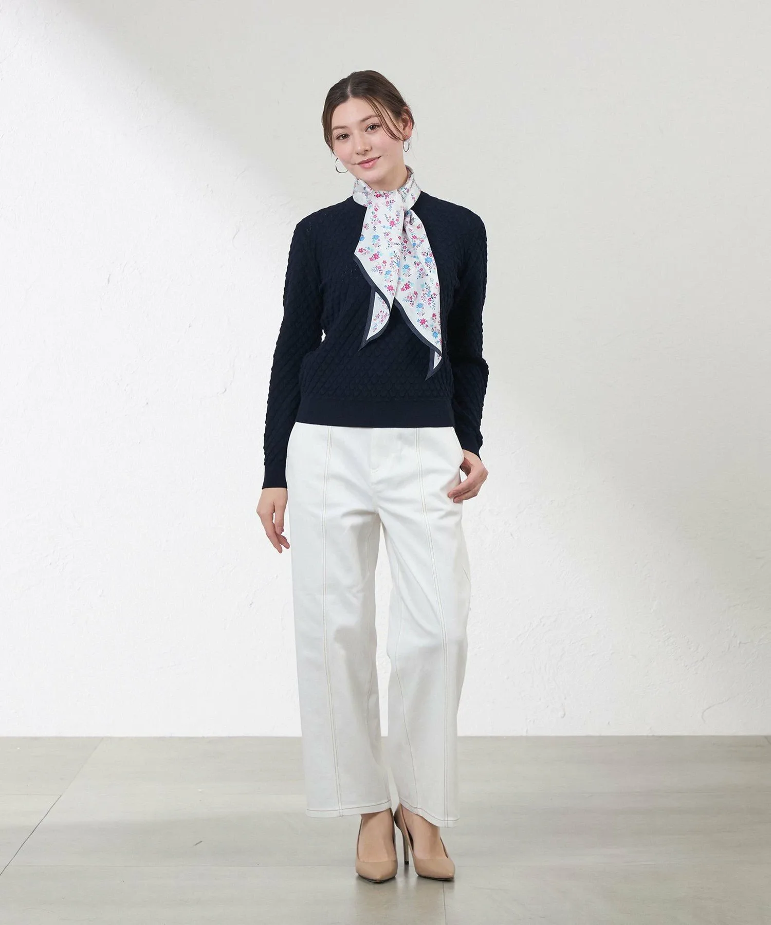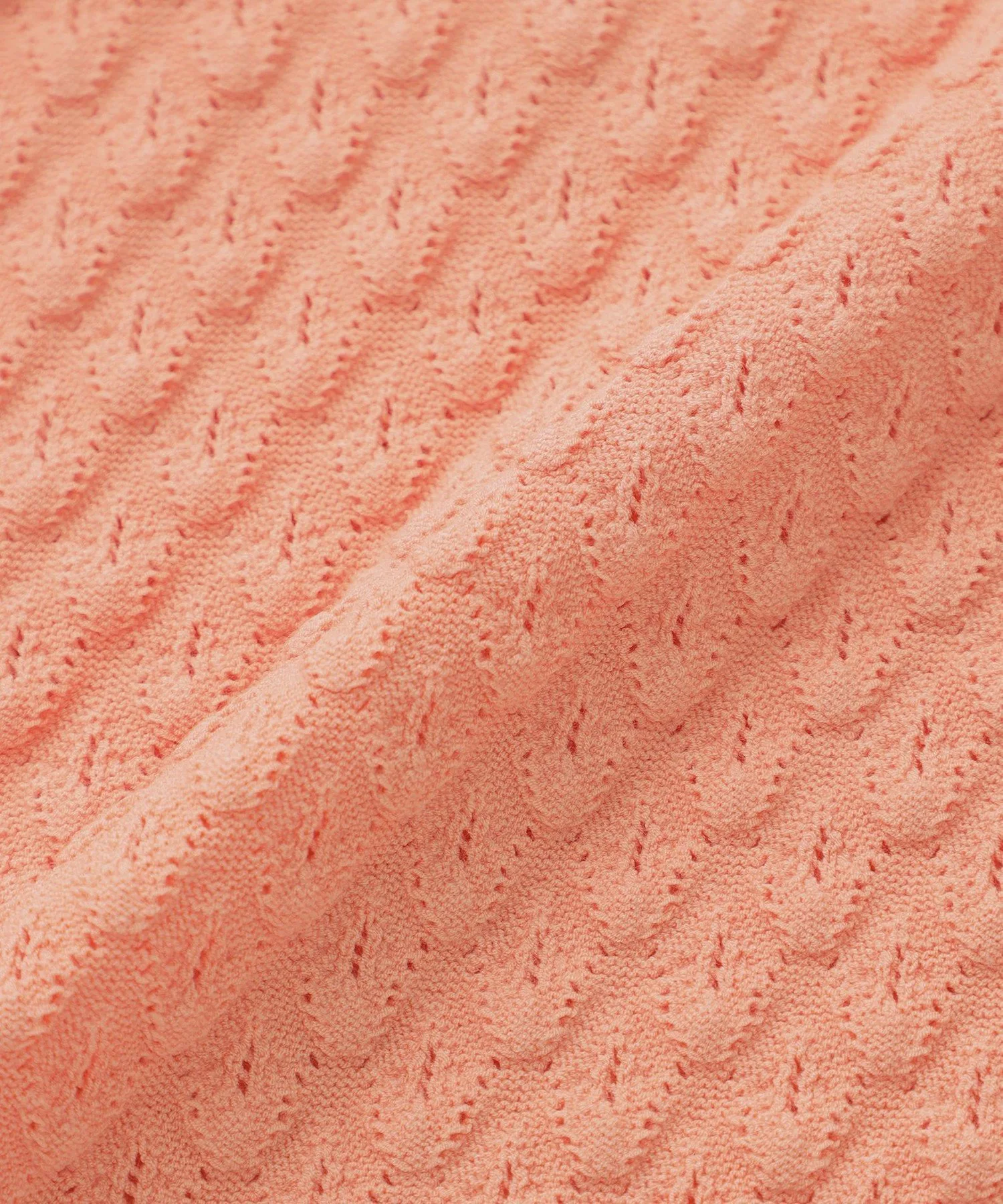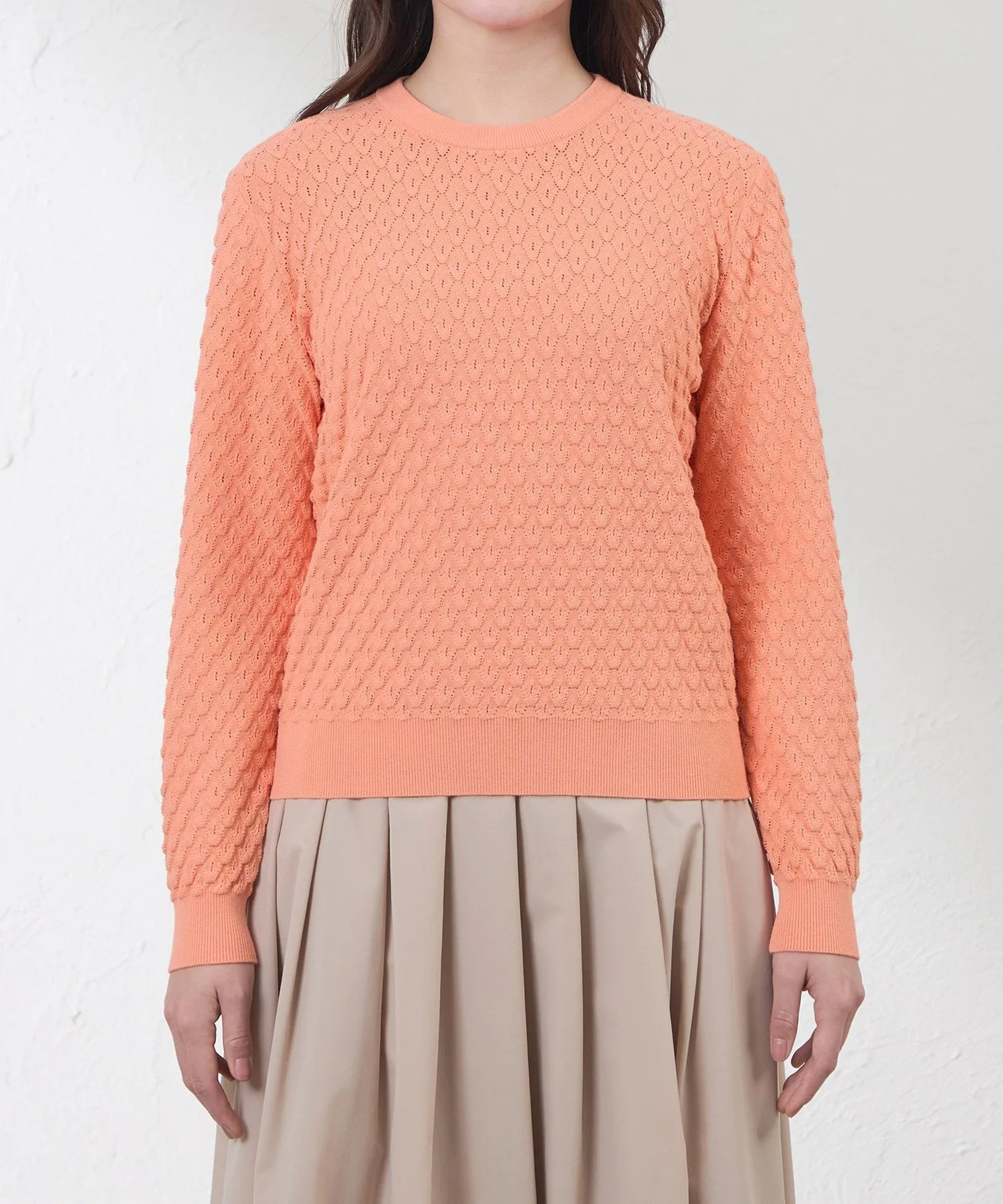 Пуловер свободного кроя с круглым вырезом и нежным кружевным узором, напоминающим ракушки.