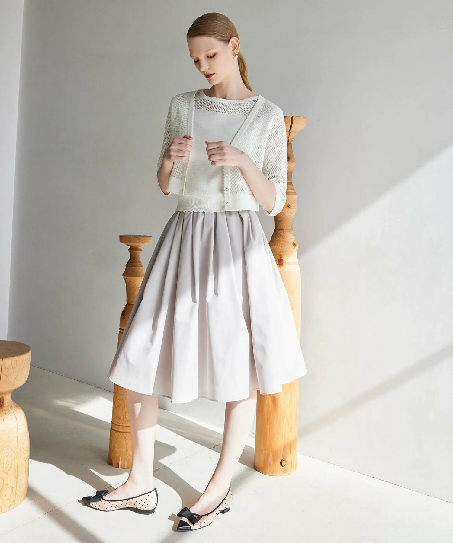Название STARLET означает «маленькая звезда». Эта юбка — базовая вещь TOCCA, отличающаяся простым и универсальным дизайном. Она идеально сочетается с топами TOCCA. Умеренная плотность и объем создают гламурный образ. Основной материал, гросгрейн, имеет тонкий узор с каймой, что придает ему элегантность. Доступна в приглушенных цветах, также рекомендуется для поездок на работу. Эластичный пояс сзади обеспечивает комфорт и плотное прилегание, создавая привлекательный силуэт.