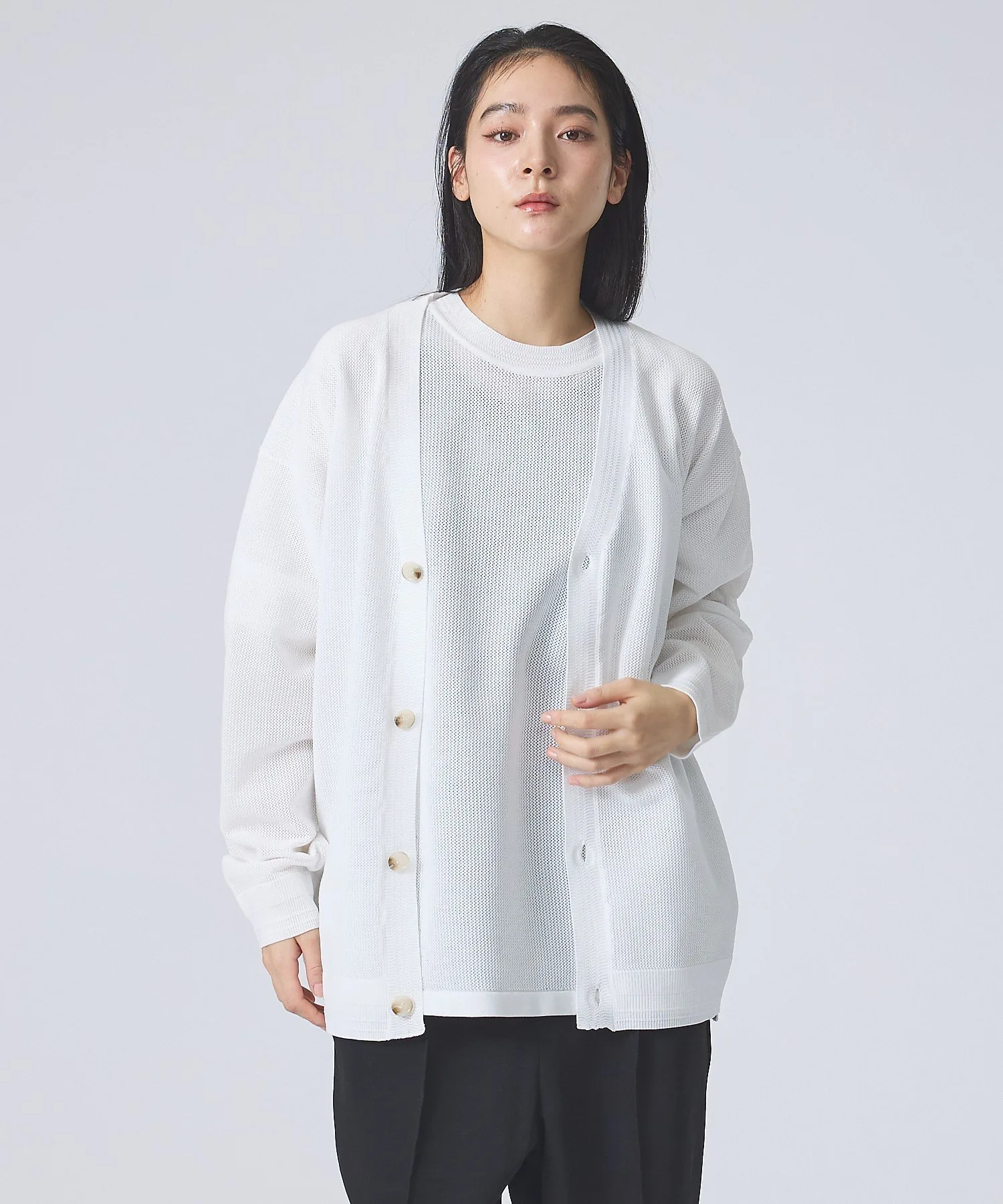 Этот ультралегкий кардиган с высокой сетчатой структурой изготовлен из трикотажной пряжи ECOTEC.