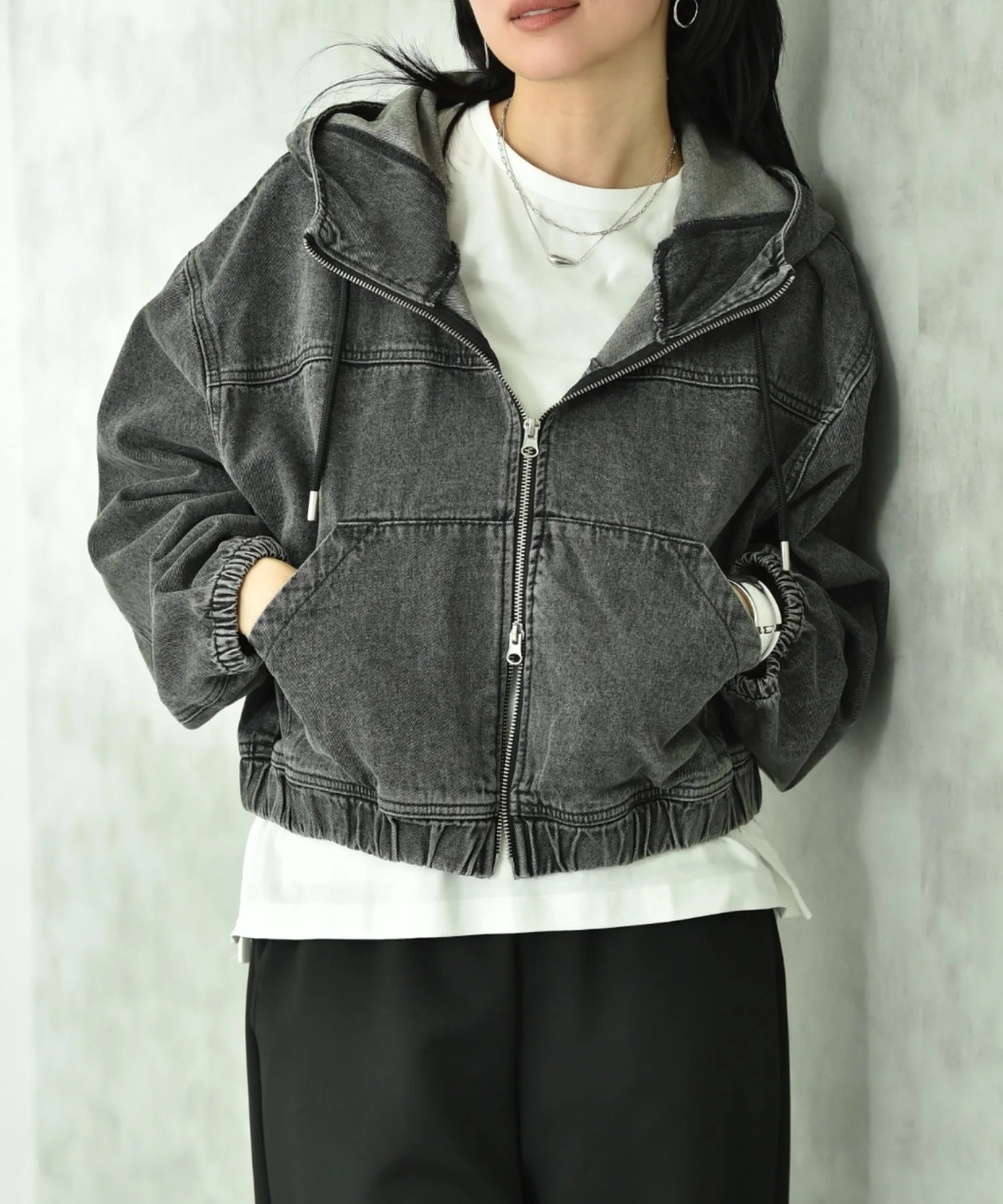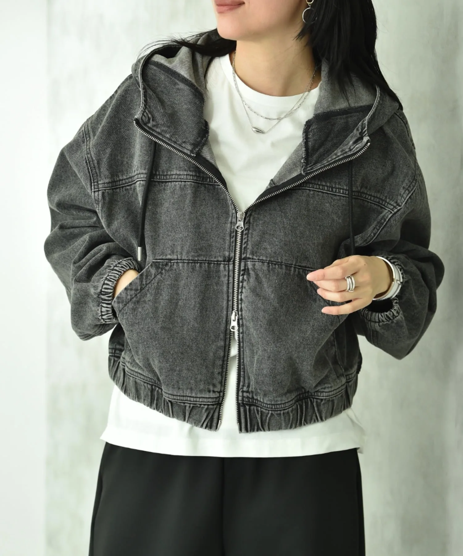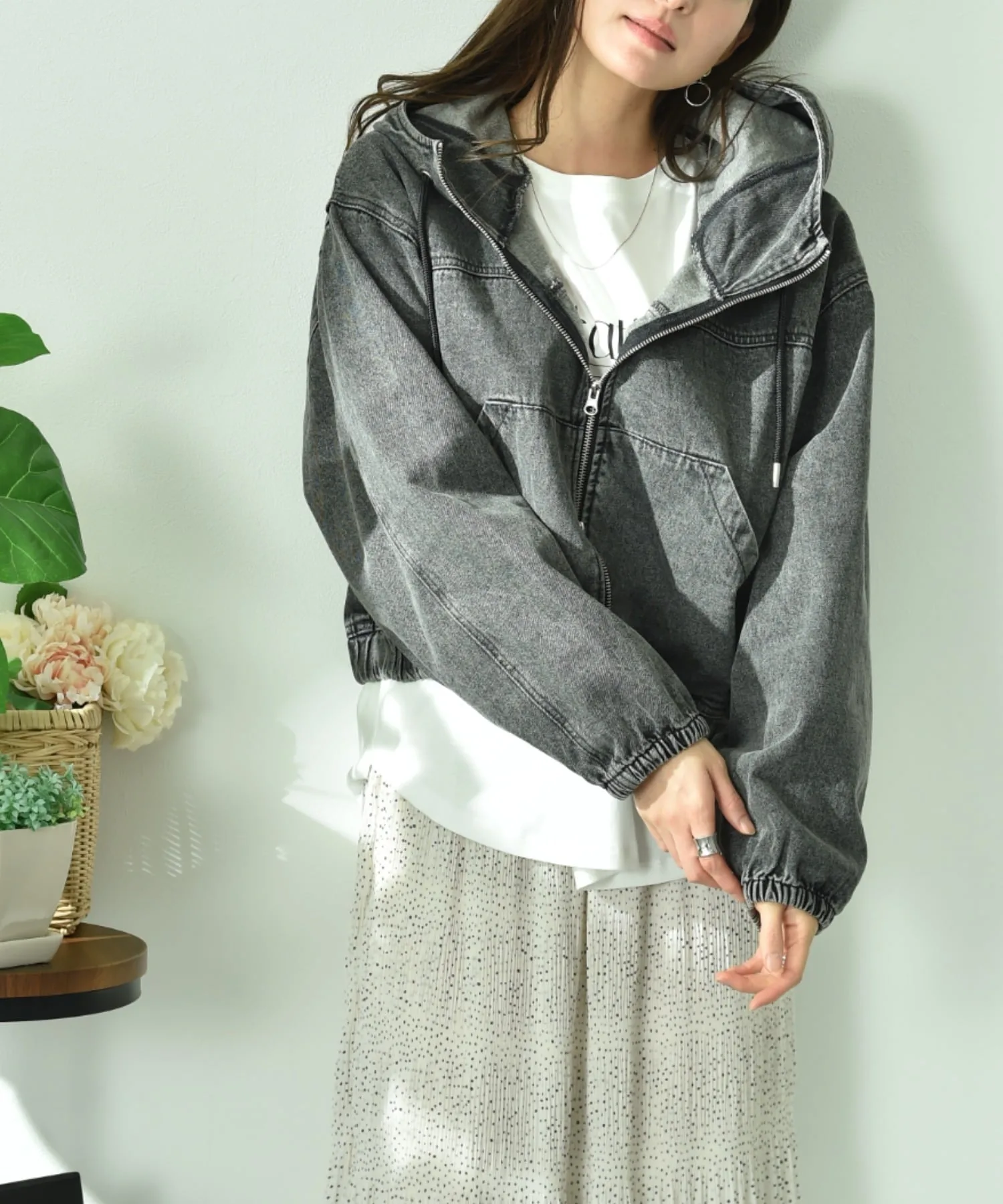 Блузон с капюшоном из выстиранного денима, создающий изысканный образ.