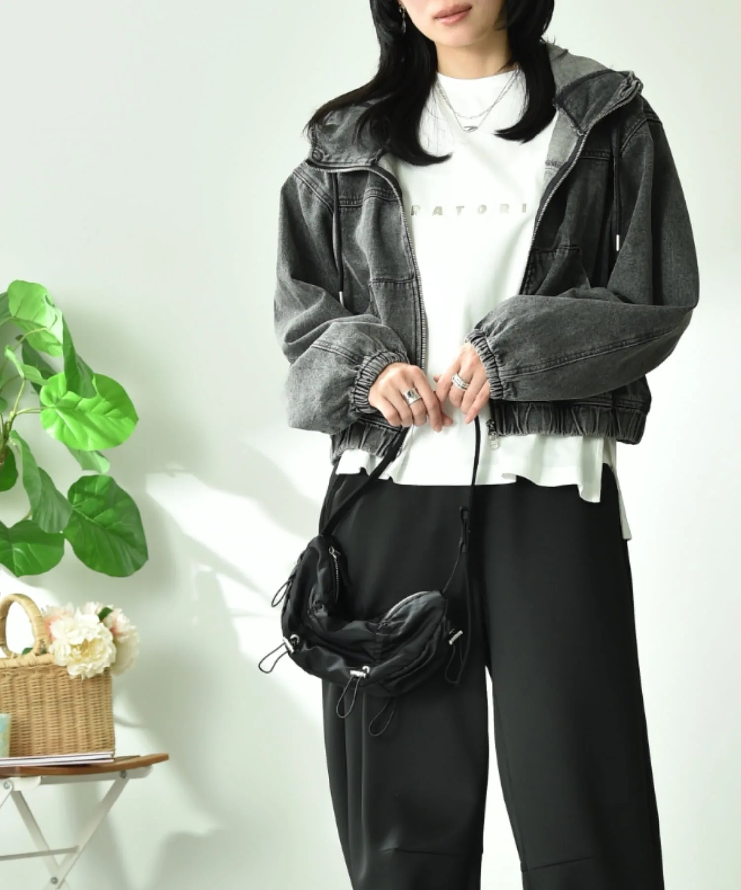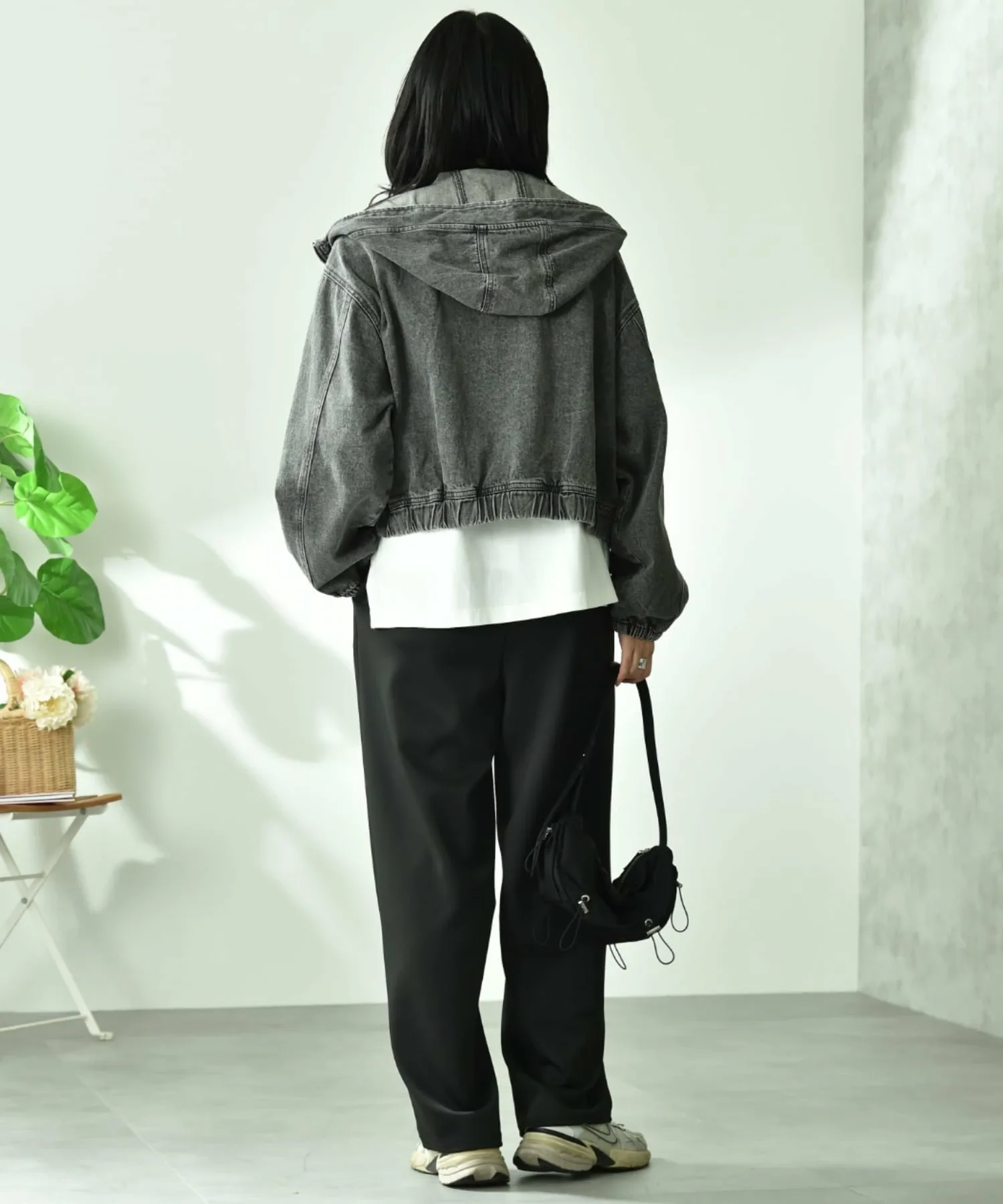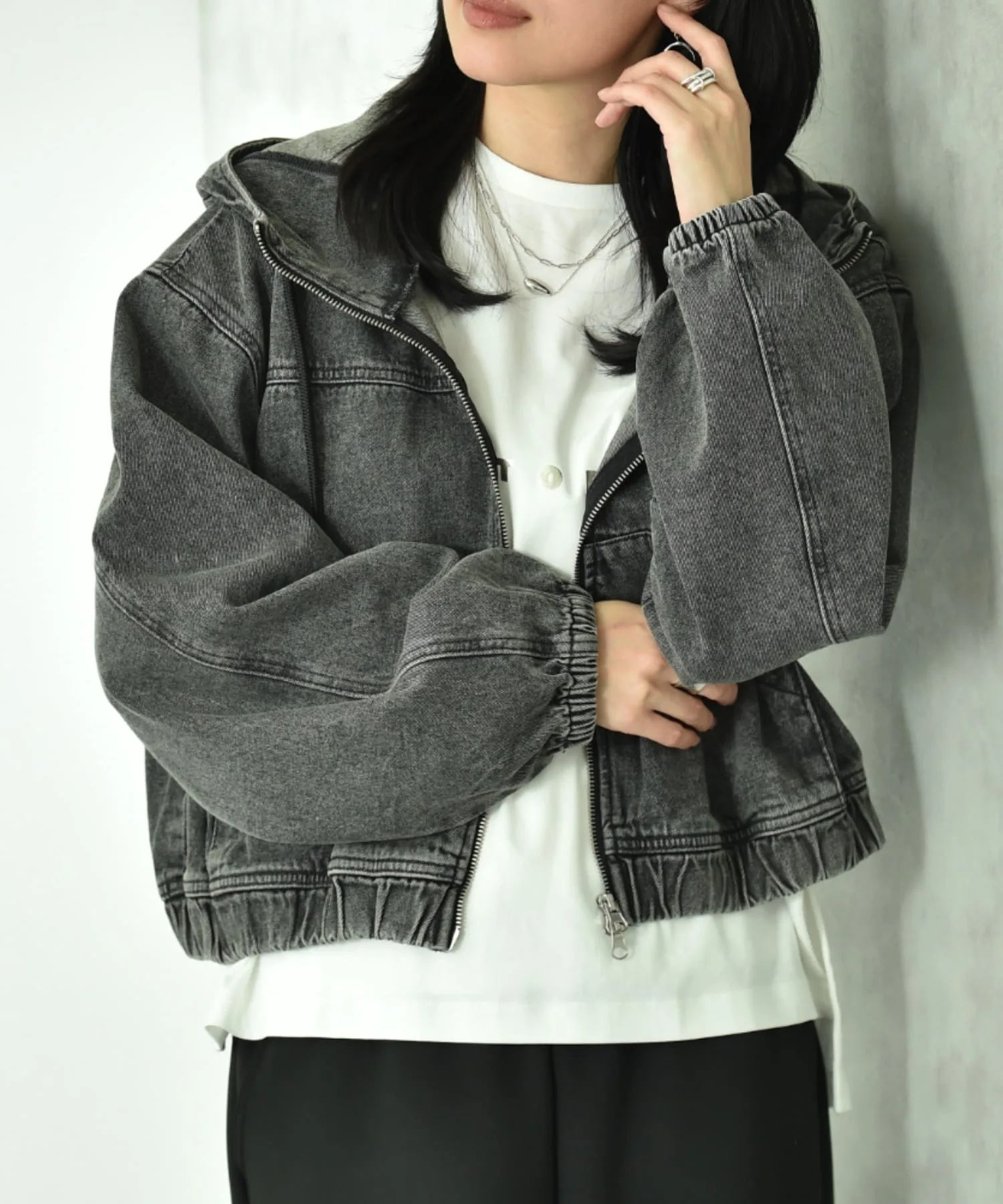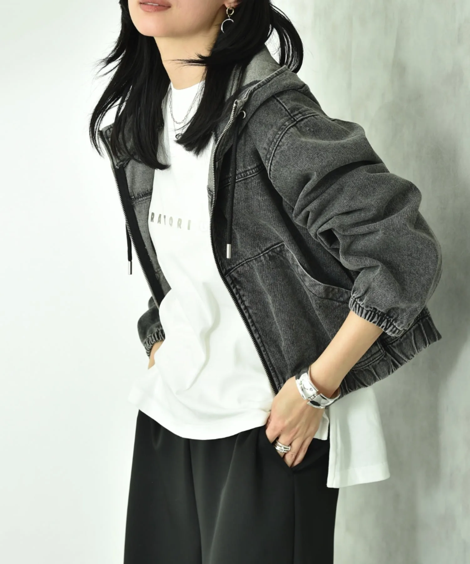 Блузон с капюшоном из выстиранного денима, создающий изысканный образ.