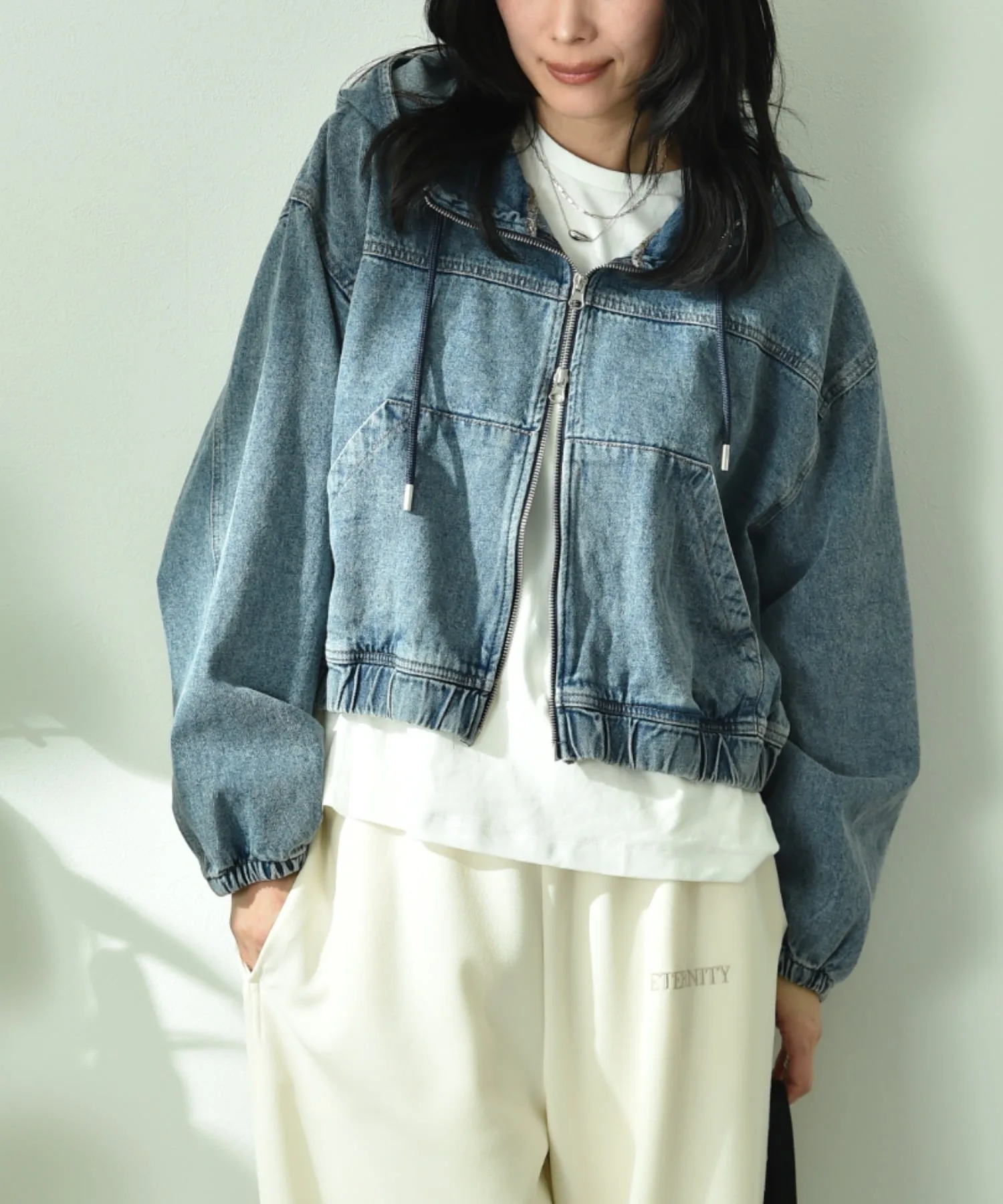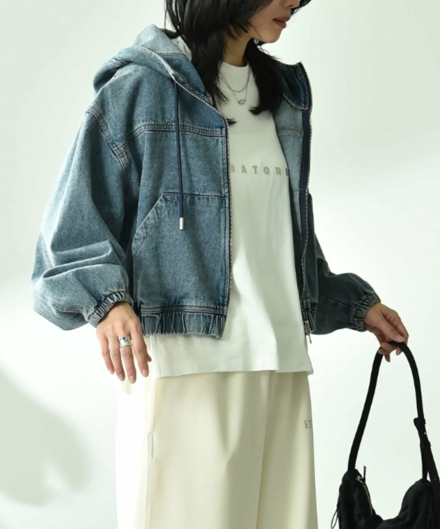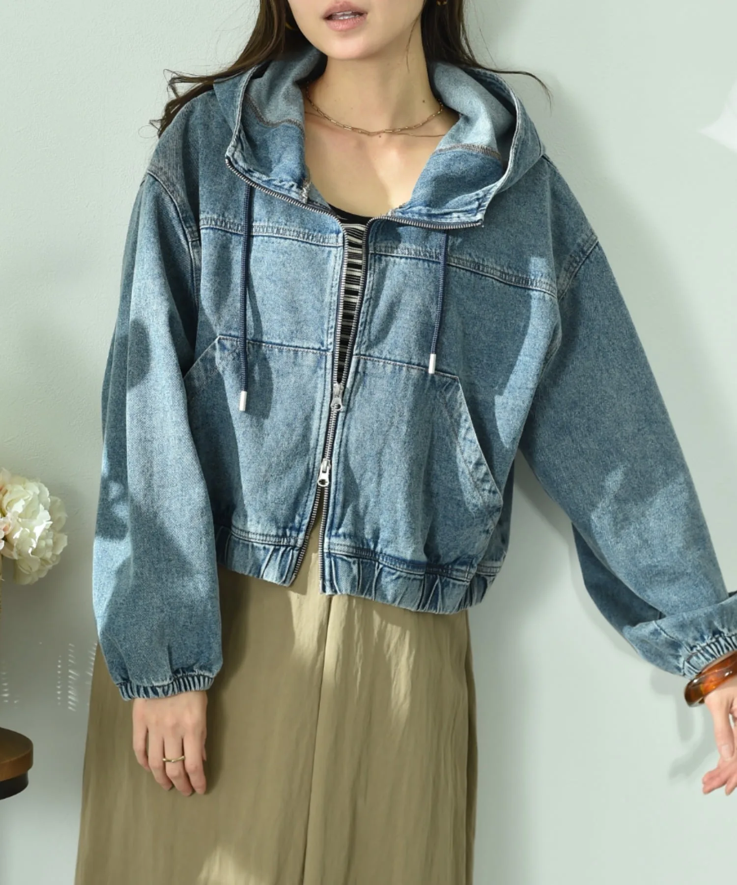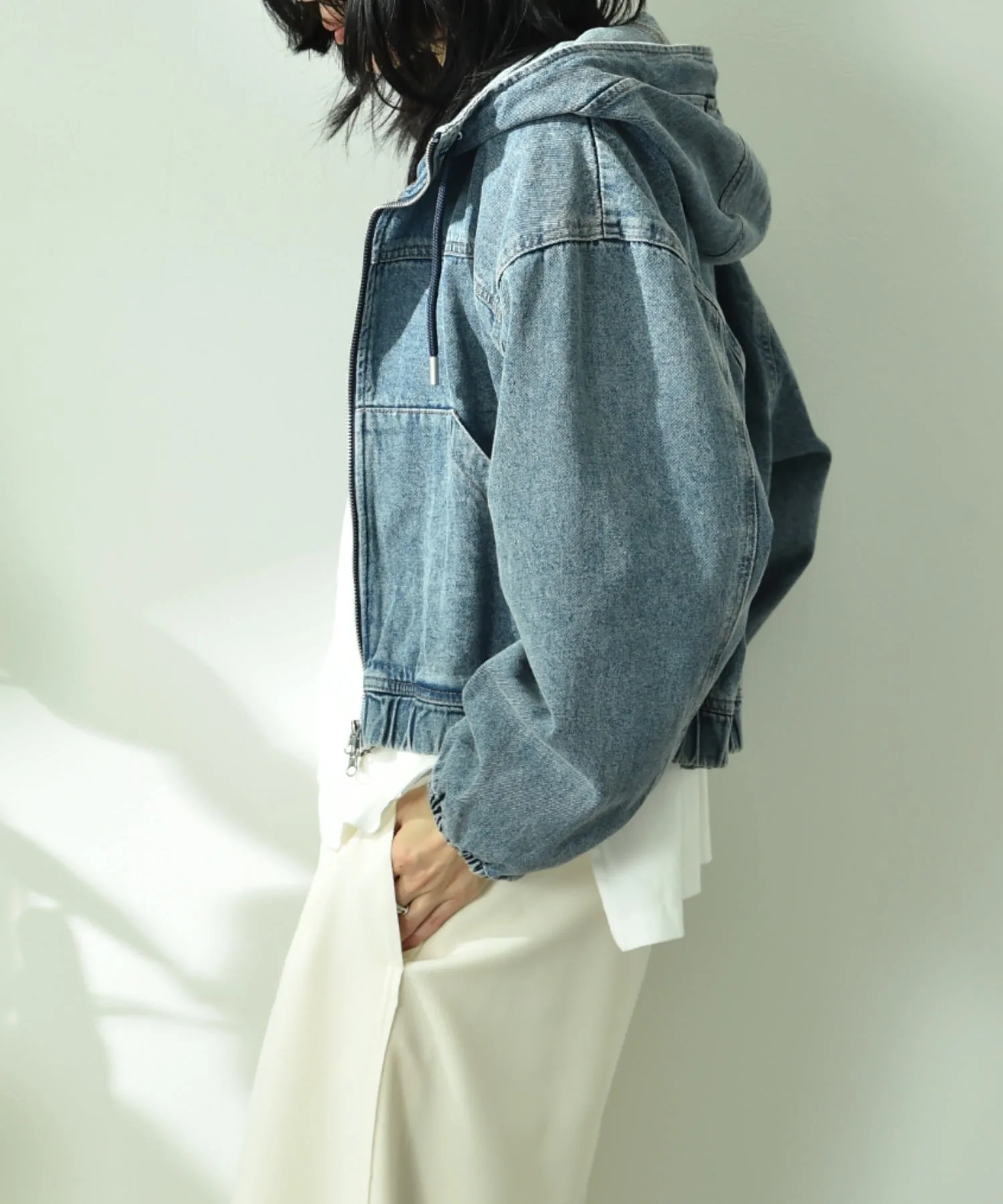 Блузон с капюшоном из выстиранного денима, создающий изысканный образ.