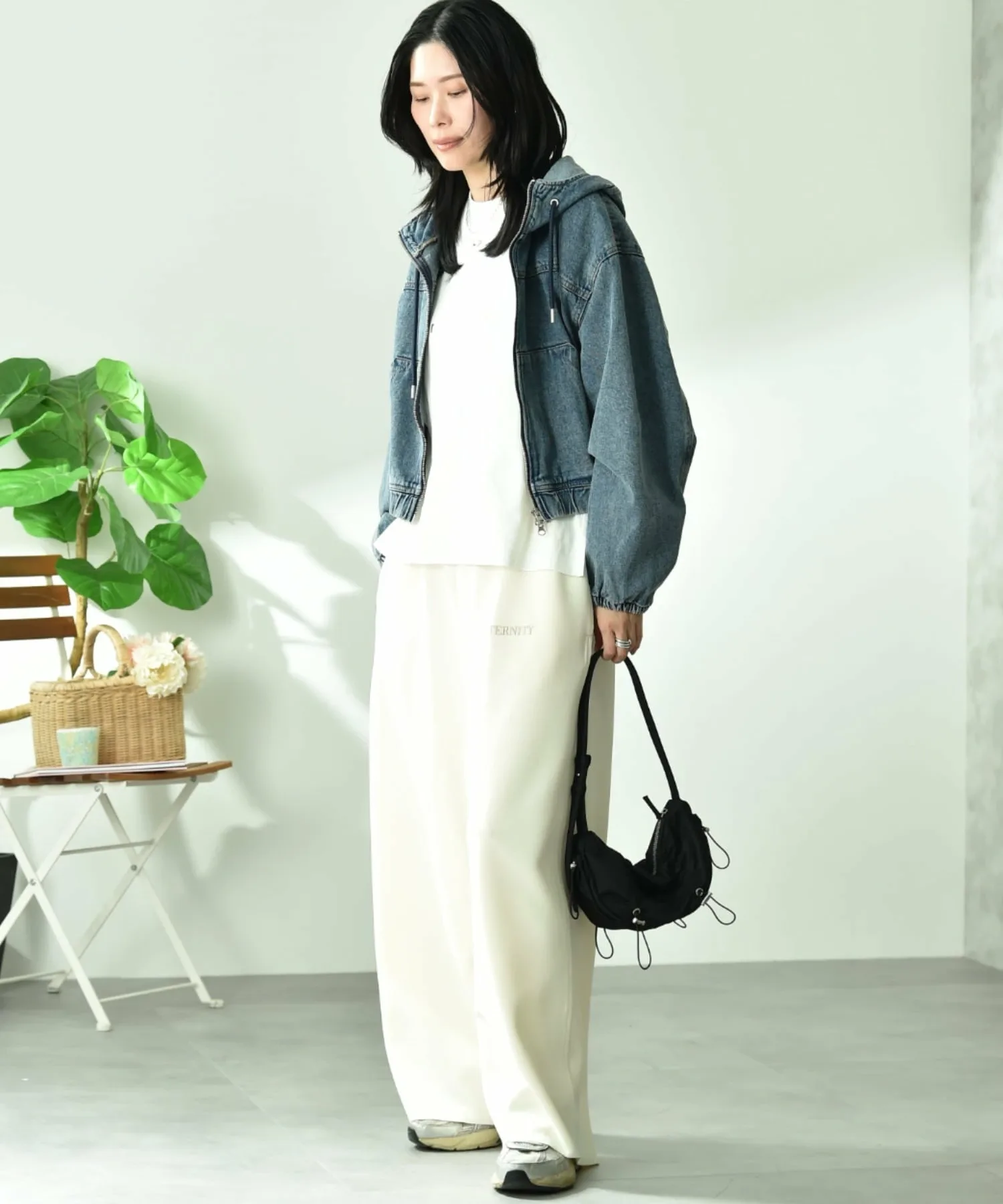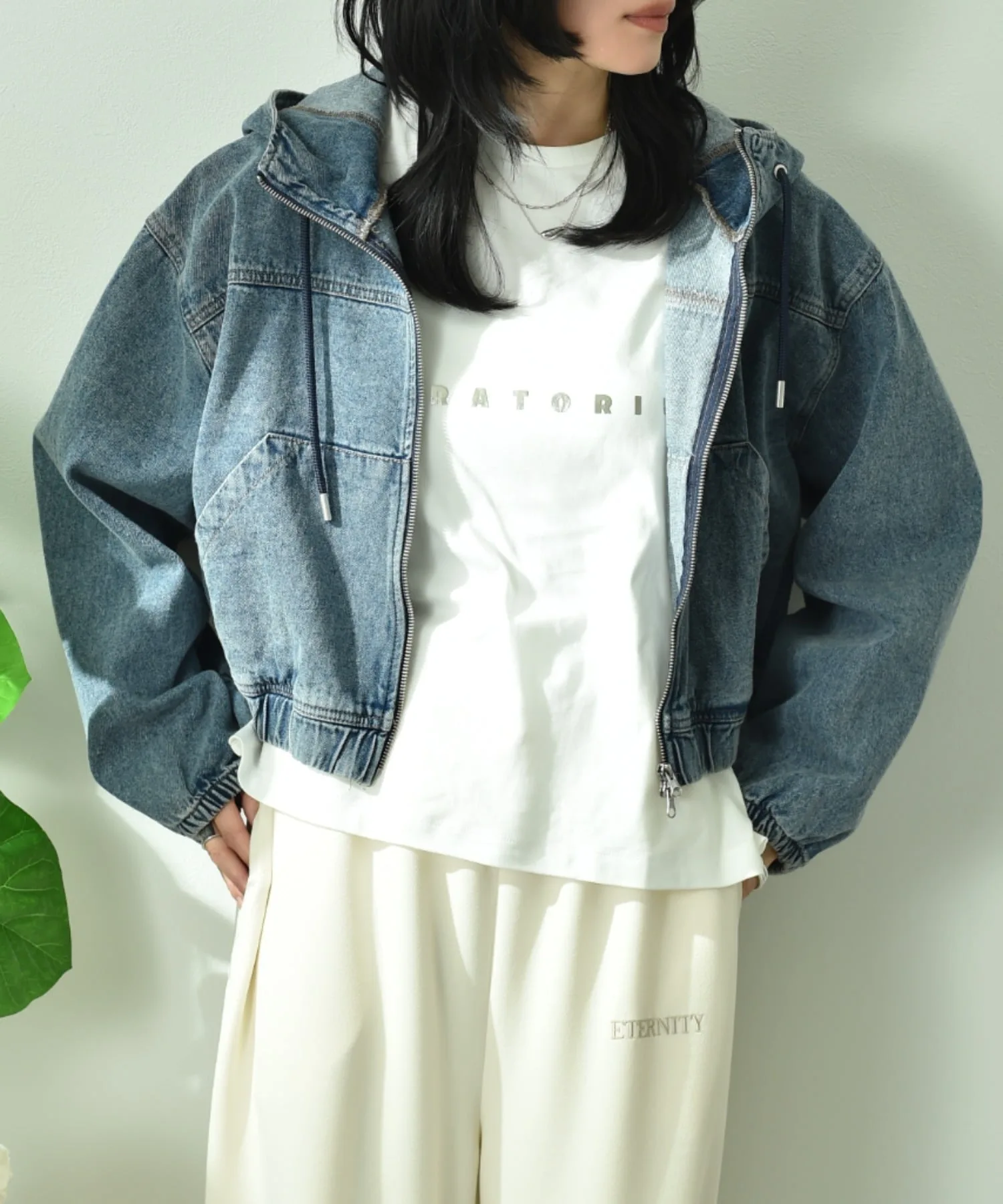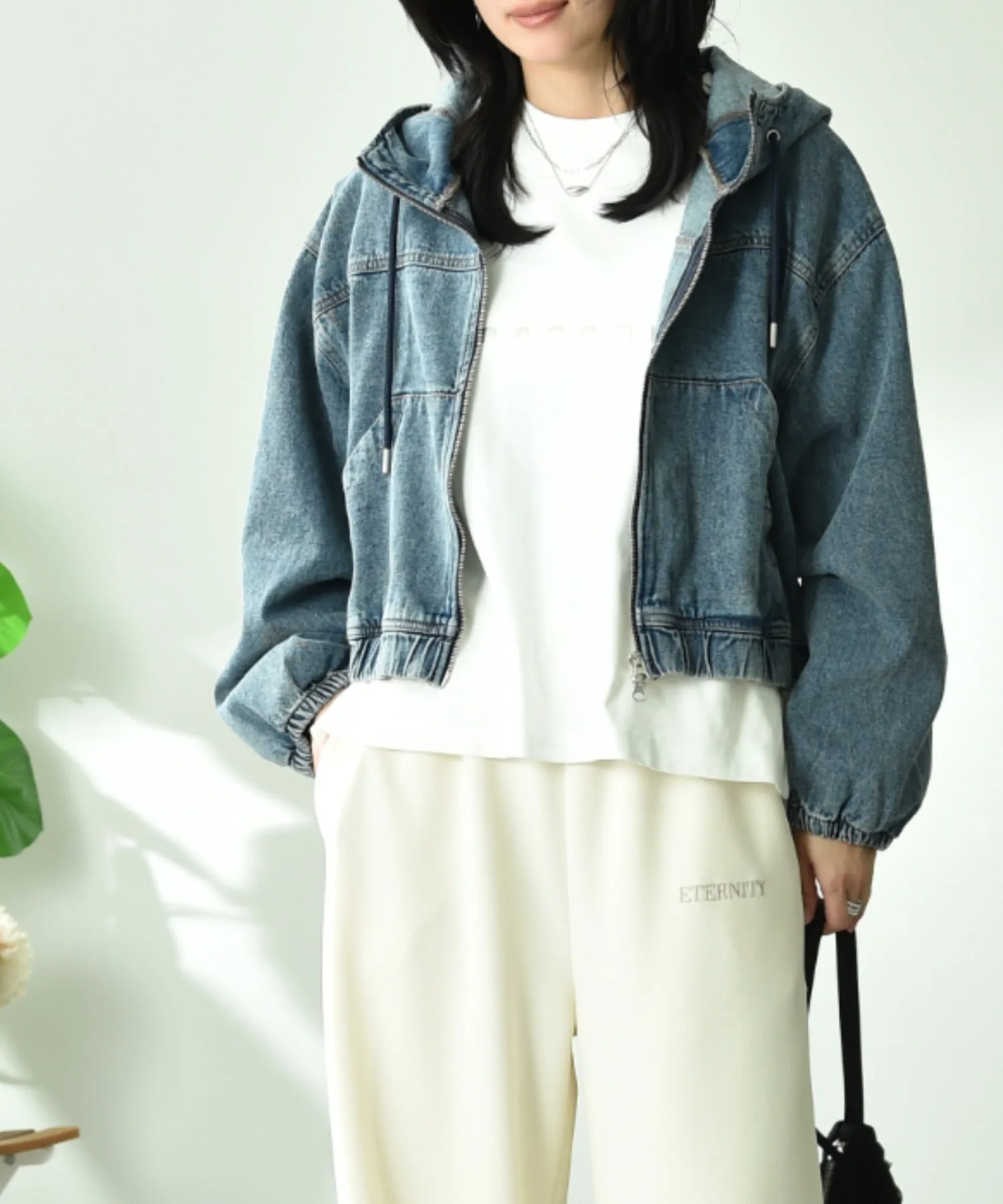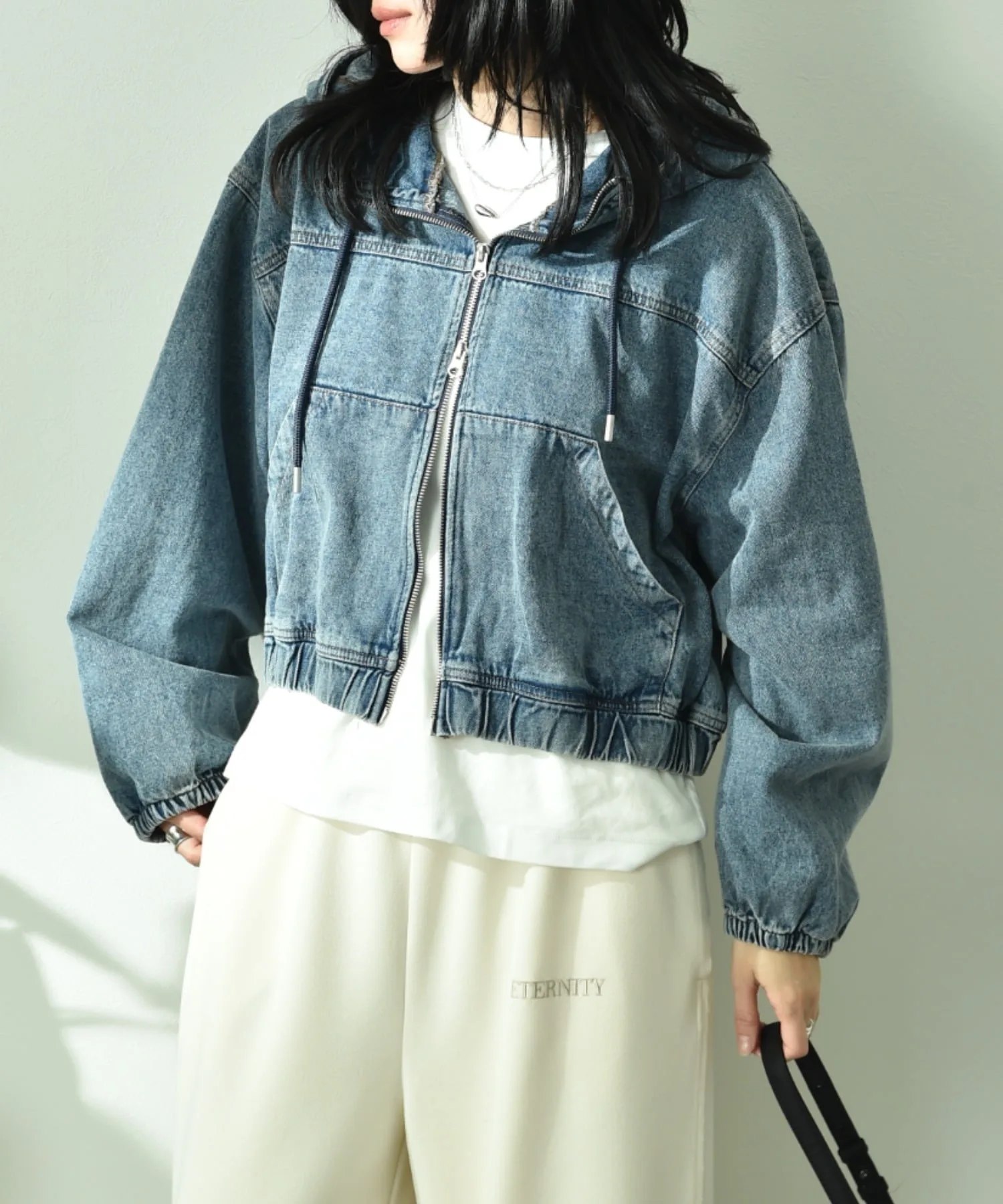 Блузон с капюшоном из выстиранного денима, создающий изысканный образ.