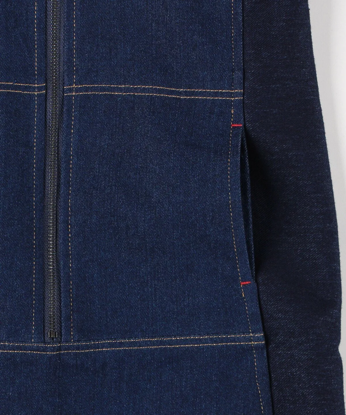 Отверстия задних накладных карманов отделаны джинсовой тканью для создания дизайнерского акцента.