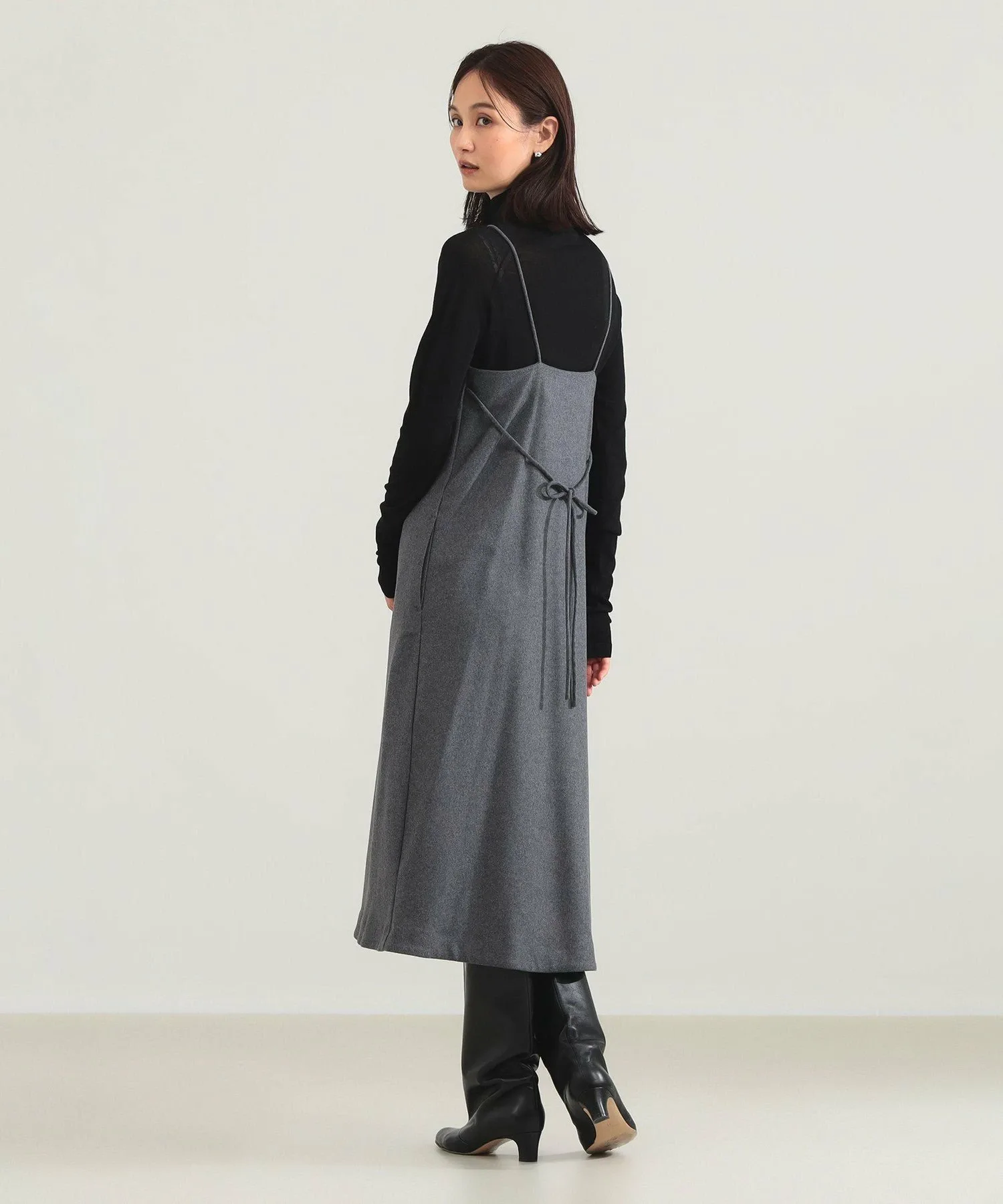 Платье-майка с эффектным глубоким V-образным вырезом. Тонкие ленты по бокам можно завязать сзади, чтобы добавить изящный акцент на спину.