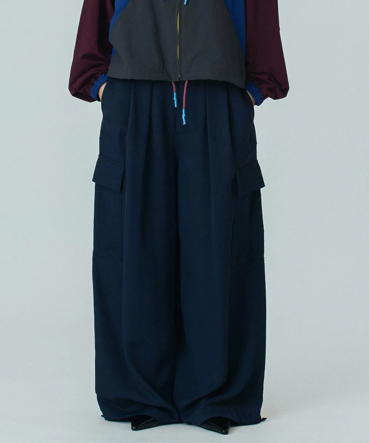 Благодаря элегантному блеску и умеренному количеству деталей в стиле карго, эти брюки можно носить как в деловом, так и в повседневном стиле.