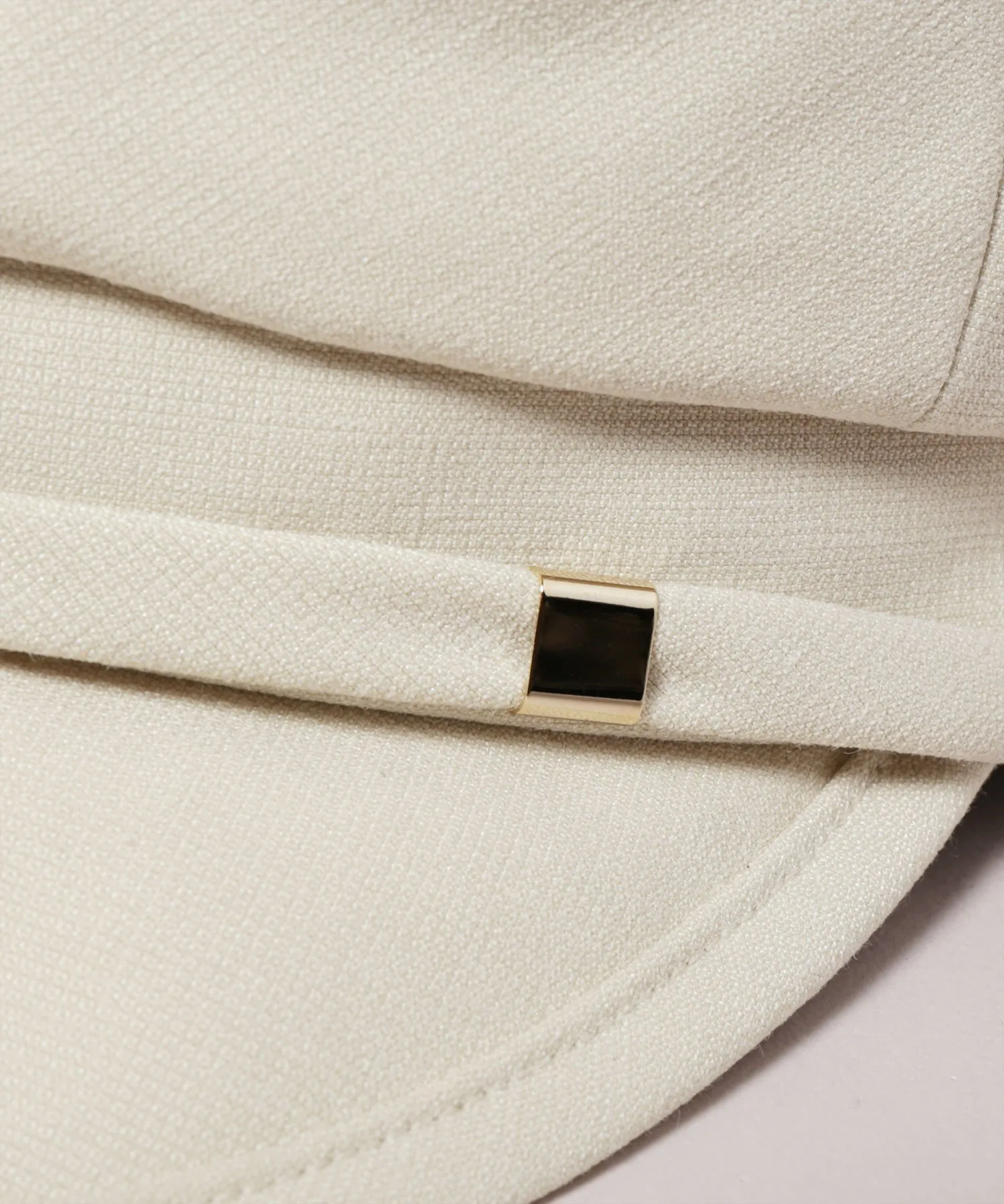 Вытачки на тулье создают трехмерный силуэт. Опущенный вниз козырек также визуально уменьшает лицо.