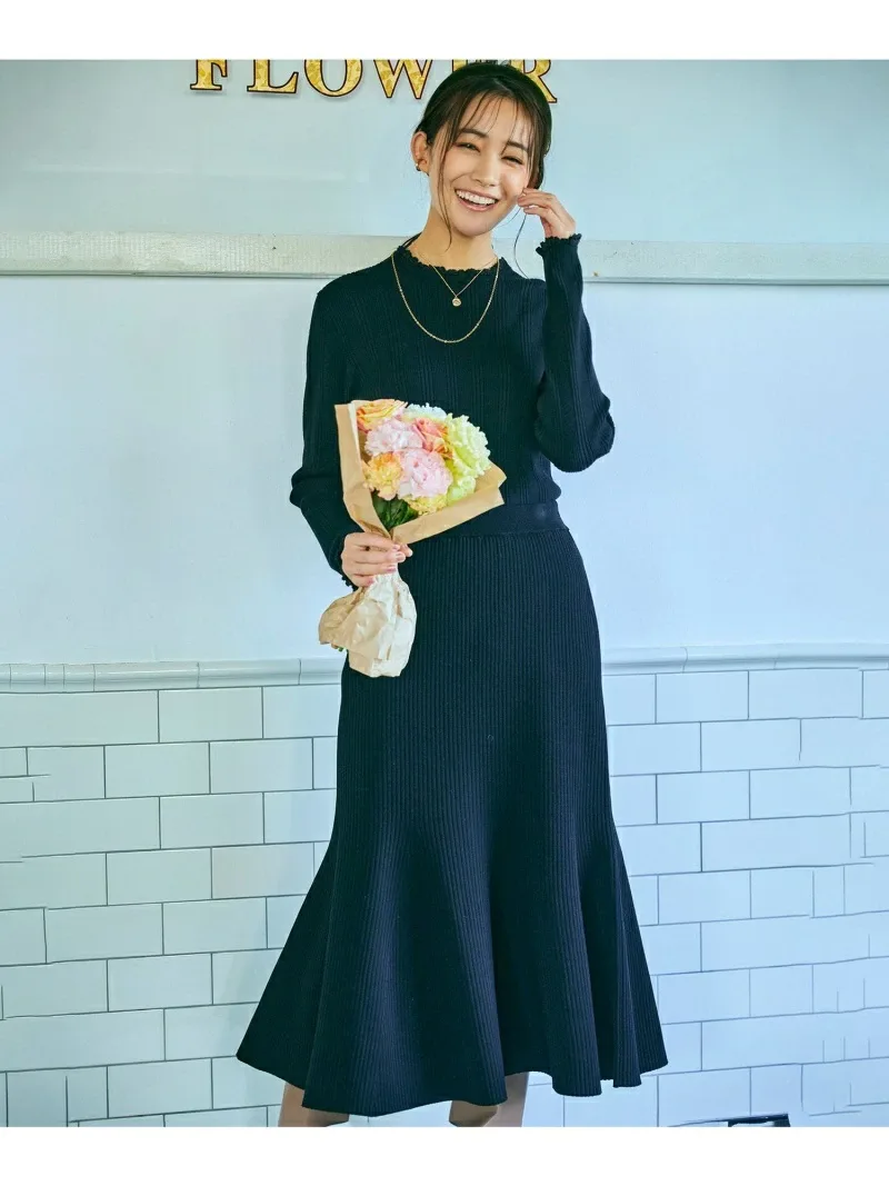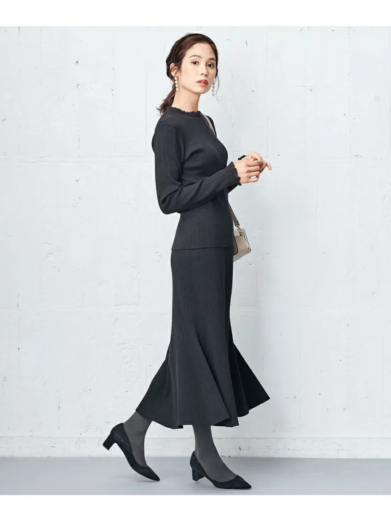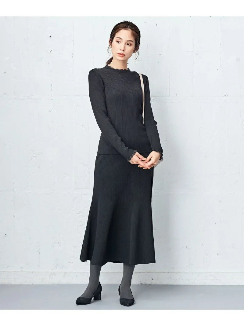 Дизайн Этот трикотаж в рубчик украшен кружевными деталями на воротнике и манжетах. Изящный кружевной узор не слишком приторный, что делает его подходящим для более формальных случаев. Материал достаточно комфортен для ношения под пальто или толстым кардиганом, поэтому он подходит для длительного ношения с настоящего момента до начала весны. Кружево вокруг шеи и манжет создает гламурный образ без аксессуаров. Сочетайте его с юбкой из той же серии для создания образа, похожего на платье. Доступен в трех цветах: универсальный черный, изысканная нежность старой розы и черный в полоску.