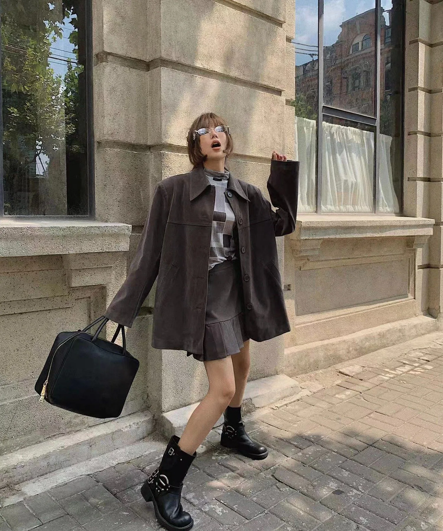 Мужской дизайн создает сбалансированный, женственный образ в сочетании с юбкой.