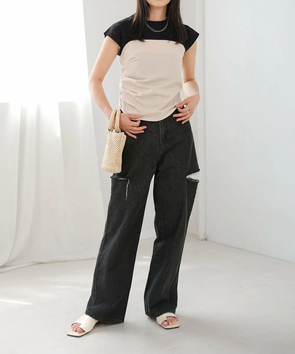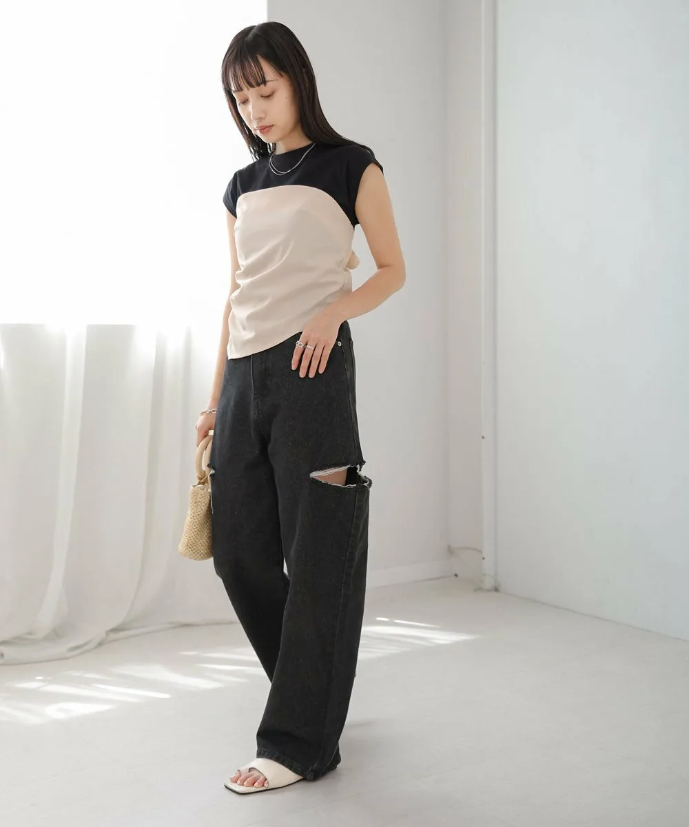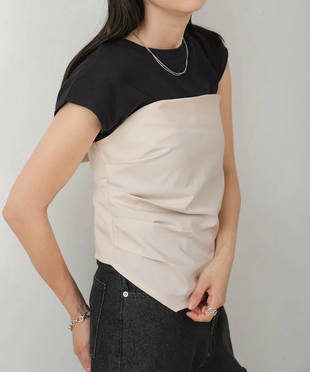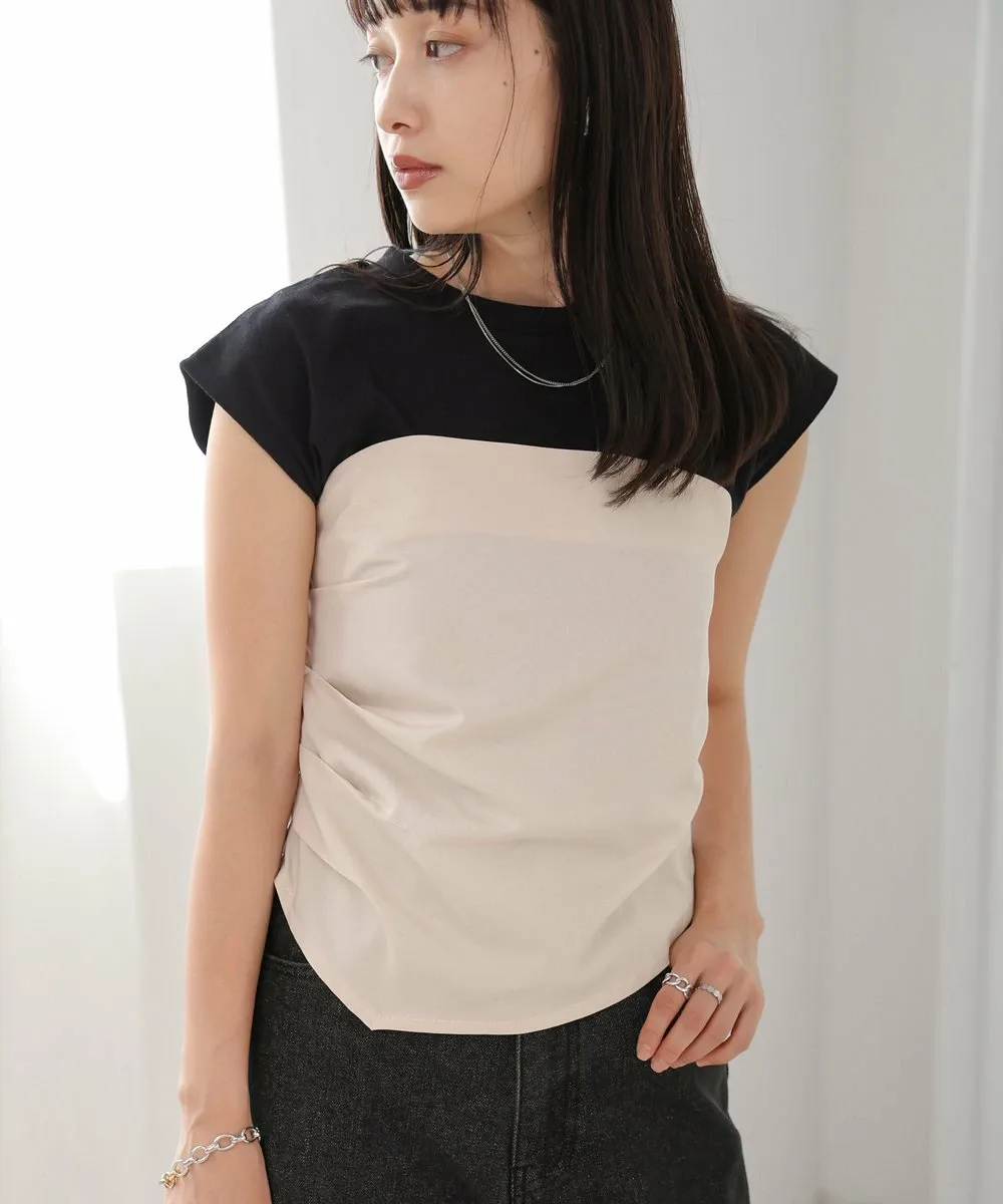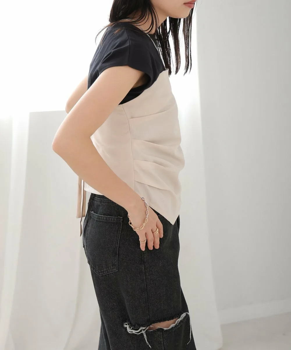FABRICМатериал бюстье варьируется в зависимости от цвета. Бюстье черного топа, сшитого по фигуре, выполнено из хлопковой смеси с легкой плотностью, а бюстье топа кремового цвета, также сшитого по фигуре, — из эластичного полиуретана. Основной топ, сшитый по фигуре, изготовлен из 100% хлопка, который обладает высокой впитываемостью и воздухопроницаемостью.