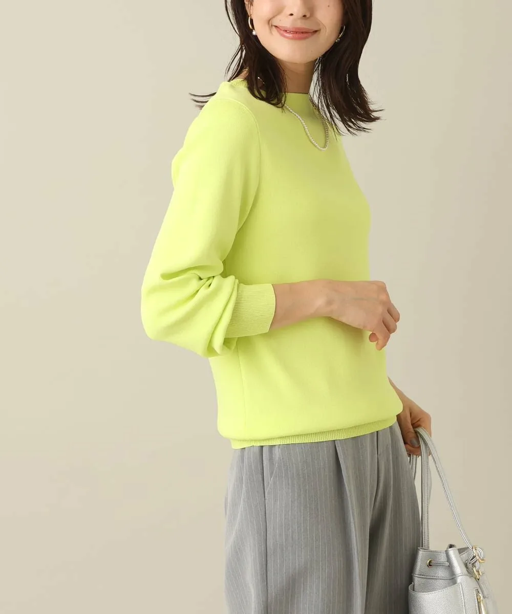 Летний вязаный свитер с вырезом-лодочкой и пышными рукавами: K2FGV69034