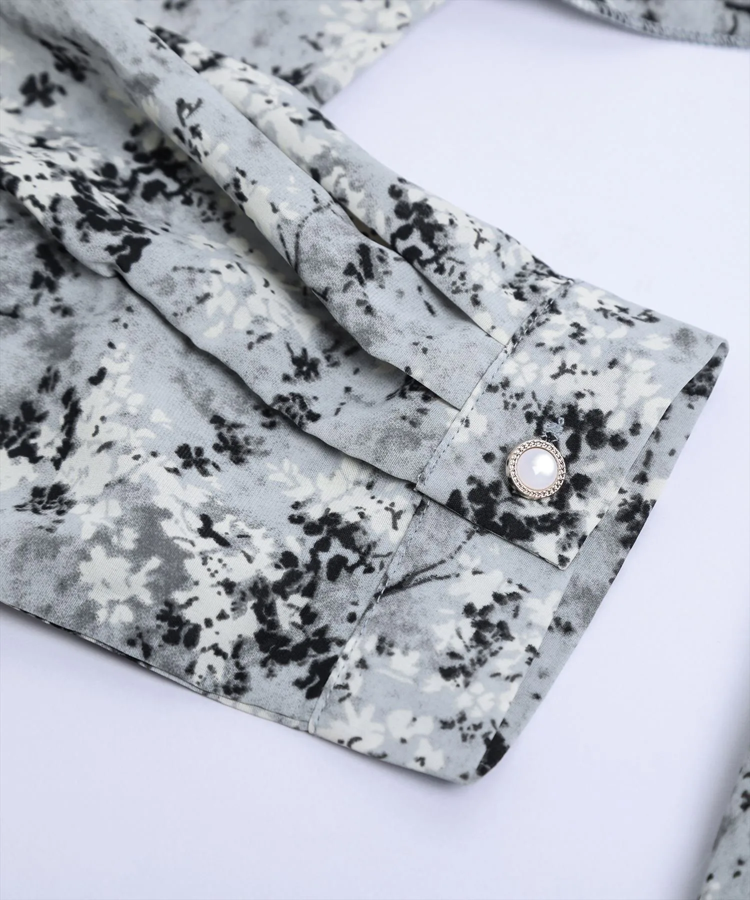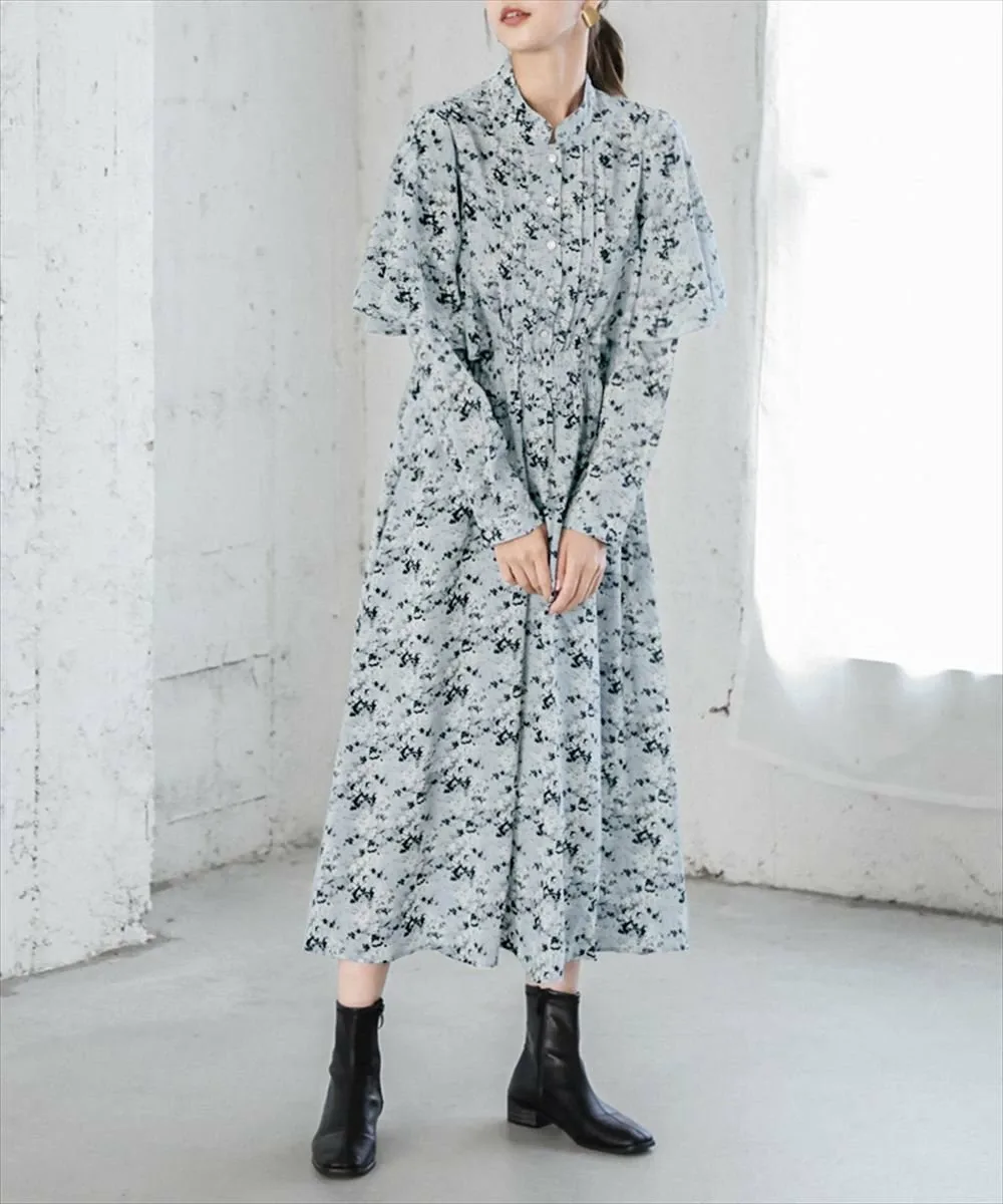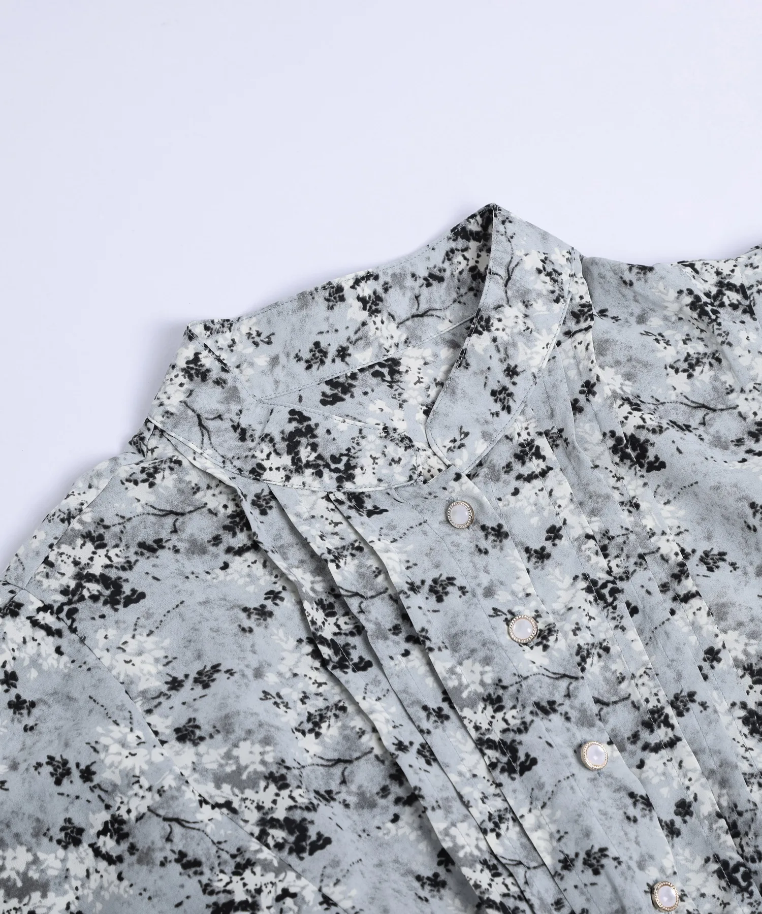 Ретро-цветочный узор привлекает внимание, а оборки придают платью женственный вид.