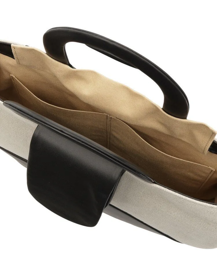 Изготовлена из овечьей кожи с изящным тиснением, напоминающим гросгрейн, в сочетании с льняным материалом.