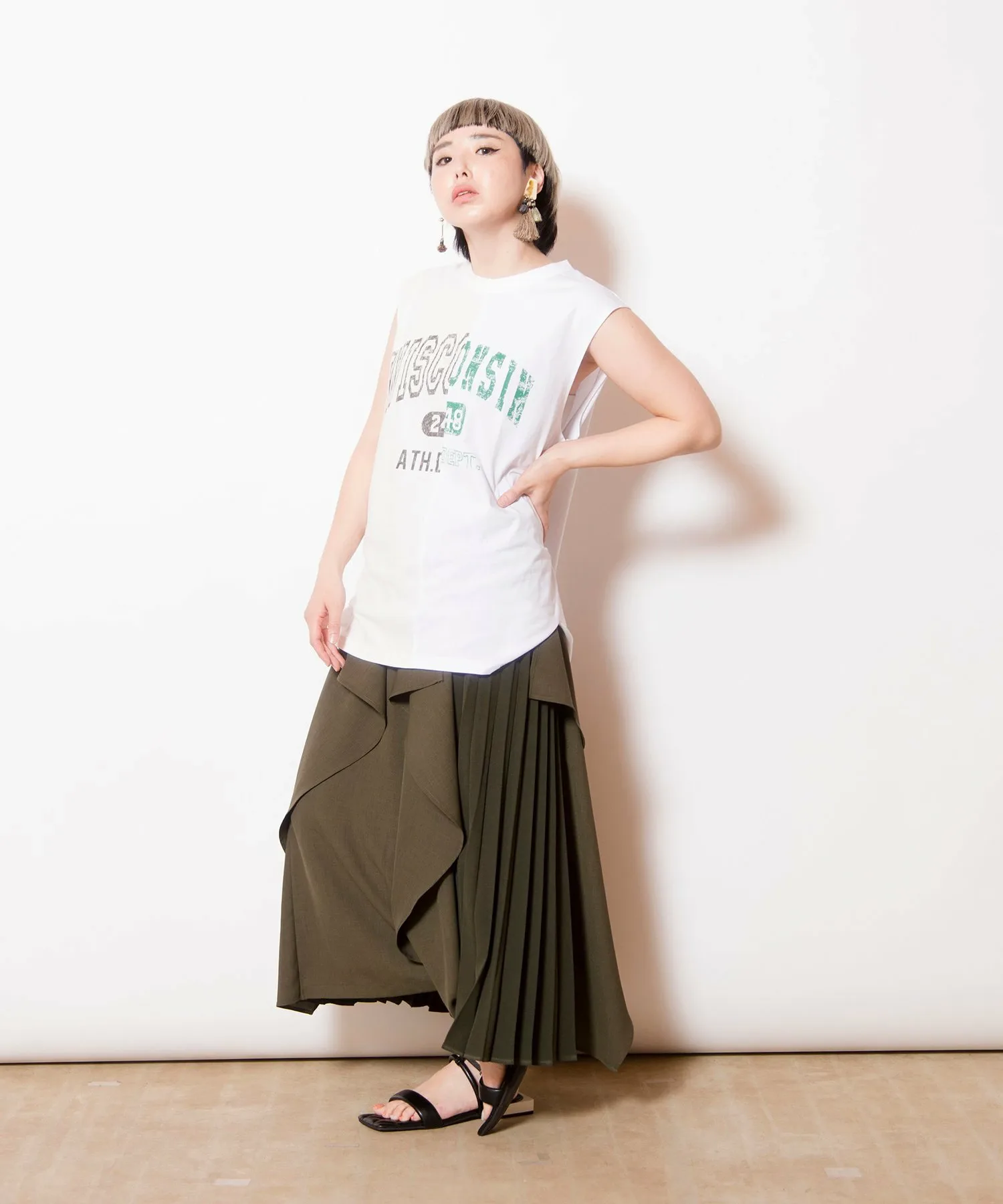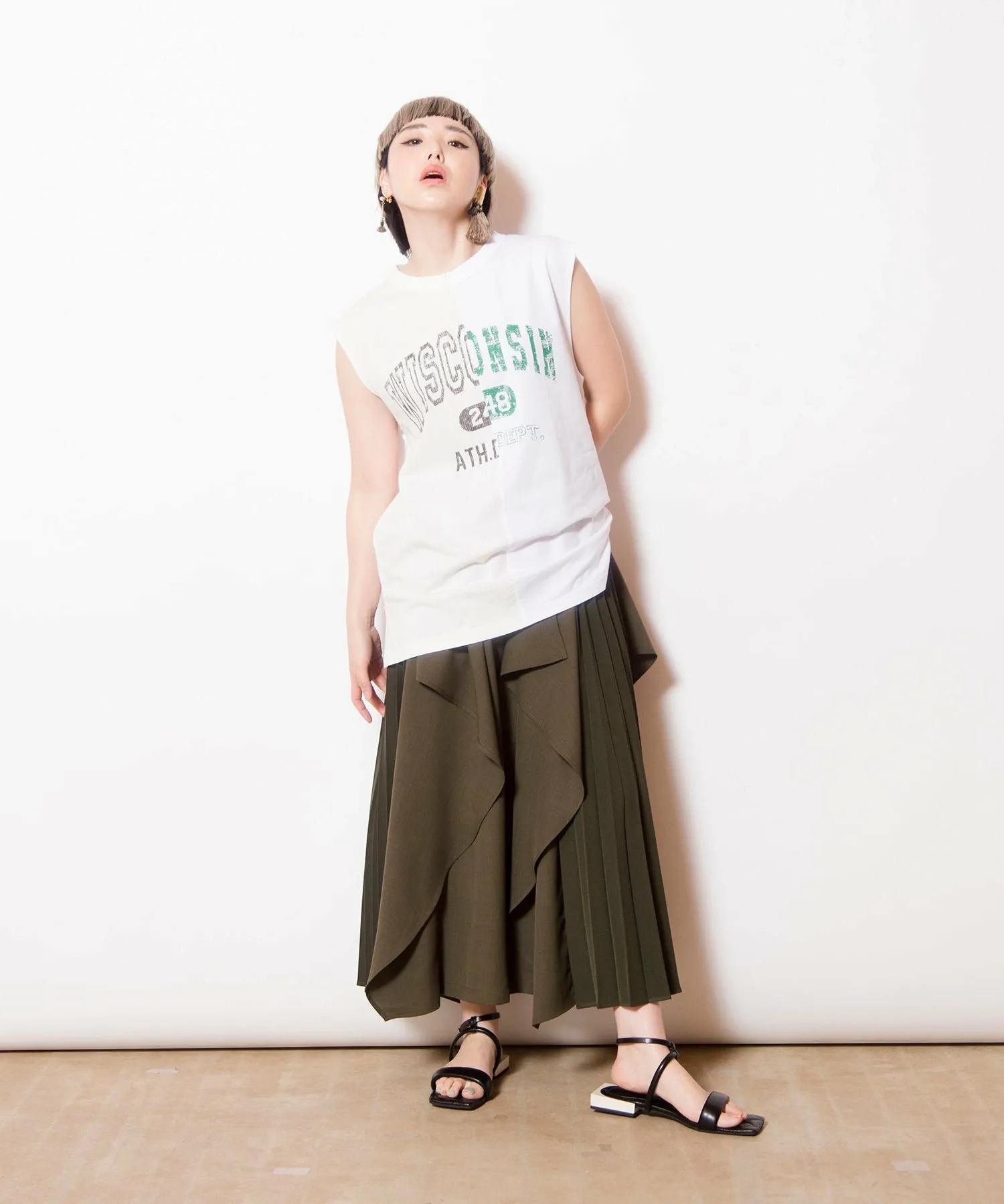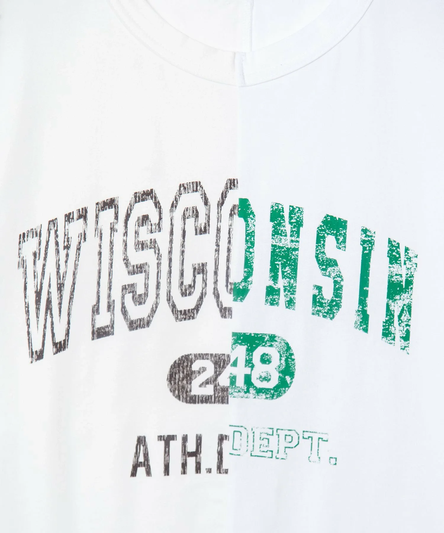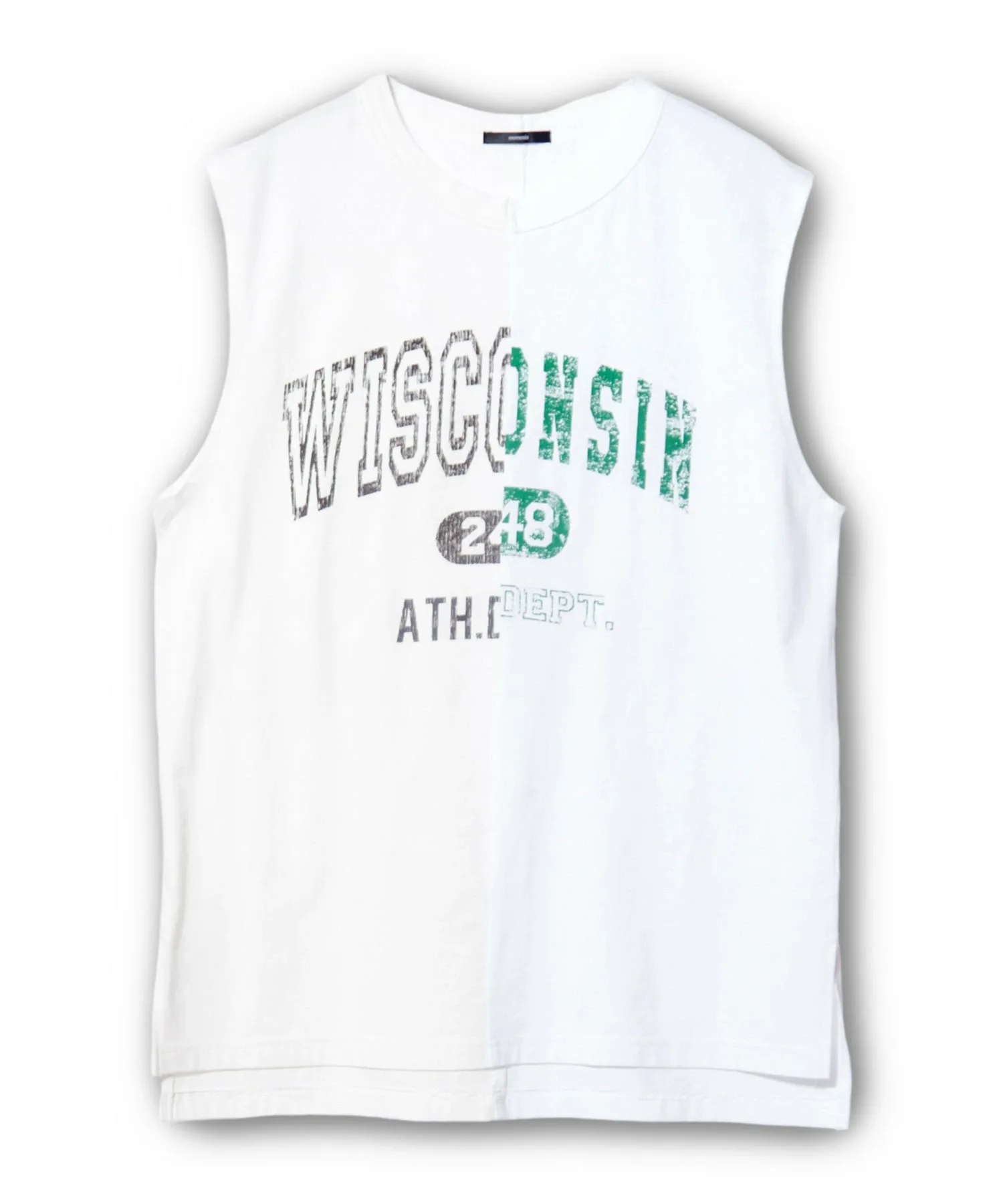 Майка, напоминающая ремейк футболки с логотипом колледжа. Благодаря винтажной текстуре она создает изысканный образ.