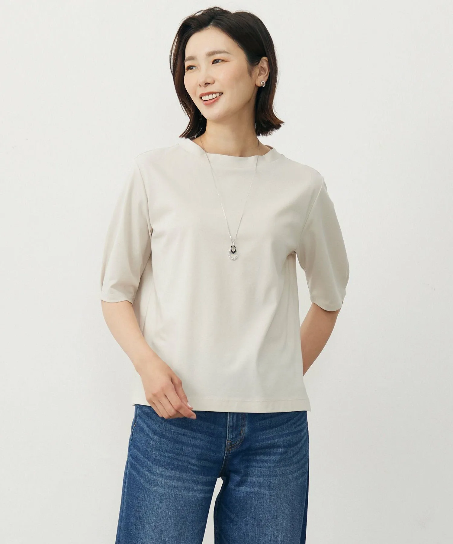 Материал: Изготовленная из хлопка с очень длинными волокнами, эта компактно скрученная пряжа минимизирует пушистость, в результате чего получается красивый блеск и мягкость. Эта пряжа обеспечивает превосходный баланс влагоудержания и воздухопроницаемости. Эта хлопчатобумажная пряжа переплетена с пряжей OHSII, смесью двух типов полиэстера, разработанной компанией Toray, что позволяет создать удобную, немнущуюся одежду с превосходной эластичностью, драпировкой и упругостью. Трикотажное полотно изготовлено из плотного двойного трикотажа 40-го калибра, который помогает сохранять форму, и обработано антибактериальными, дезодорирующими и охлаждающими свойствами. Его воздухопроницаемость и быстрое высыхание делают его комфортным материалом для летней одежды. Товары из того же материала: Топ с вырезом-лодочкой (KKGJGA0801) Большой размер (KKGTGA0801) Маленький размер (KKG0GA0801) Топ-клеш (KKGJGA0802) Большой размер (KKGTGA0802) Маленький размер (KKG0GA0802) Примечание: Изображения товаров являются образцами и могут быть изменены без предварительного уведомления. Модель: H170, B81, W59, H85
