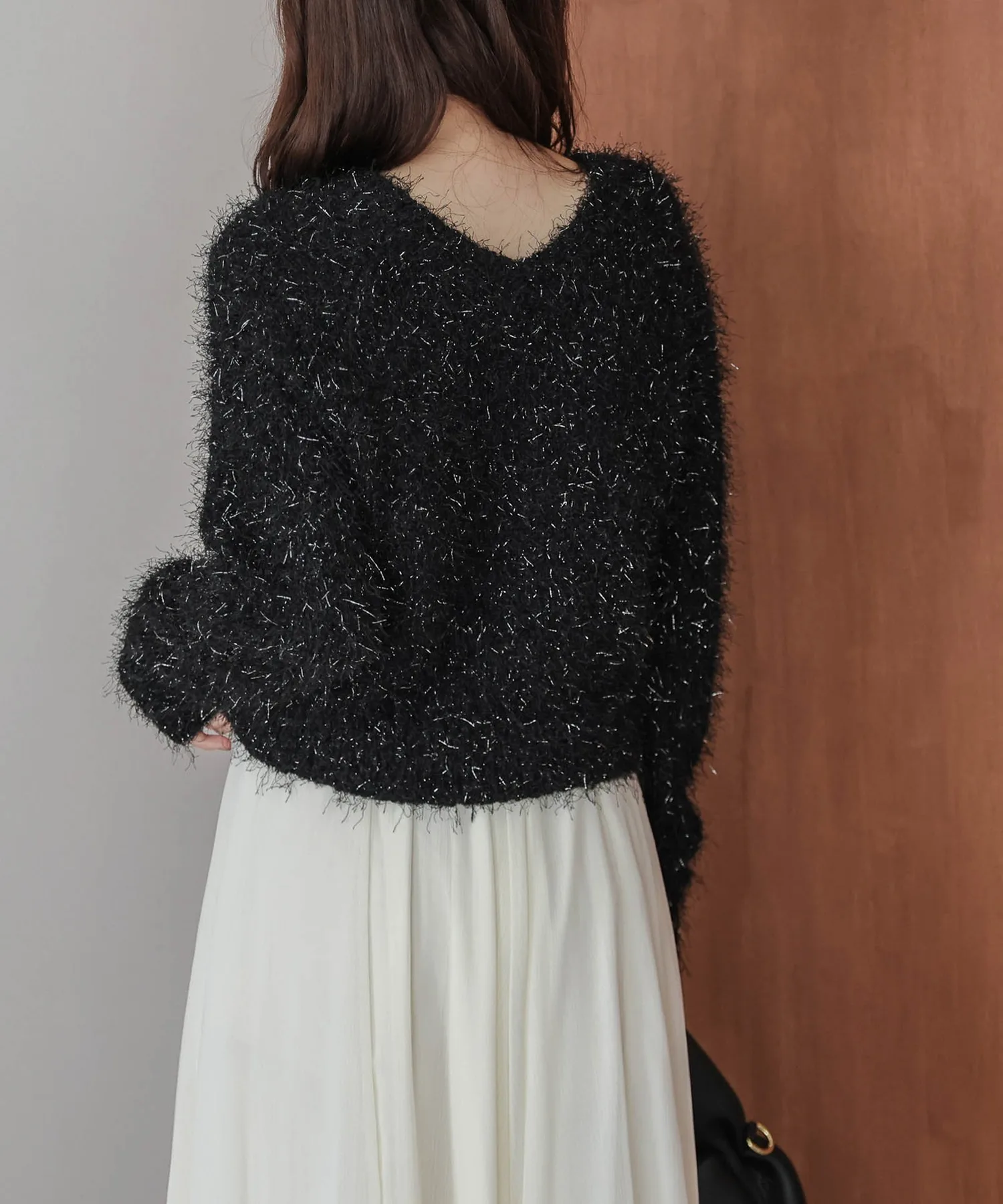 Блестящая блестящая пряжа делает эту вещь эффектной даже при простом сочетании с другими элементами гардероба.